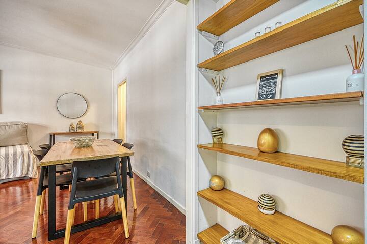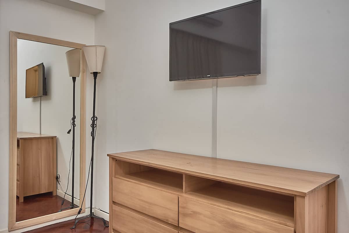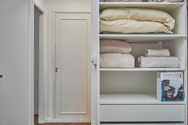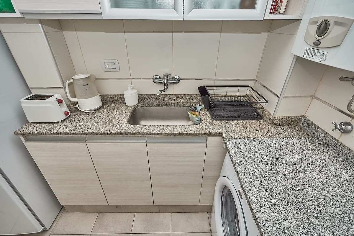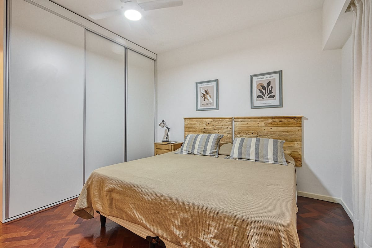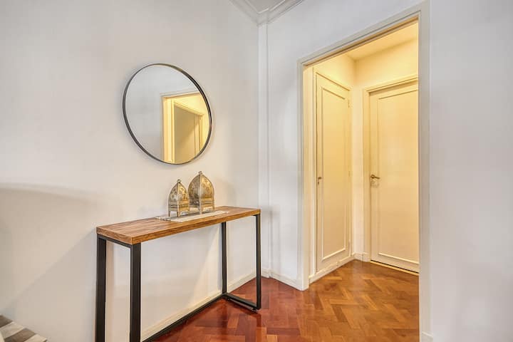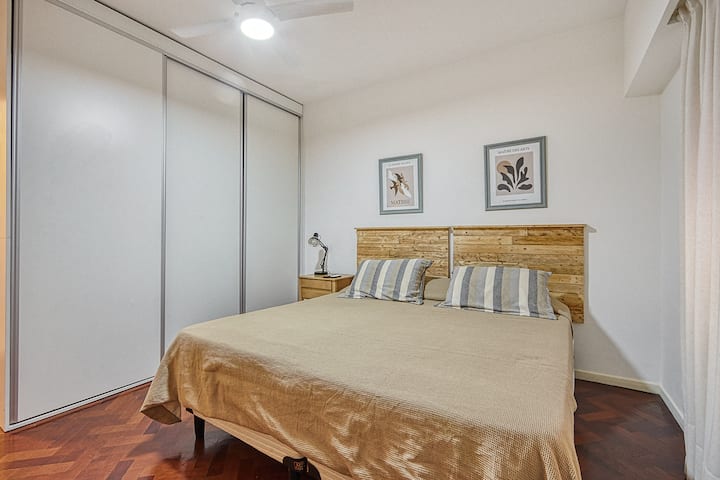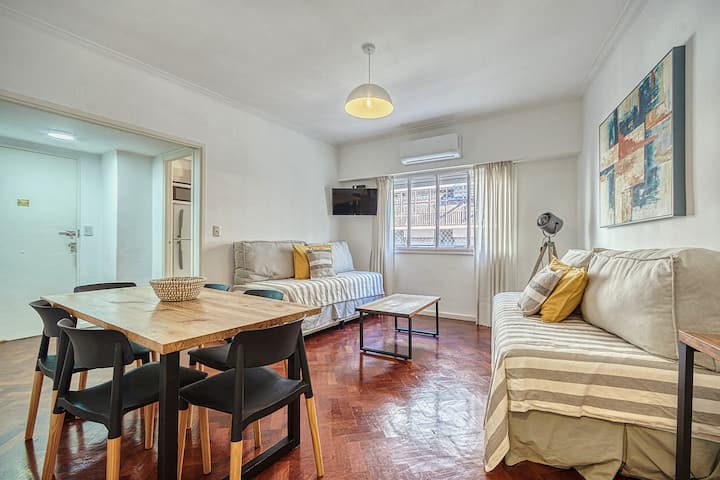 Квартира в Recoleta с 1 спальней и окнами на улицу. В спальне кровать king-size 1,80 x 2,00 (делимая), в гостиной 2 полноразмерные кровати и небольшая софа-кровать для 5-го гостя. В квартире 2 Smart TV, 2 кондиционера (тепло/холод), WiFi, полностью оборудованная кухня, стиральная машина и фен. Предусмотрены постельное бельё и полотенца. Предлагается парковочное место: вариант PB в 400 метрах.