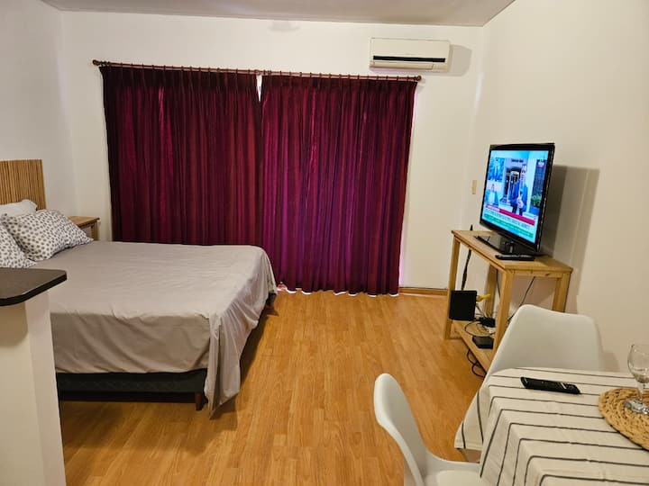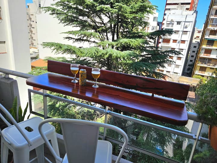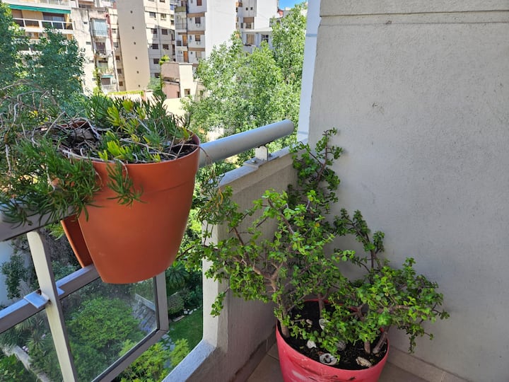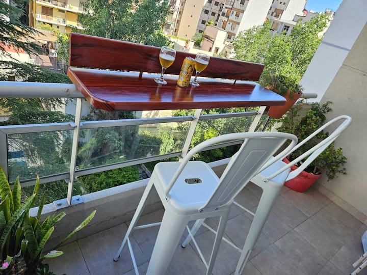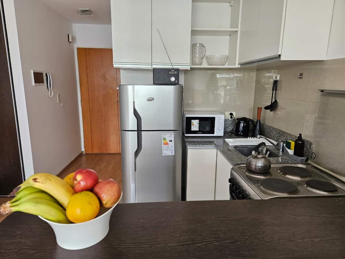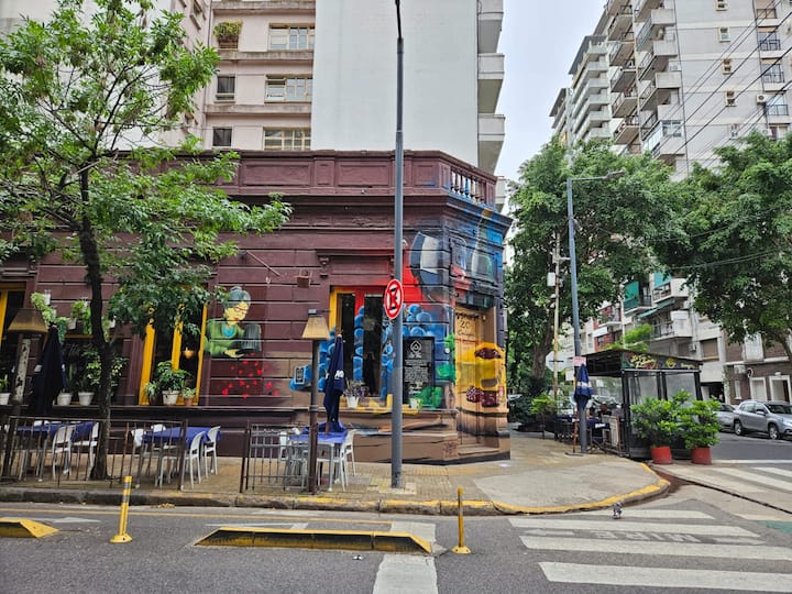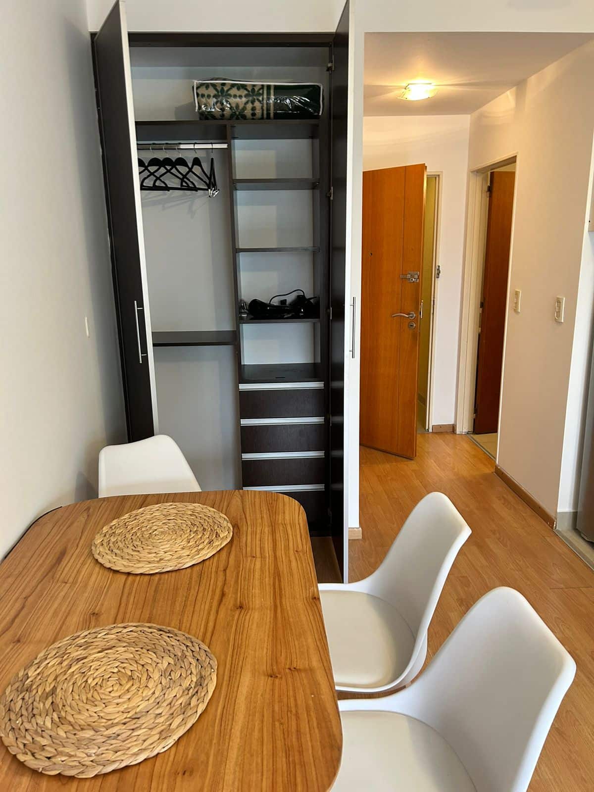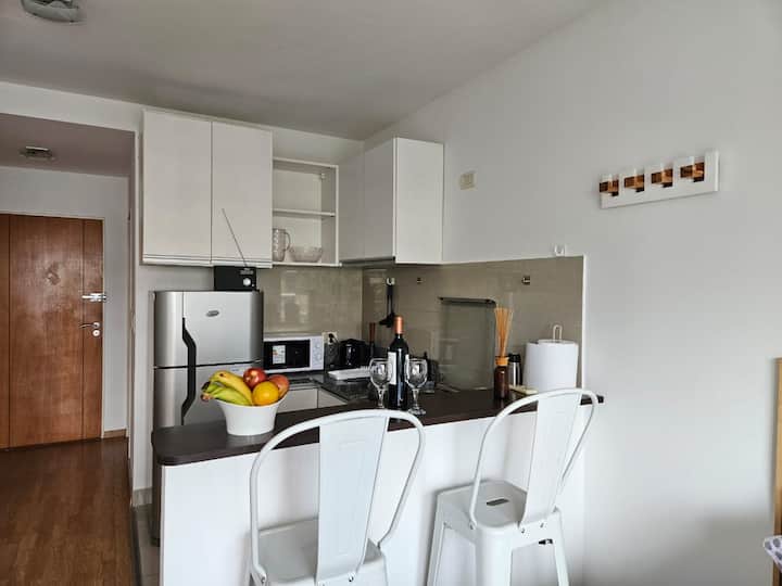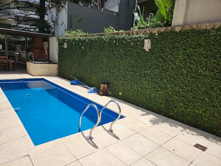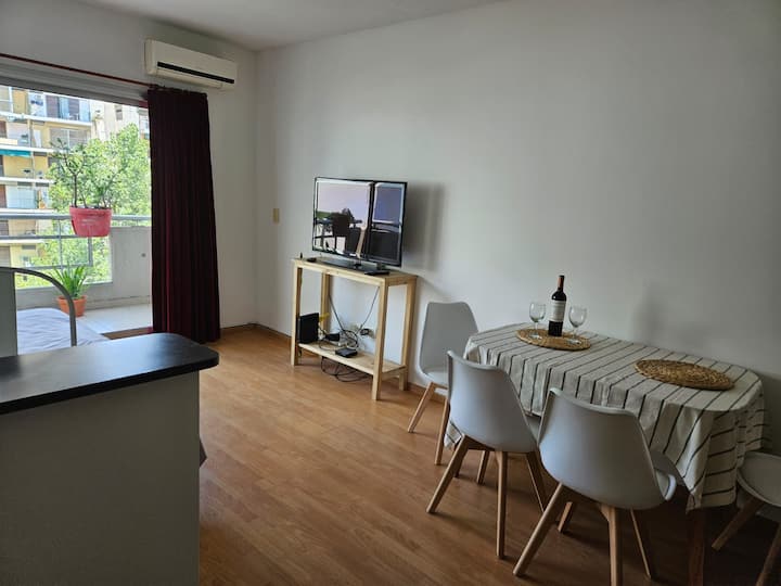 Квартира-студия в Recoleta, рассчитана на проживание 2 человек. Общая площадь и этаж не указаны. Есть балкон и внутренний двор с бассейном. Также упоминаются близость к Shopping Alto Palermo и музеям и возможность прогулок в зелёных зонах.