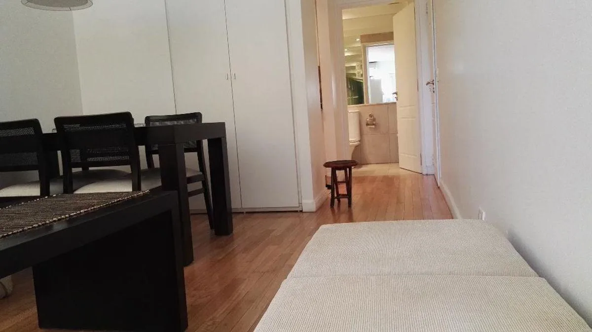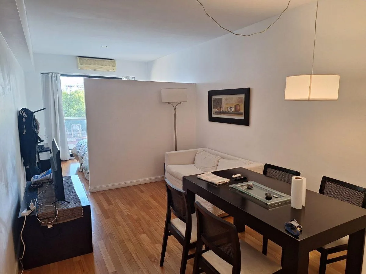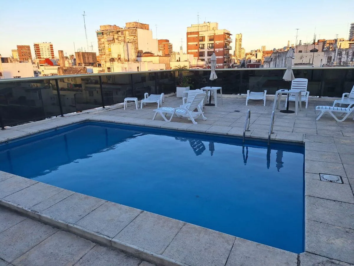 Квартира в Recoleta площадью 1 и 1/2 комнаты, с мебелью. Гостиная-столовая и отдельная кухня, полностью оборудованная ванная. Спальня выходит на балкон; полы из паркета. Установлен сплит (холод/тепло), горячая вода централизованная. В здании есть бассейн, солярий, gym, зона гриля и прачечная; предусмотрены 2 подъёмника (основной лифт и грузовой). Охрана 24 часа, здание подходит для людей с ограниченной мобильностью. Возможна аренда (закреплённого) парковочного места.