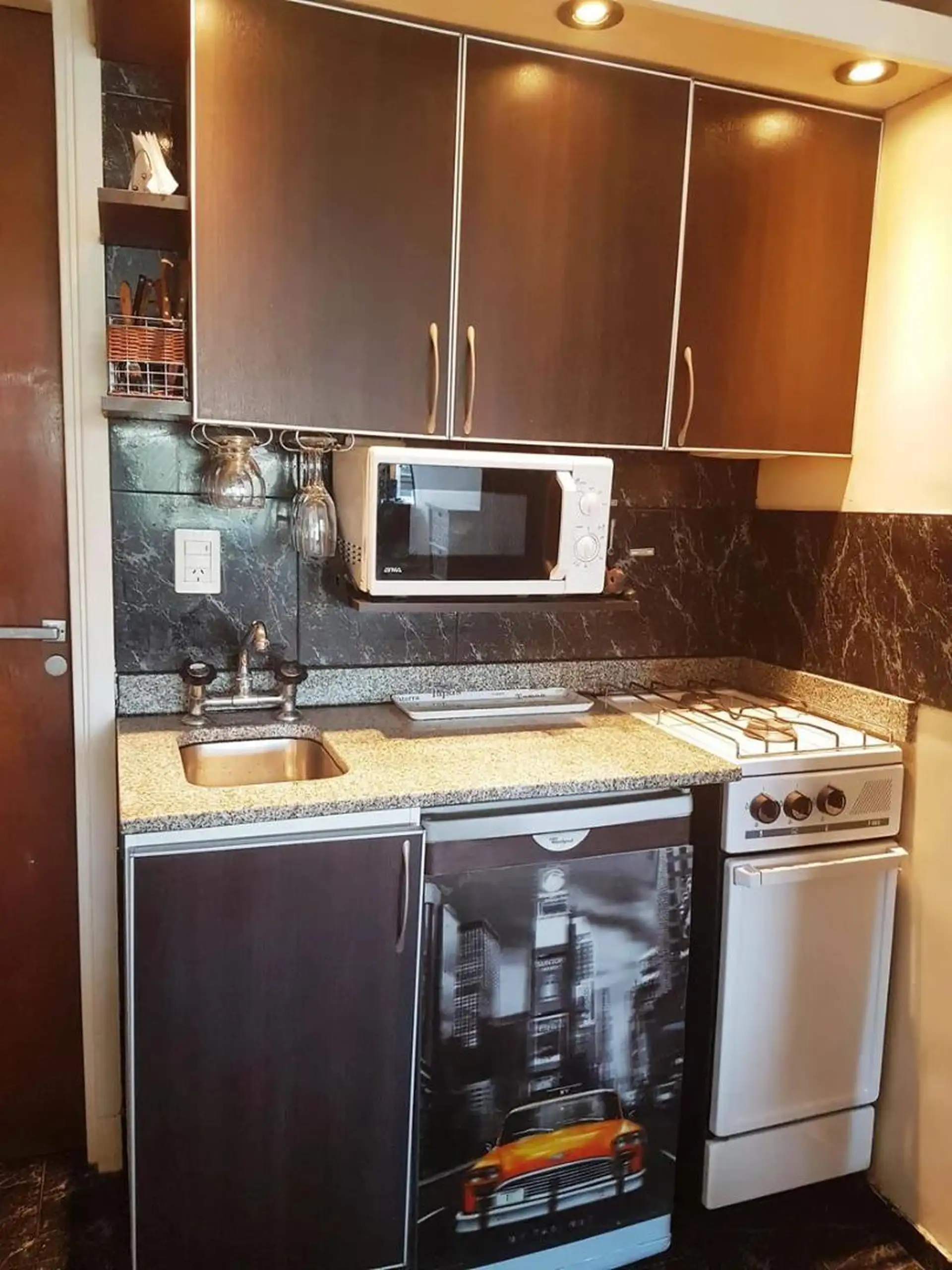 Квартира-студия площадью 30 m², 5-й этаж, окна на улицу, с панорамным видом на Av. 9 de Julio. Полностью меблирована и оборудована; предусмотрены кондиционер (холод/тепло) и Wi‑Fi. Кухня интегрирована, ванная комната в хорошем состоянии. Стоимость аренды указана как US$ 650 в месяц, расходы по пакету уточняются.