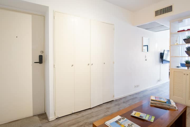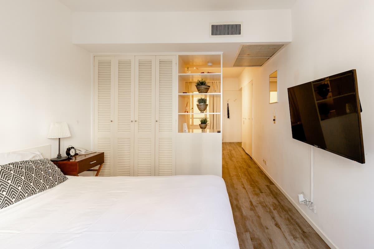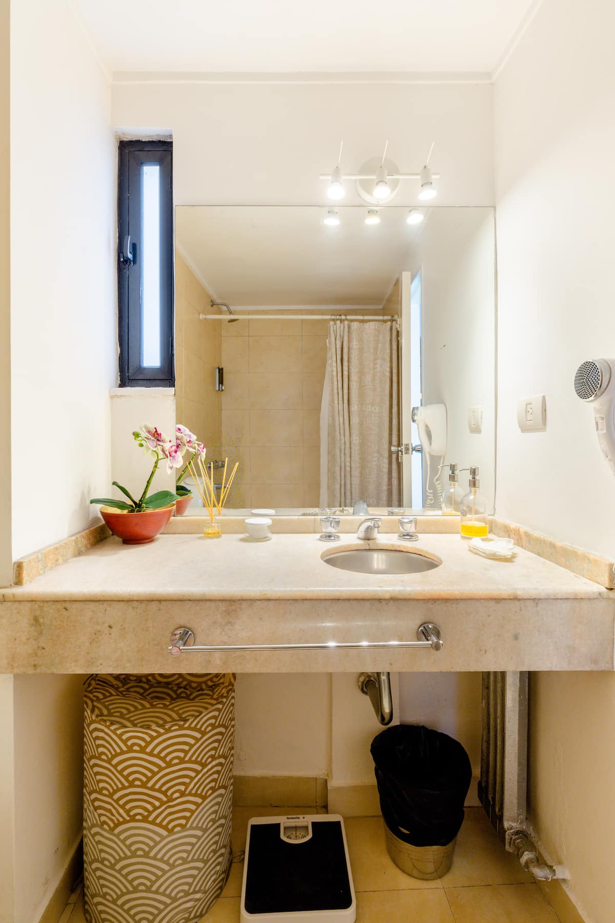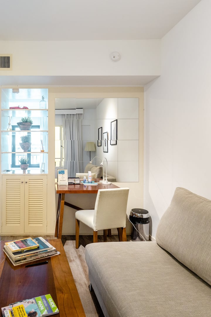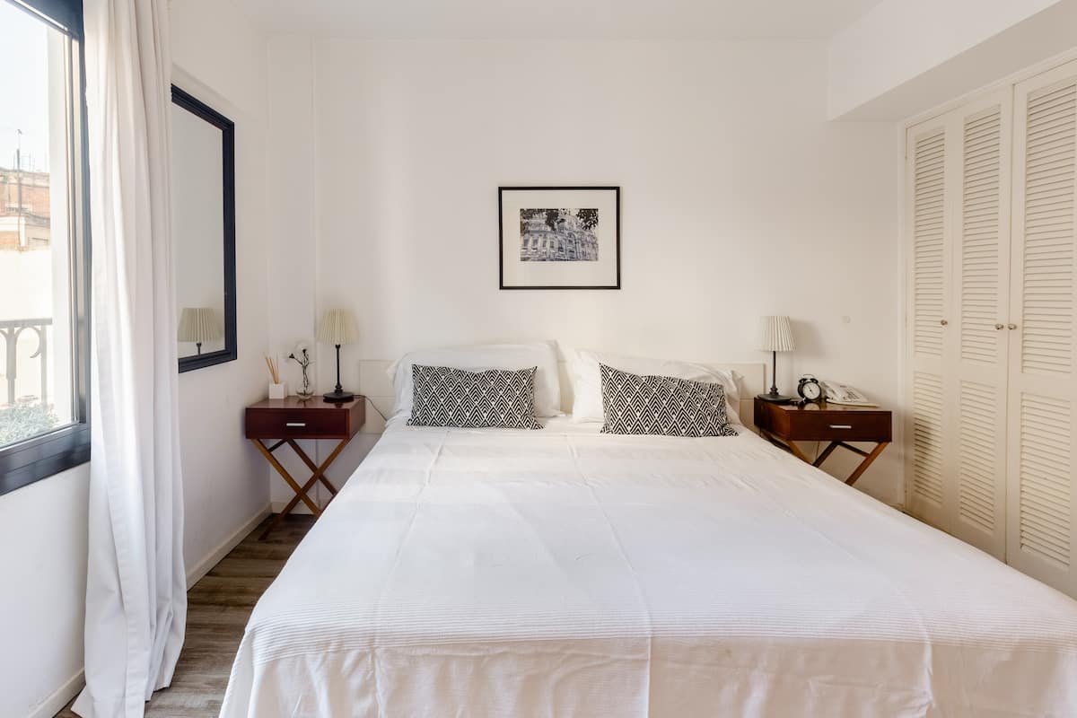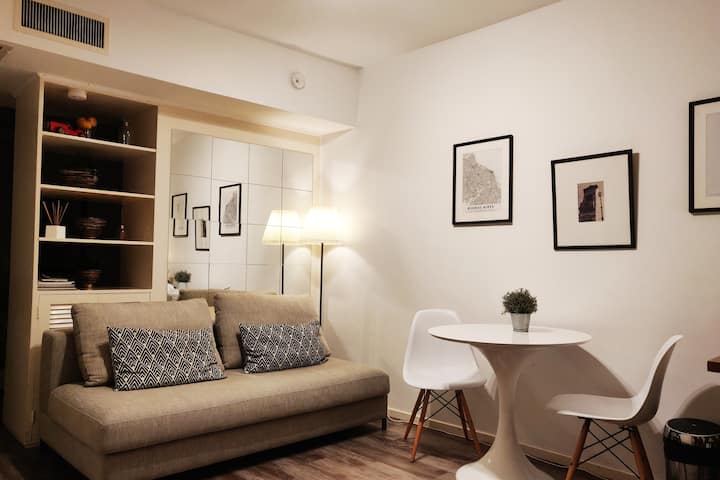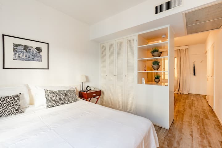 Квартира в Retiro, в районе Plaza San Martin и Av. 9 de Julio, в нескольких кварталах от Teatro Colón. Окна выходят на тихую улицу с хорошим уличным освещением. В здании, ранее использовавшемся как отель 4*, есть фитнес-зал, коворкинг и круглосуточная охрана. В квартире установлены кондиционер (обогрев и охлаждение), холодильник, индукционная электроплита, электрическая духовка и микроволновая печь. Также предусмотрены тостер, электрочайник, посуда, утюг с гладильной доской и цифровой замок с во