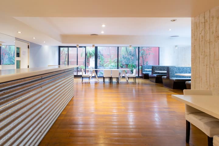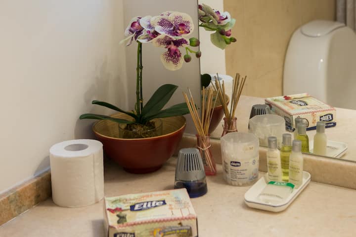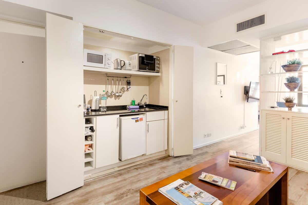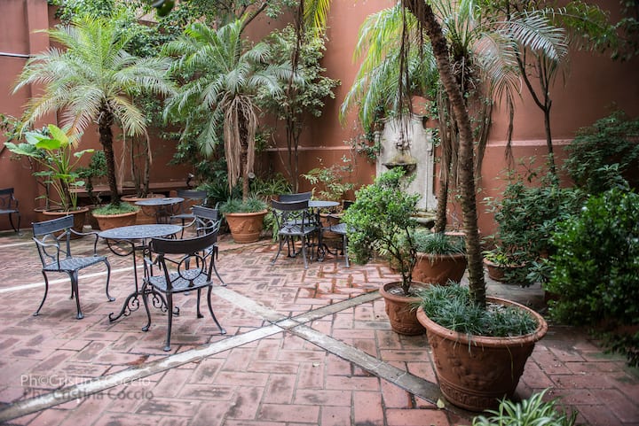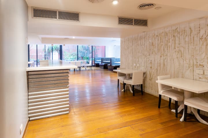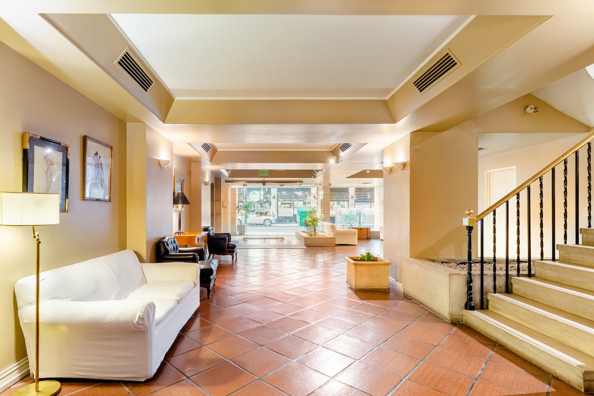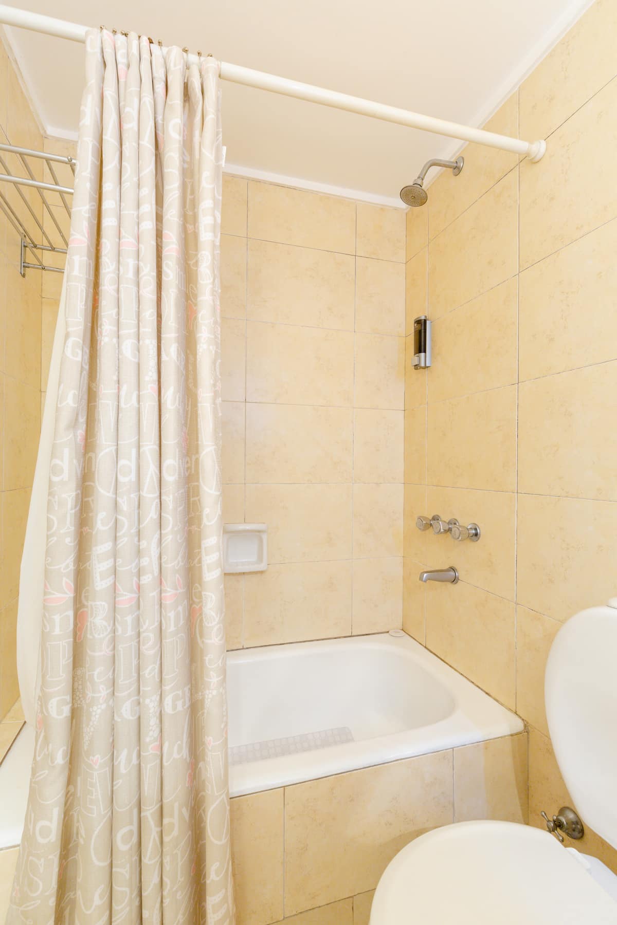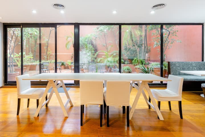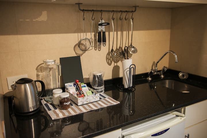Квартира в Retiro, в районе Plaza San Martin и Av. 9 de Julio, в нескольких кварталах от Teatro Colón. Окна выходят на тихую улицу с хорошим уличным освещением. В здании, ранее использовавшемся как отель 4*, есть фитнес-зал, коворкинг и круглосуточная охрана. В квартире установлены кондиционер (обогрев и охлаждение), холодильник, индукционная электроплита, электрическая духовка и микроволновая печь. Также предусмотрены тостер, электрочайник, посуда, утюг с гладильной доской и цифровой замок с во