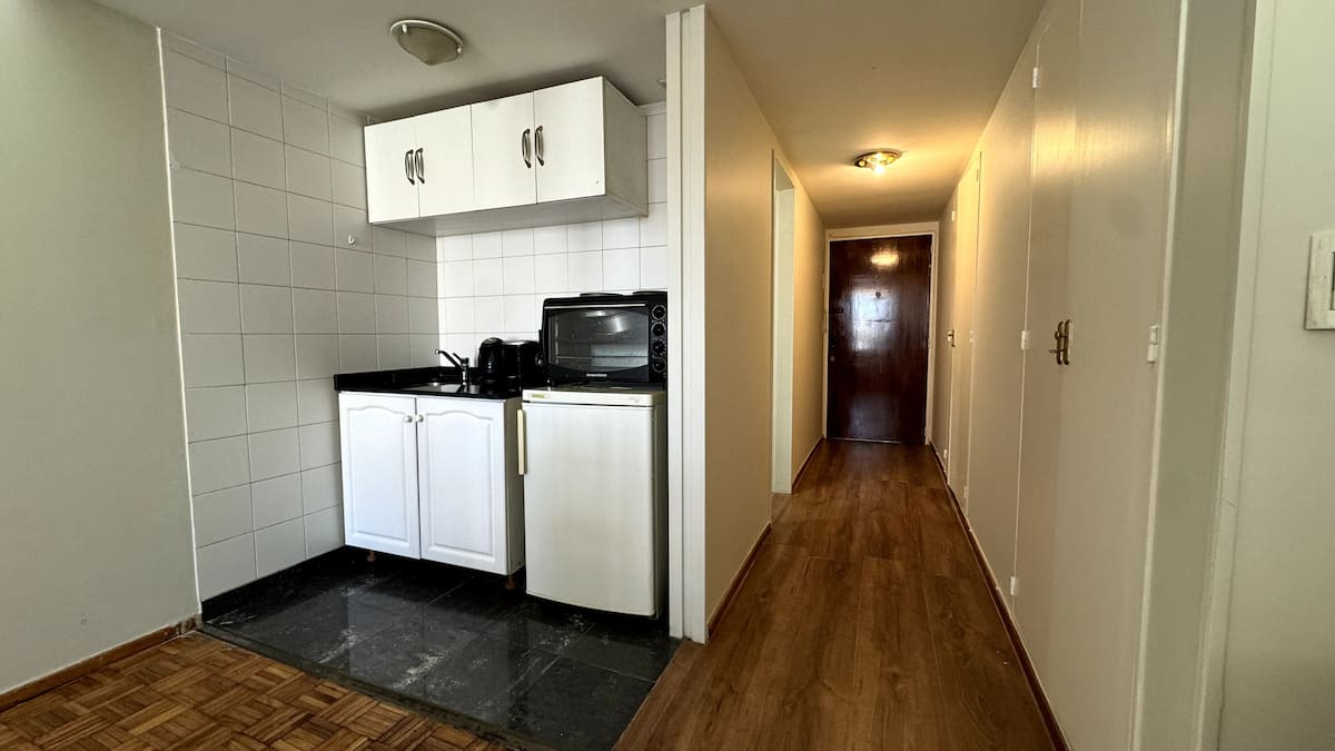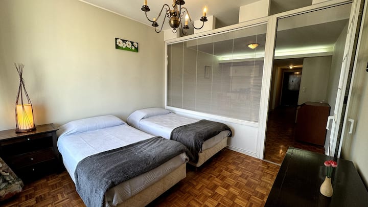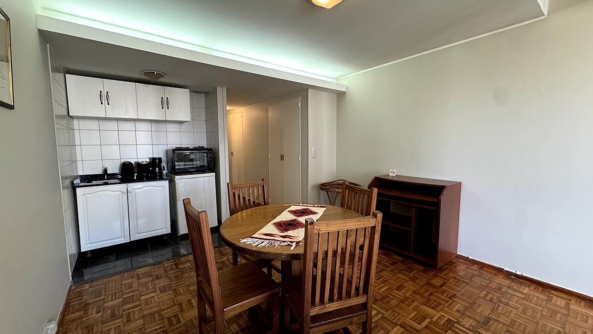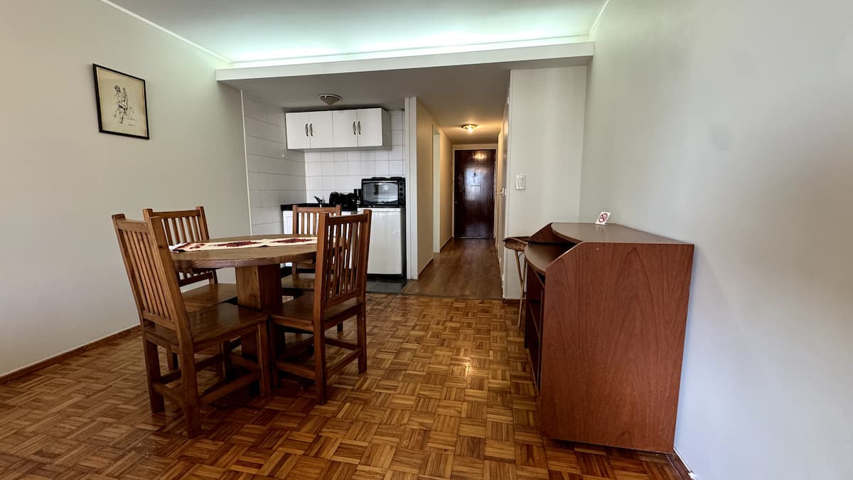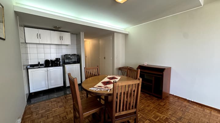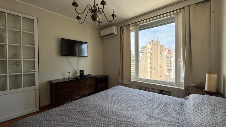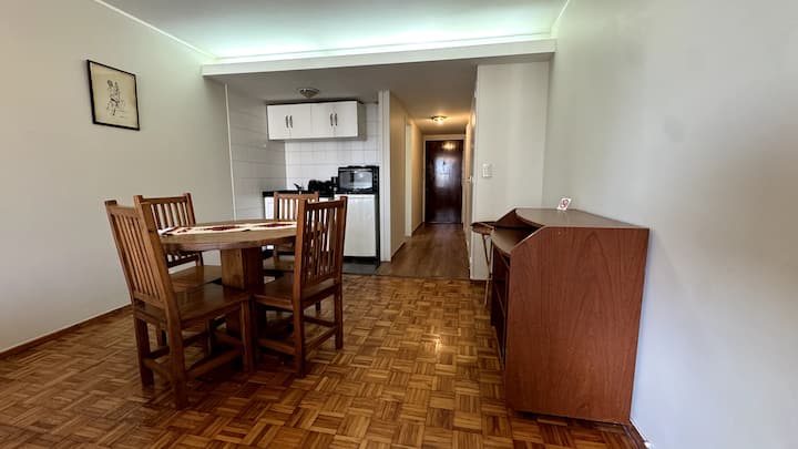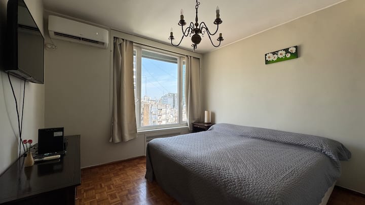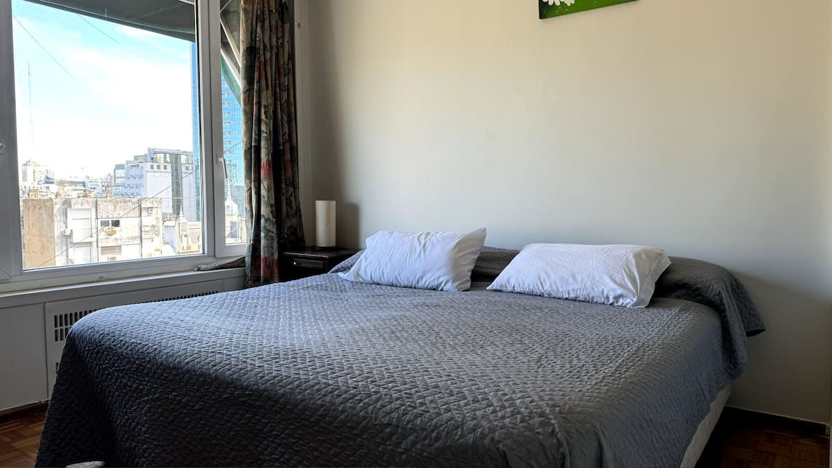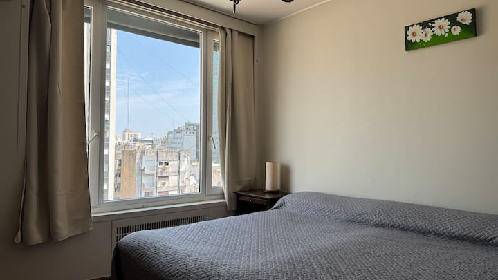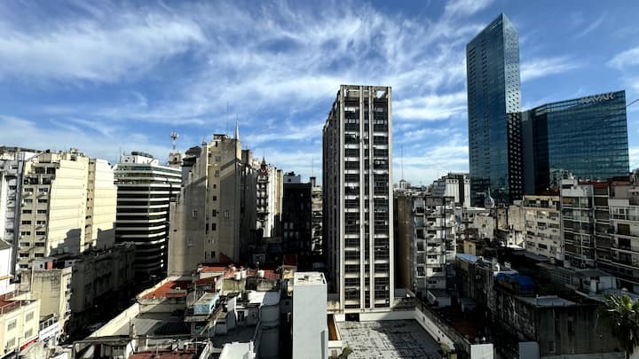 Квартира с 1 комнатой площадью студии в районе Retiro, с панорамным видом. Окна выходят на город, в описании указано наличие естественного освещения. Упоминается размещение для краткосрочного или длительного проживания и близость к ресторанам и транспортным маршрутам в центре города.