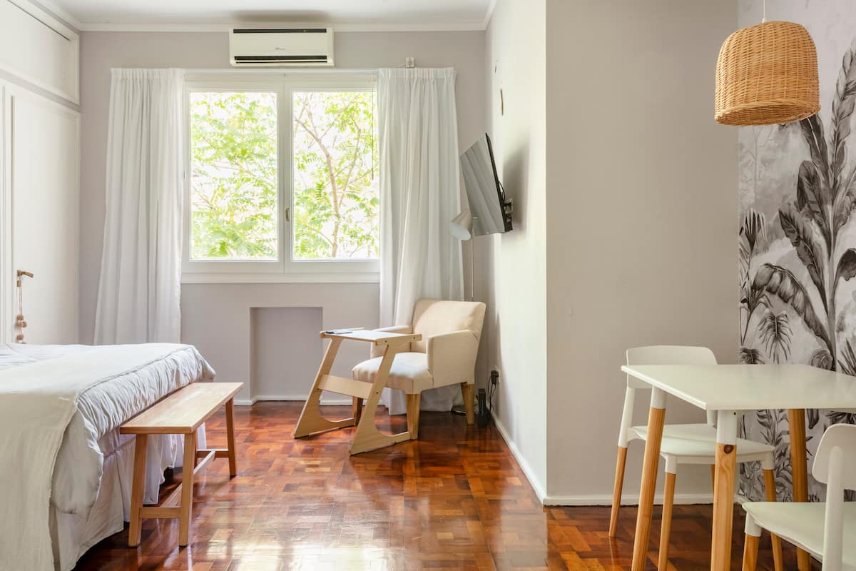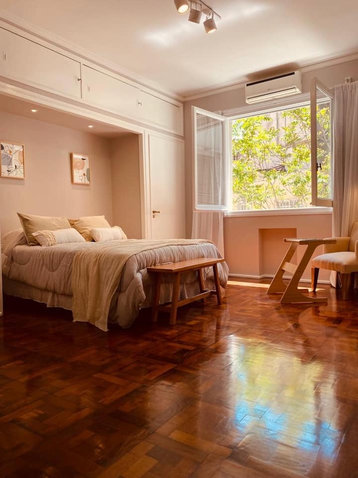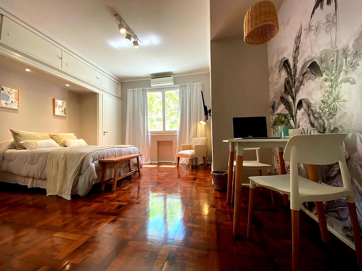 Квартира в Retiro с 1 спальней. Расположена в центральной части Buenos Aires: 30 метров от Plaza San Martin, 3 квартала до Puerto Madero и 100 метров от Florida Street. В ванной и на кухне есть оборудование. Указан доступ к общественному транспорту: метро, поезда, Metrobus и автобусные линии.