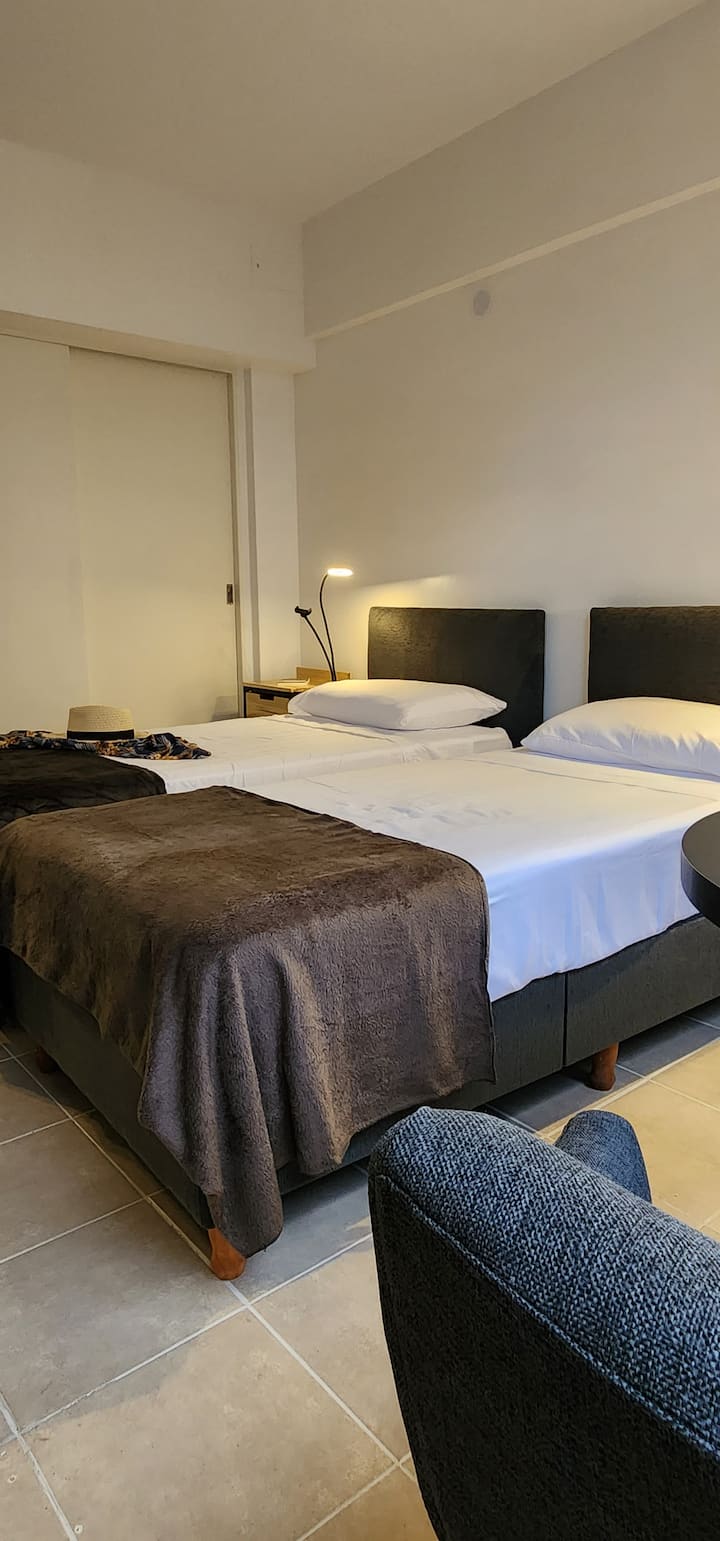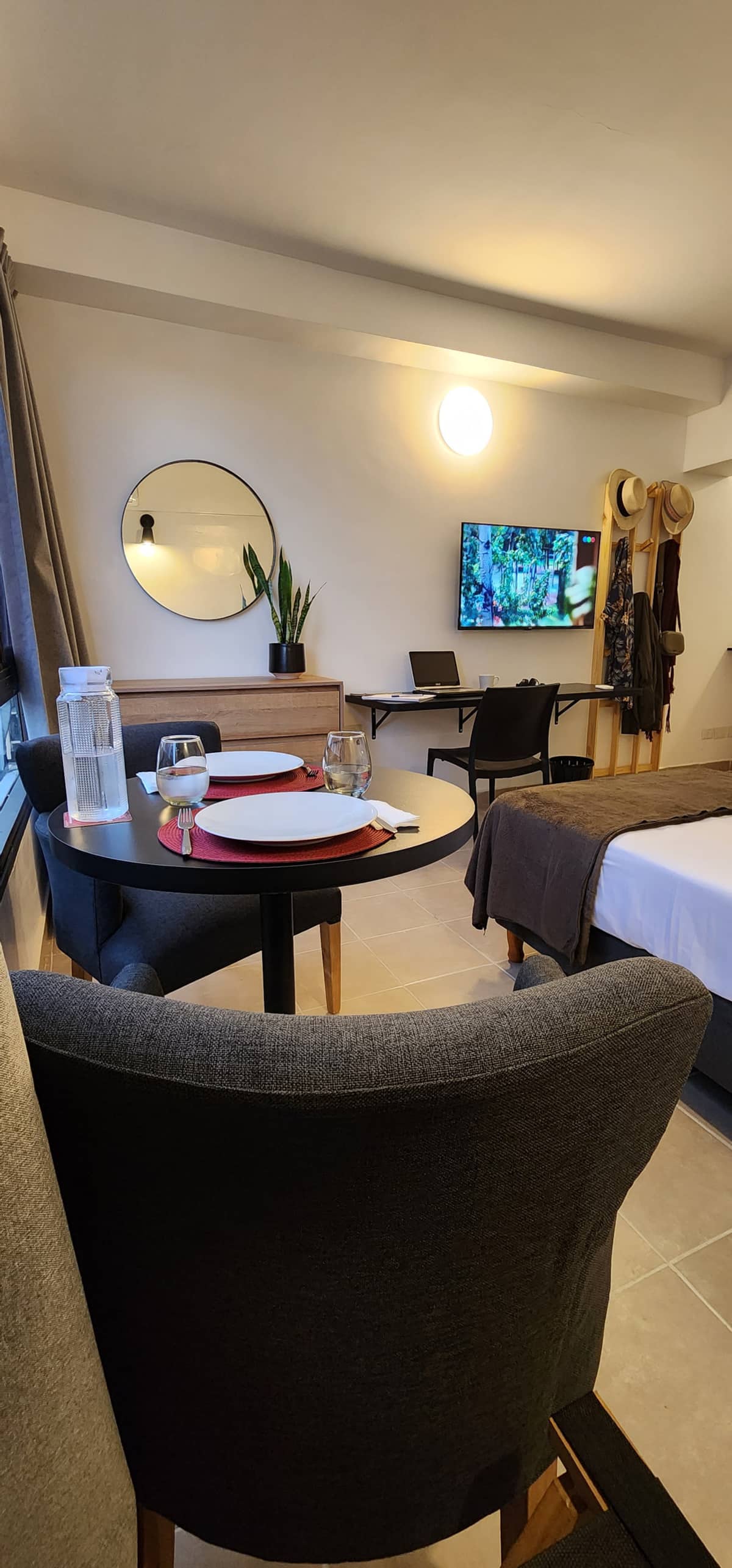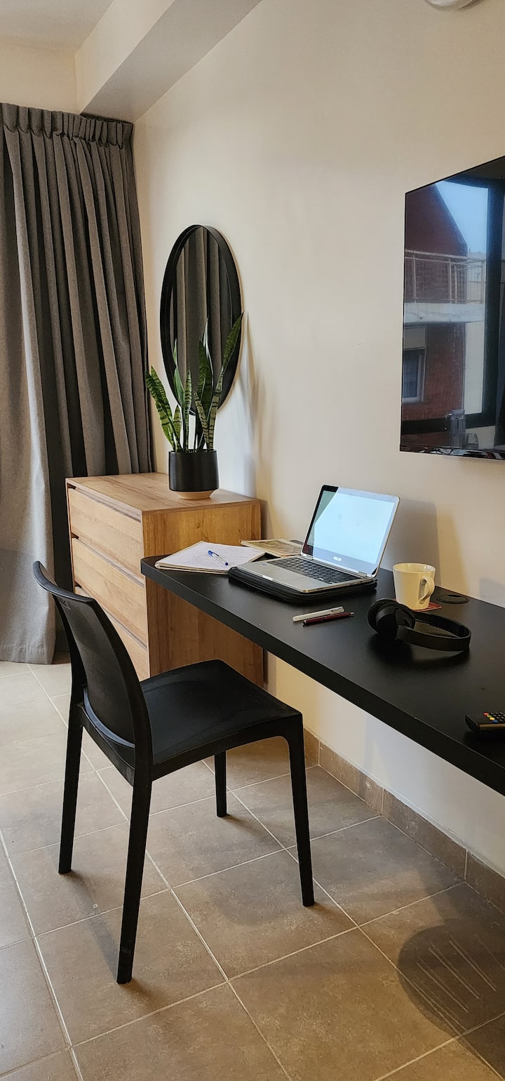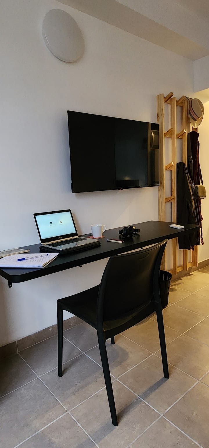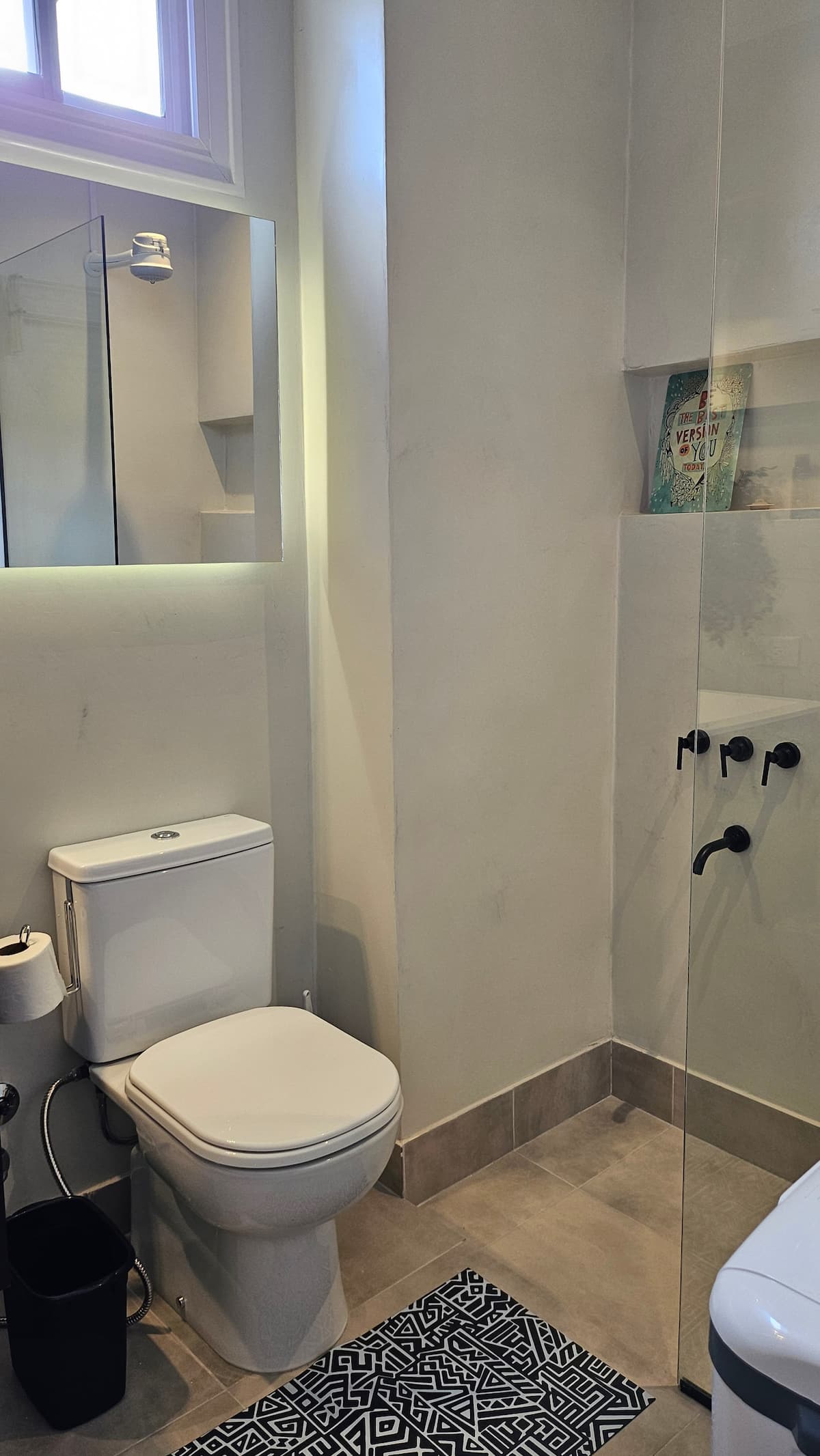 Квартира в Retiro для 2 человек, после ремонта. В кухне установлены вытяжка, большой холодильник, микроволновая печь, тостер и электрогриль для индейки, кухонная утварь и посуда рассчитаны на 4 человека. В спальне кровать размера king либо два односпальных места 90 см, есть ящики для хранения. В ванной душевая кабина с стеклянной перегородкой, водонагреватель и ручной биде. Предусмотрены стиральная машина и рабочее место для двух человек, сейф с цифровым доступом, ящики и зона для вешалок. В гос