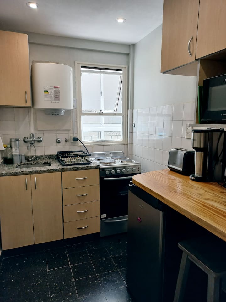 Квартира в Retiro, в 100 метрах от Plaza San Martín и Calle Florida. Расположена на 8-м этаже, есть лифт. Две комнаты с застеклённым балконом, отдельная кухня, ванная с ванной. Квартира полностью оборудована для проживания. В стоимость аренды не указано, коммунальные платежи отдельно.