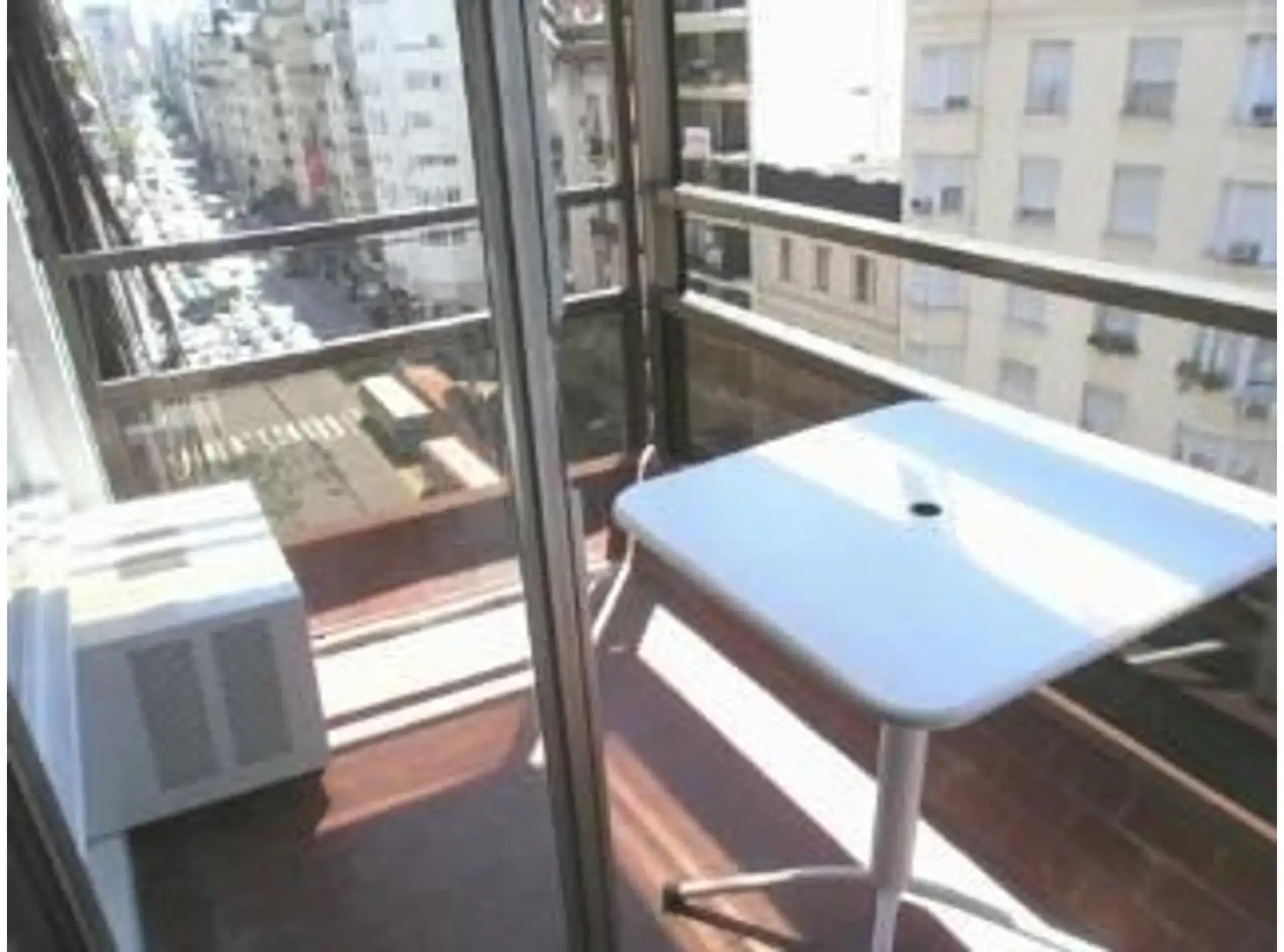 Квартира с 1 спальней в Retiro, окна на Av. Santa Fe, 6-й этаж, балкон. Площадь и планировка описаны как «un ambiente grande»: полноценная ванная с ванной, кухонная ниша (kichinet) и шкаф. Квартира полностью меблирована и оборудована для проживания 2 человек, с кондиционером. В здании круглосуточная охрана, горячая вода централизованная. Домашние животные не допускаются. Временный въезд требует около 3 месяцев залогом: 1 месяц аренды, 1 месяц депозита и 1 месяц комиссии.
