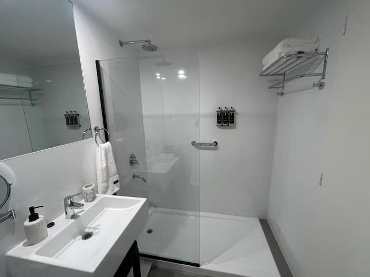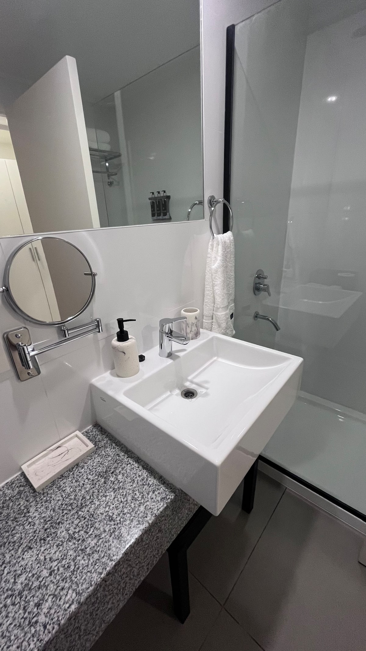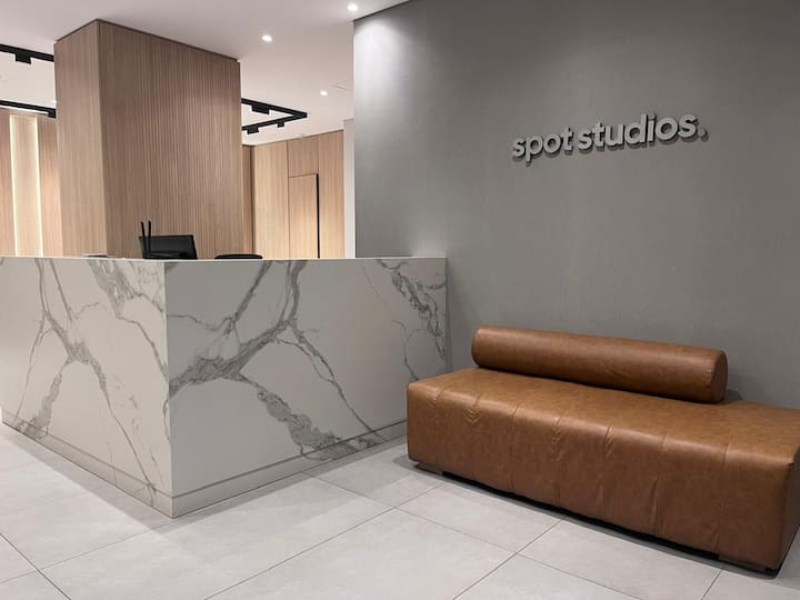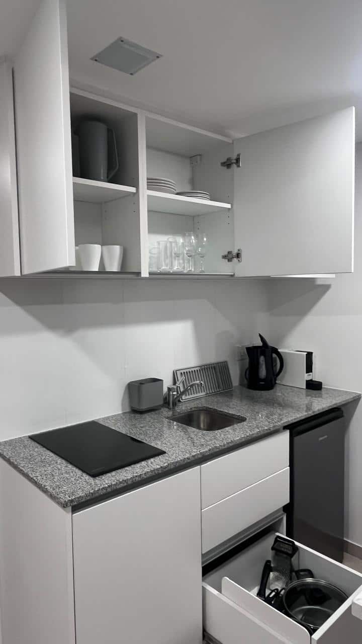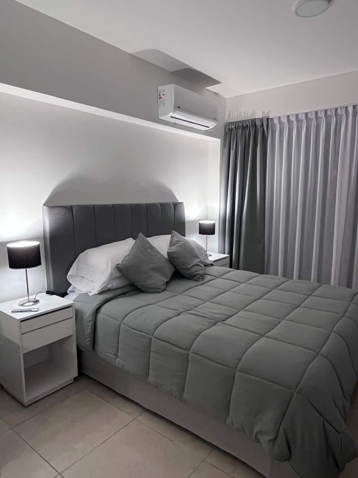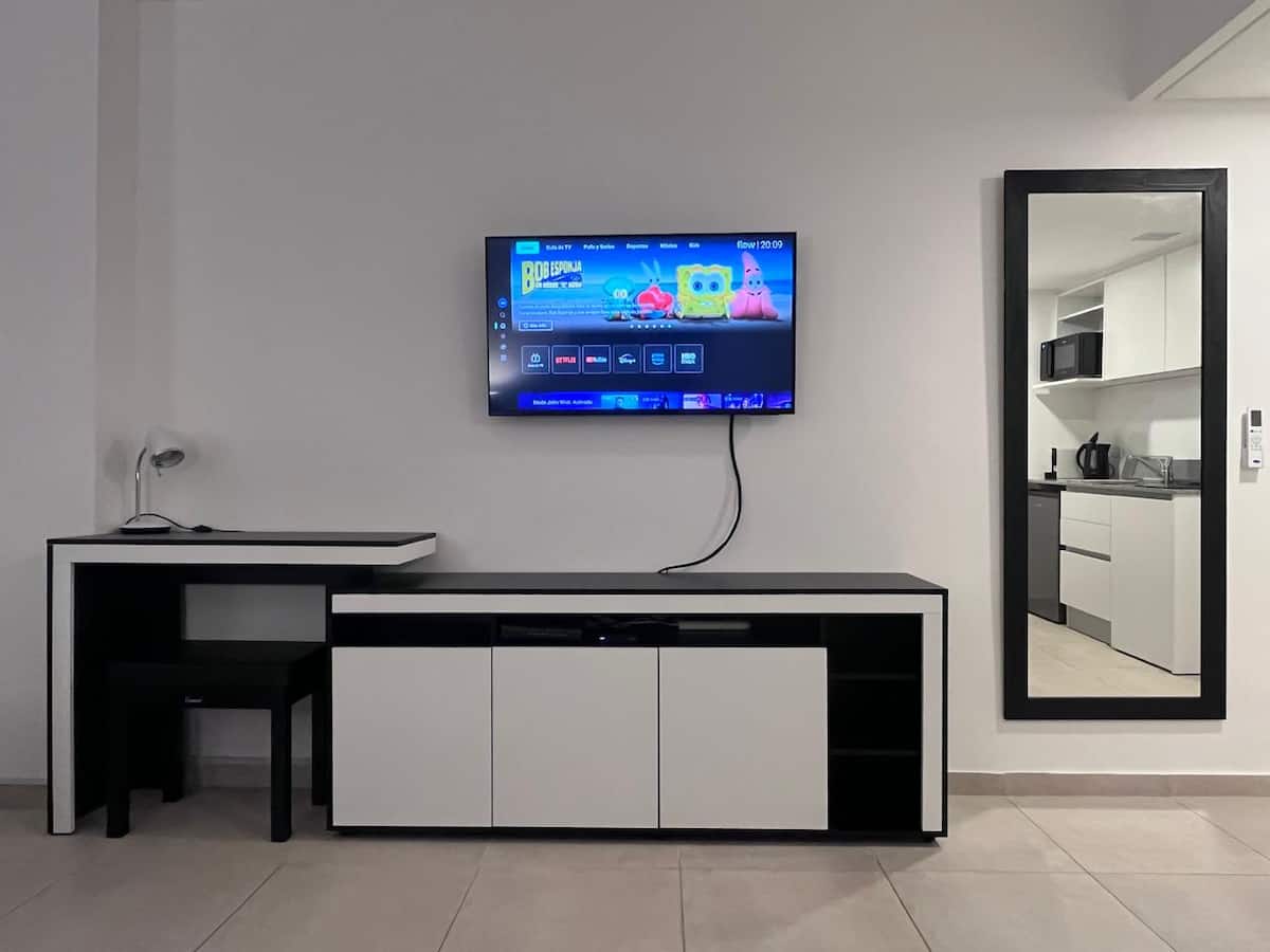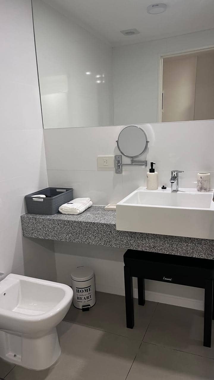 Квартира-студия в Retiro для 3 гостей, новая. В студии есть зона сна с двуспальной кроватью и выходом на балкон с видом на город, а также диван-кровать 90 x 190 см, рабочий стол и телевизор Samsung Smart TV 43”. На кухне есть барная стойка на 3 места и полностью оборудованная кухня с посудой и бытовой техникой. Ванная комната оборудована феном, предусмотрены полотенца и бесплатные туалетные принадлежности. В здании действует охрана 24 часа, биометрический доступ и умный замок; на крыше есть терр