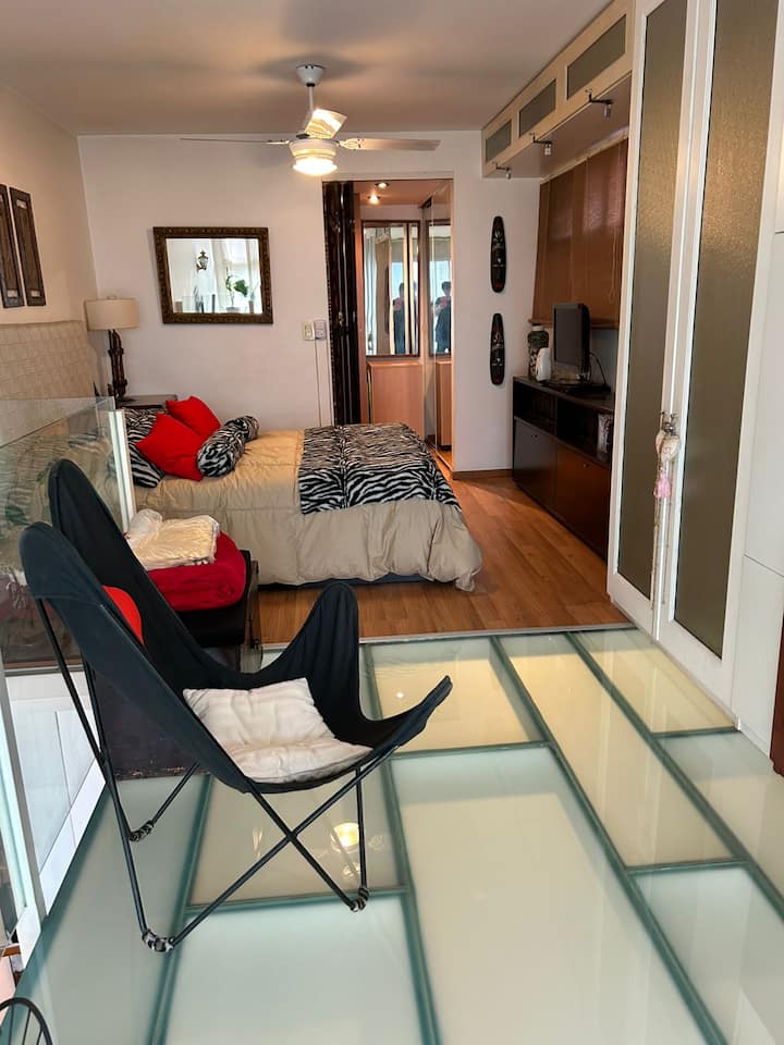 Квартира-лофт в Saavedra, 13-й этаж, окна с открытым видом, с балконом. Указаны доступ к Wi‑Fi и TV. Район вблизи Av. Cabildo с Metrobus; 9 кварталов до Subte Línea D и рядом с Saavedra Park.