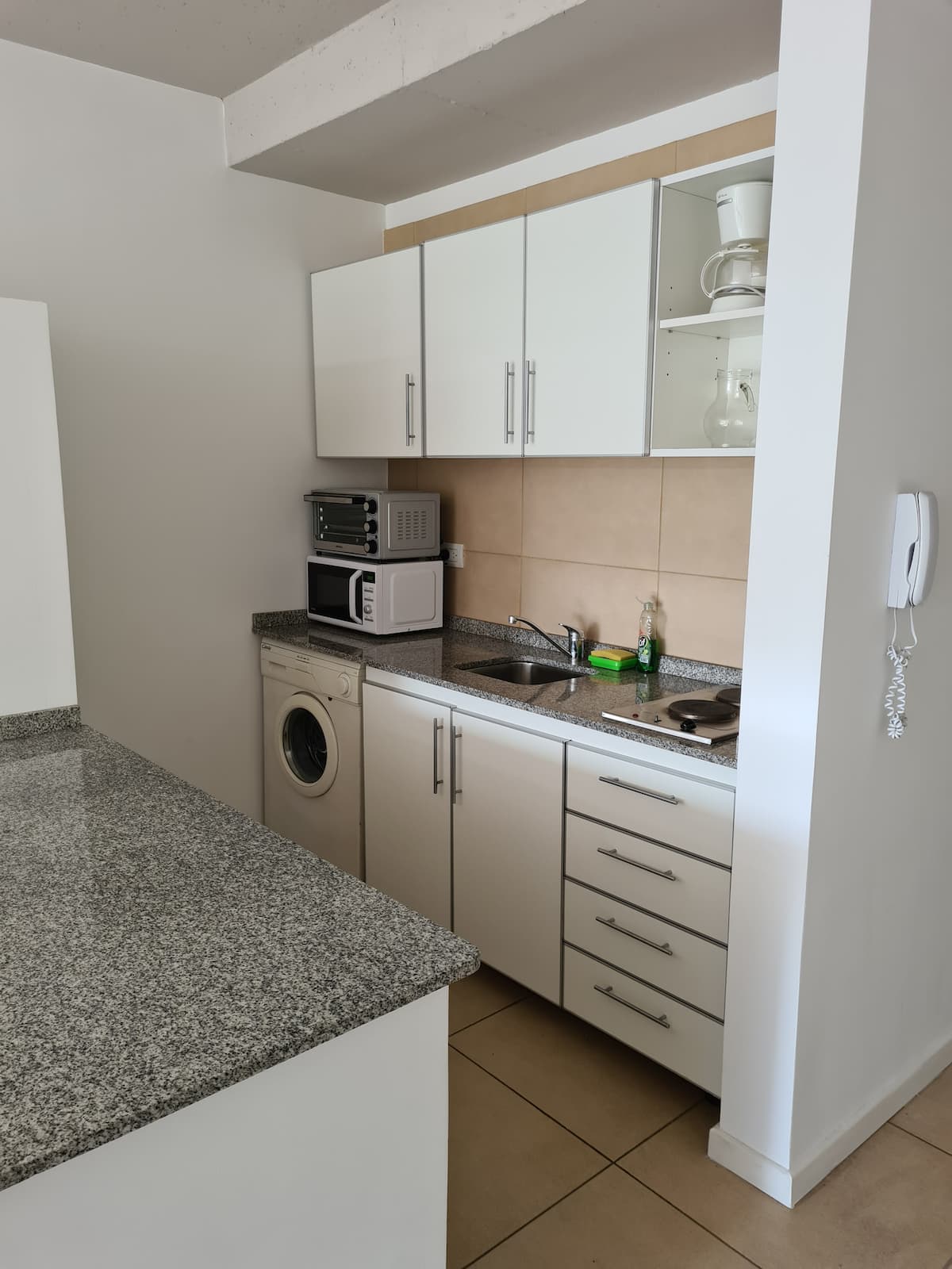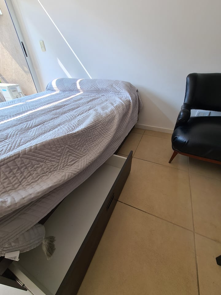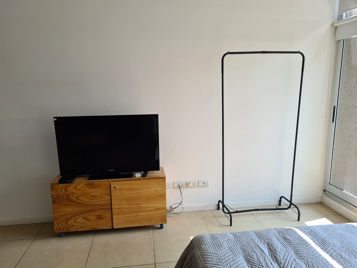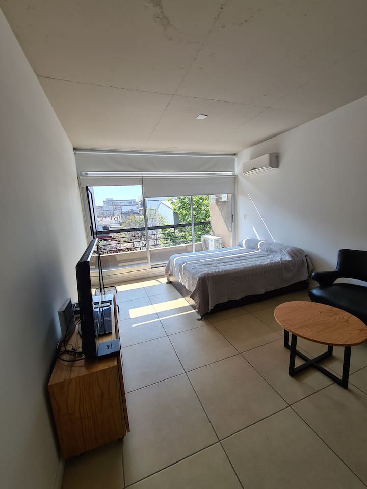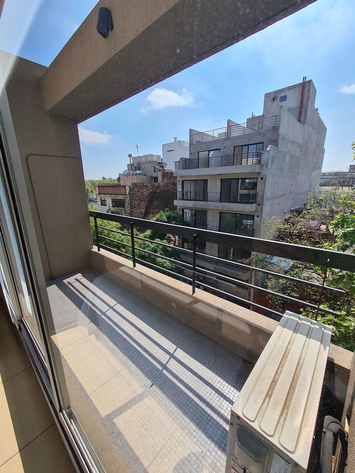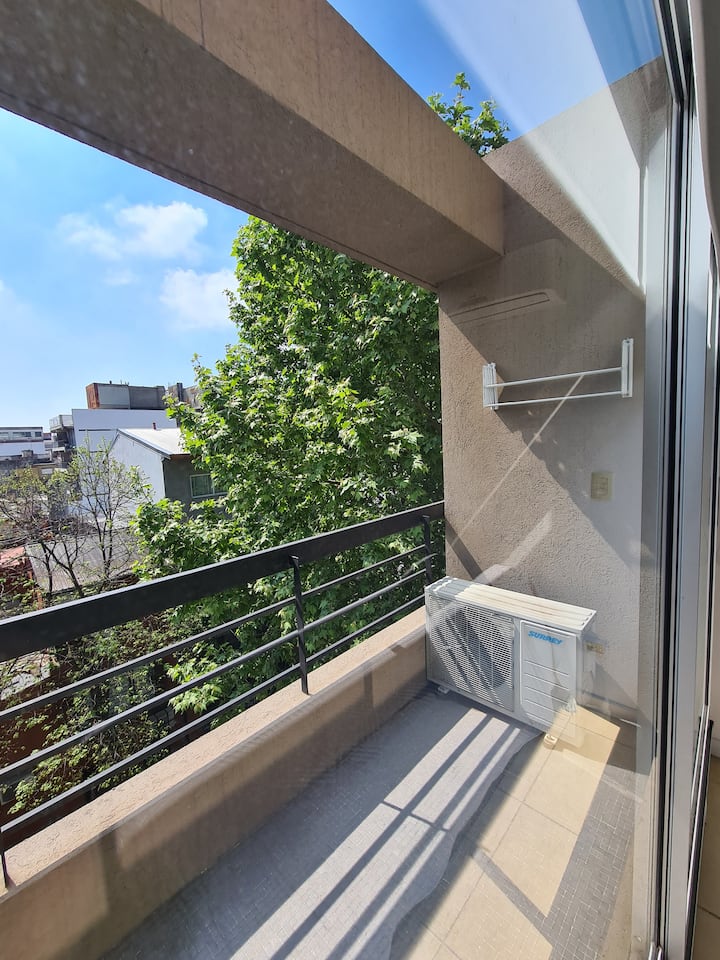 Квартира в Saavedra, с балконом на улицу и окнами на фасад. В ней есть кондиционер (тёплый/холодный) и кухня с холодильником с морозильной камерой. Также указаны стиральная машина, кофеварка, тостер и микроволновая печь. 5 кварталов до Av. Cabildo (метро) и 7 кварталов до Dot Baires Shopping.