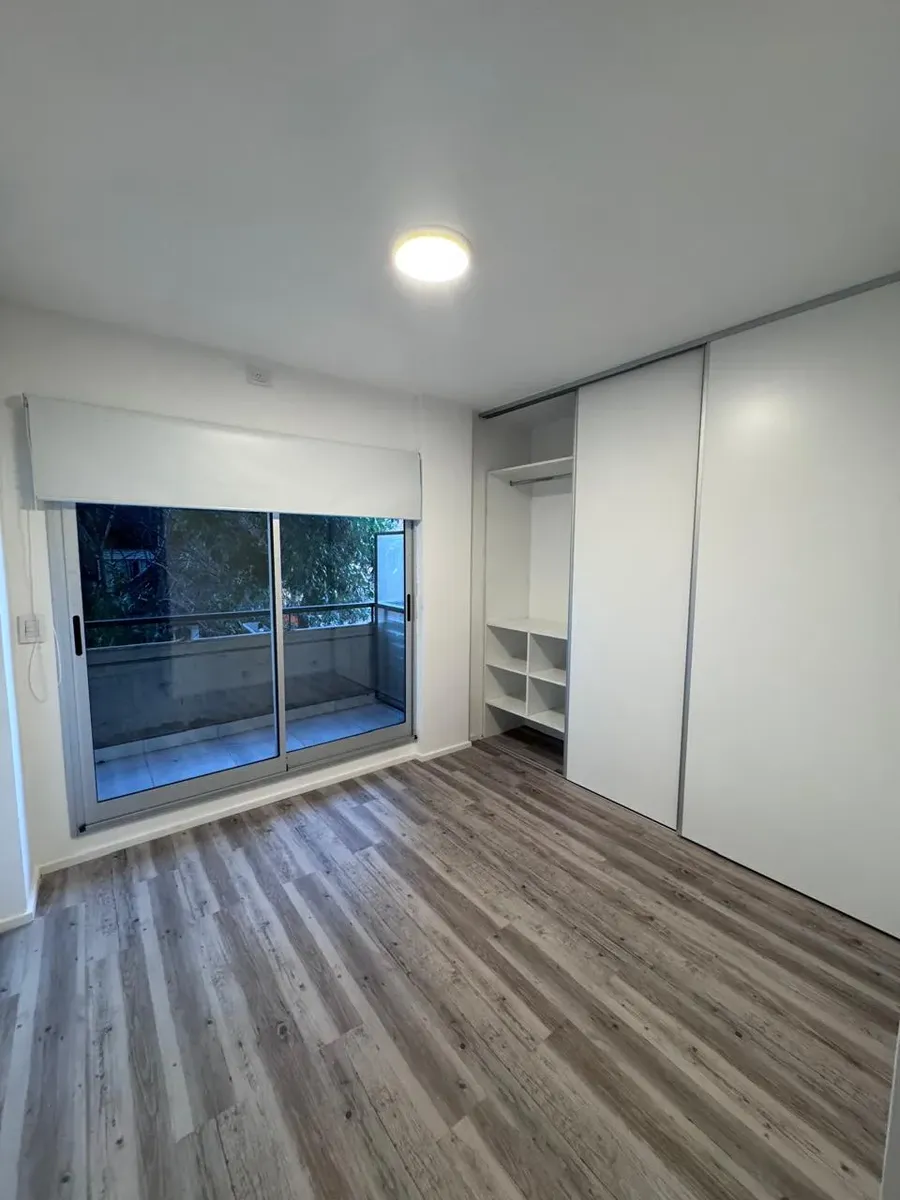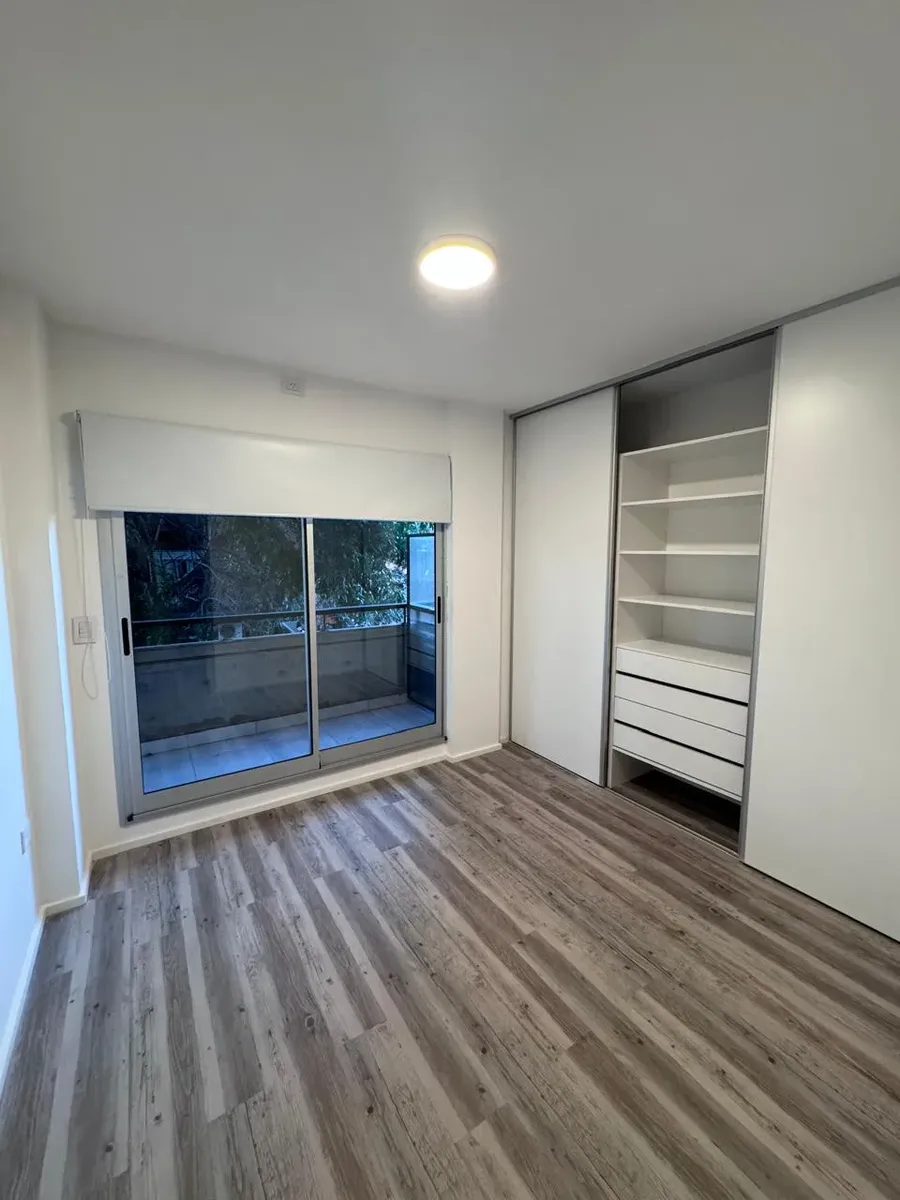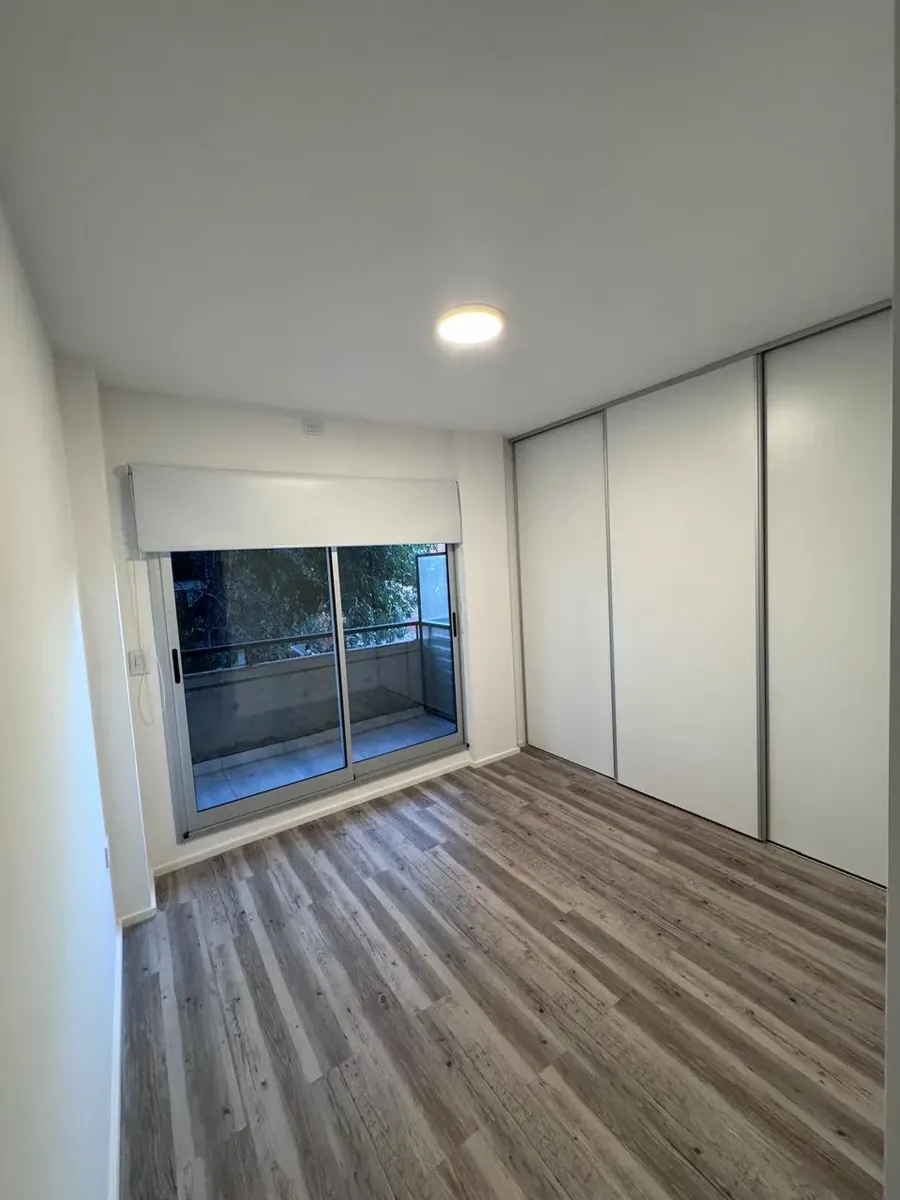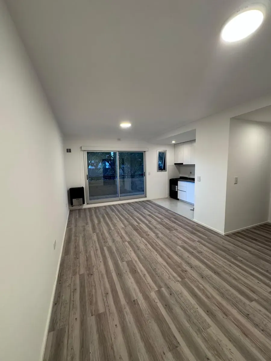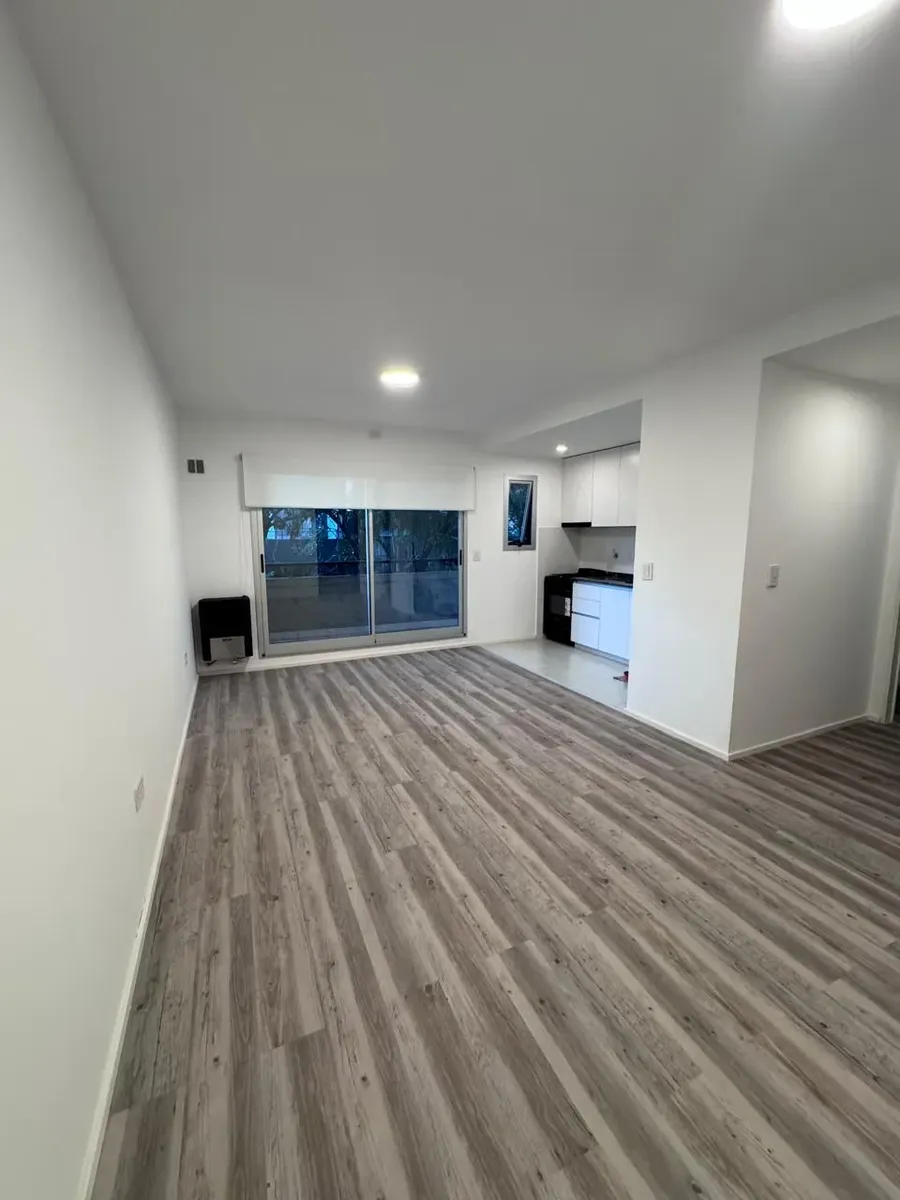 Квартира в Saavedra, 2 комнаты, 1 спальня, общая площадь 52 m²: 44 m² крытых и 8 m² балкон. 3-й этаж, окна на улицу, с мебелью не указано, новая (никто не жил). В планировке гостиная-столовая с французскими окнами и выходом на балкон, спальня с ванной (suite) и туалет. Кухня интегрирована, газовая плита, вытяжка, электрический бойлер; предусмотрено подключение стиральной машины. Балкон 8 m² с видом во внутренний двор квартала, отопление — печь с отводом воздуха (tiro balanceado), установлены сте