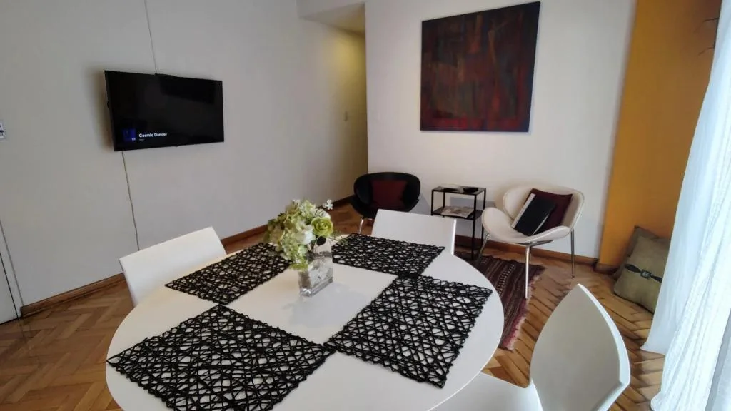 Квартира из 2 комнат площадью и планировкой под проживание 2 человек в Saavedra, на улице Vilela, рядом с Boulevard San Isidro. Окна на улицу, есть французский балкон. Кухня оборудована холодильником с морозильной камерой и стиральной машиной. В спальне 2 односпальные кровати, которые можно объединять или разделять. В гостиной-столовой установлены кондиционер (холод), газовая печь (система tiro balanceado), Smart TV 43” 4K, доступен Wi‑Fi 113 Mbps для удалённой работы. Полная ванная комната. Ком