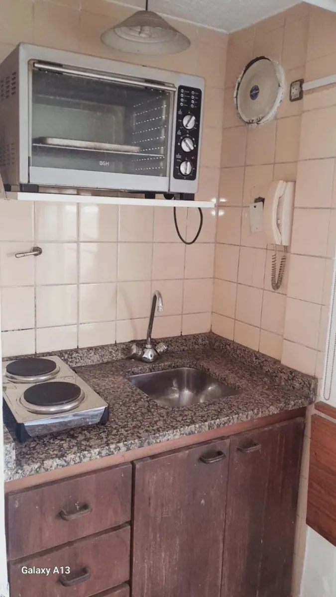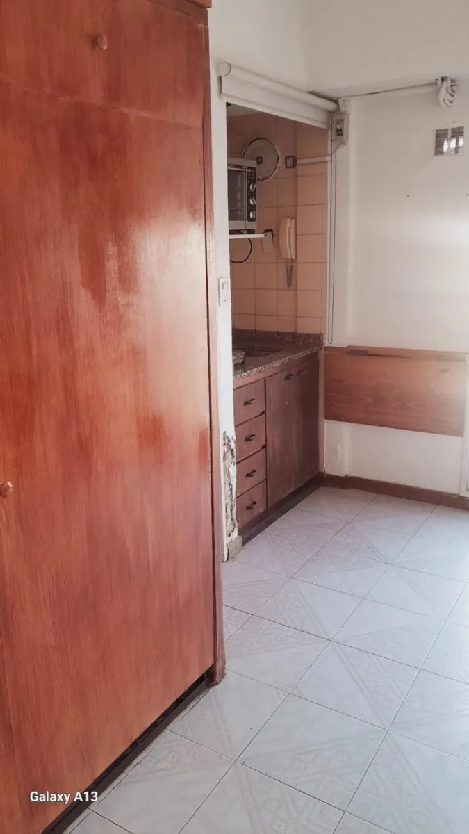 Квартира-студия в Saavedra, 10-й этаж, с мебелью. В наличии кондиционер, раскладная кровать, стол угловой с стульями, большое окно с жалюзи и выход на собственный балкон. Кухня оборудована варочной панелью, духовкой и кухонной мебелью, есть электрические приборы. Ванная комната с душем, унитазом и умывальником, с окном наружу. В здании есть лифт и система безопасности, коммунальные платежи здания составляют 50.000 ARS. Разрешены домашние животные.