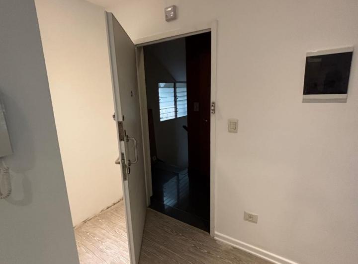 Квартира в Saavedra, окна на Boulevard Garcia del Rio, 1-й этаж, спереди (высокий). Двухкомнатная планировка: гостиная-столовая-кухня с выходом на общий балкон спереди, отдельная кухня с электрической плитой и барной стойкой, спальня с выходом на тот же балкон, отдельная ванная комната. В квартире установлены 2 кондиционера «холод/тепло» (новые), возможен вариант частично с мебелью. Коммунальные платежи здания невысокие.
