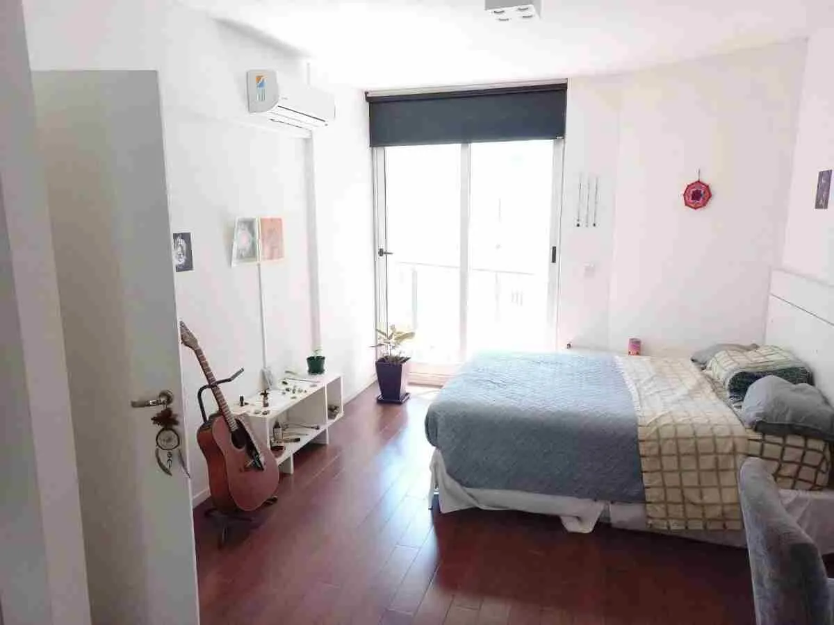 Квартира из 2 комнат площадью 50 m² в Saavedra, с балконом. В гостиной-столовой есть стол и стулья, диван, телевизор с кабельным телевидением; предусмотрены Wi‑Fi и кондиционер (холод/тепло). Отдельная кухня с духовкой, холодильником с морозильной камерой, микроволновой печью и полностью укомплектованной посудой. В спальне двуспальная кровать-сомье и шкафы; ванная комната с ванной. В здании есть прачечная, бассейн и общая гостиная для жильцов (SUM). Коммунальные платежи оплачиваются отдельно; па