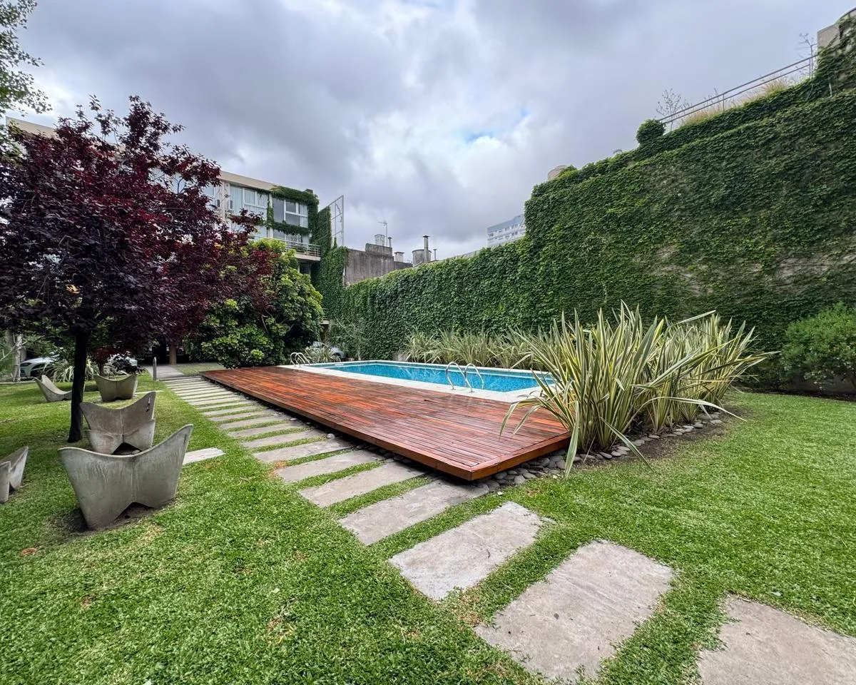 Квартира-лофт с 2 комнатами площадью 77 m² в Saavedra, на первом уровне, с окнами на улицу и балконом. В планировке: гостиная-столовая с барной стойкой и выходом на балкон, гостевой туалет, холодильник и морозильная камера под столешницей, шторы black out и роллерные шторы. На втором уровне спальня с гардеробной, ванной en suite и второе пространство над гостиной, соединённое стеклянным подвесным мостом (под кабинет или дополнительную комнату), кондиционеры на обоих уровнях (холод/тепло). В конд