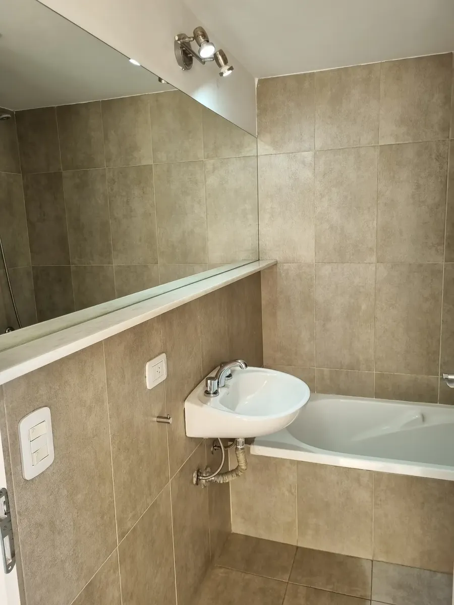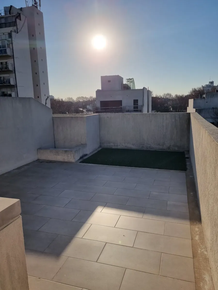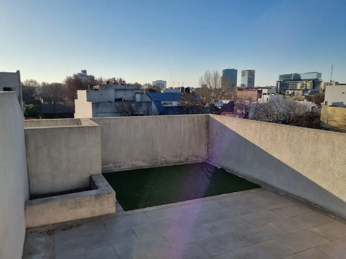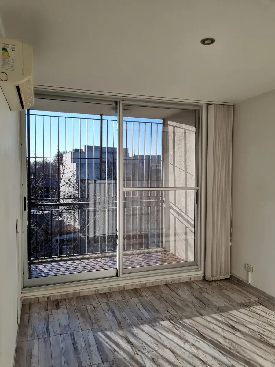 Квартира-студия, которую можно разделить, в Saavedra. Площадь и планировка не указаны; 3-й этаж, окна на улицу, с балконом. Есть частная терраса с зоной гриля и (закреплённое) парковочное место в крытом паркинге. Дому около 6 лет. Договор аренды на 2 года; требуется подтверждение дохода и залог-страховка аренды. В 2 кварталах от Av. Balbín и в 3 кварталах от Parque Sarmiento; до Parque Saavedra около 10 кварталов. Рядом с поездом Mitre; до DOT около 10 минут. Рядом маршруты colectivos 76, 71, 11