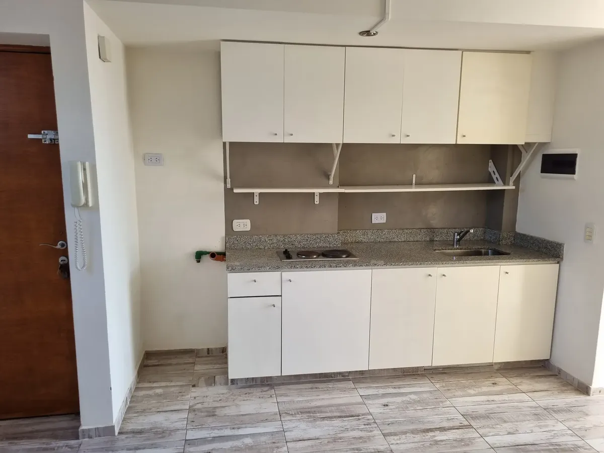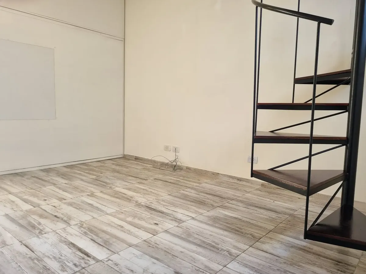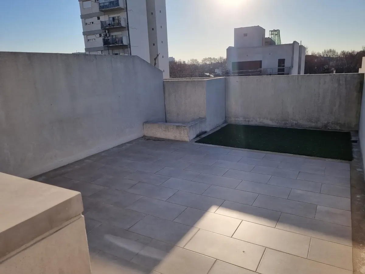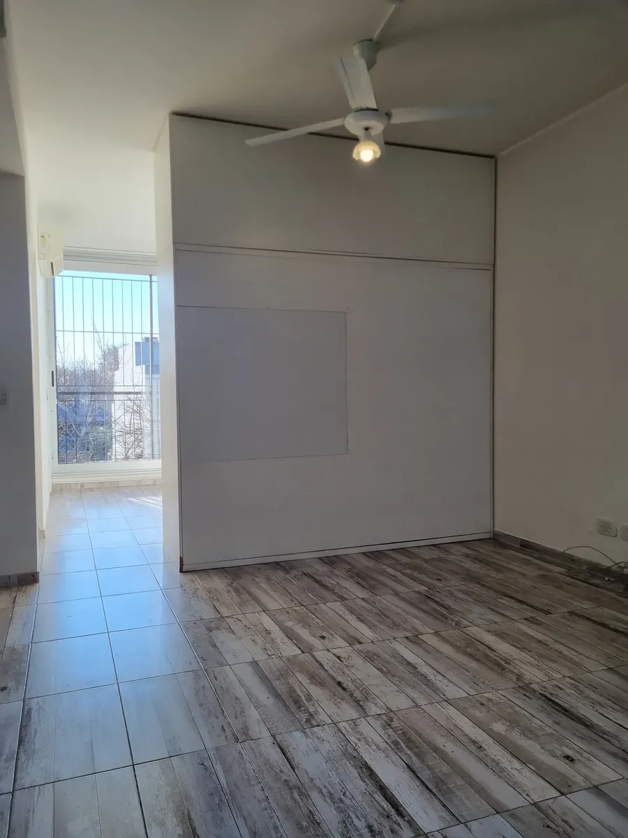 Квартира-студия, которую можно разделить, в Saavedra. Площадь и планировка не указаны; 3-й этаж, окна на улицу, с балконом. Есть частная терраса с зоной гриля и (закреплённое) парковочное место в крытом паркинге. Дому около 6 лет. Договор аренды на 2 года; требуется подтверждение дохода и залог-страховка аренды. В 2 кварталах от Av. Balbín и в 3 кварталах от Parque Sarmiento; до Parque Saavedra около 10 кварталов. Рядом с поездом Mitre; до DOT около 10 минут. Рядом маршруты colectivos 76, 71, 11