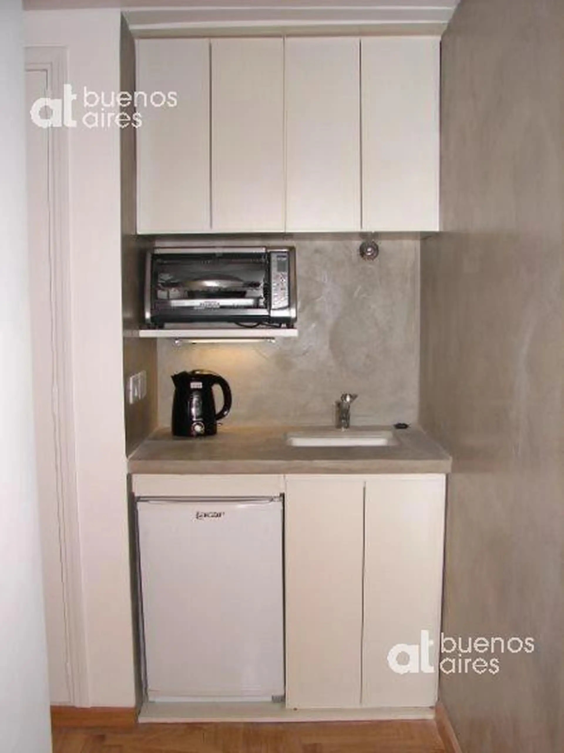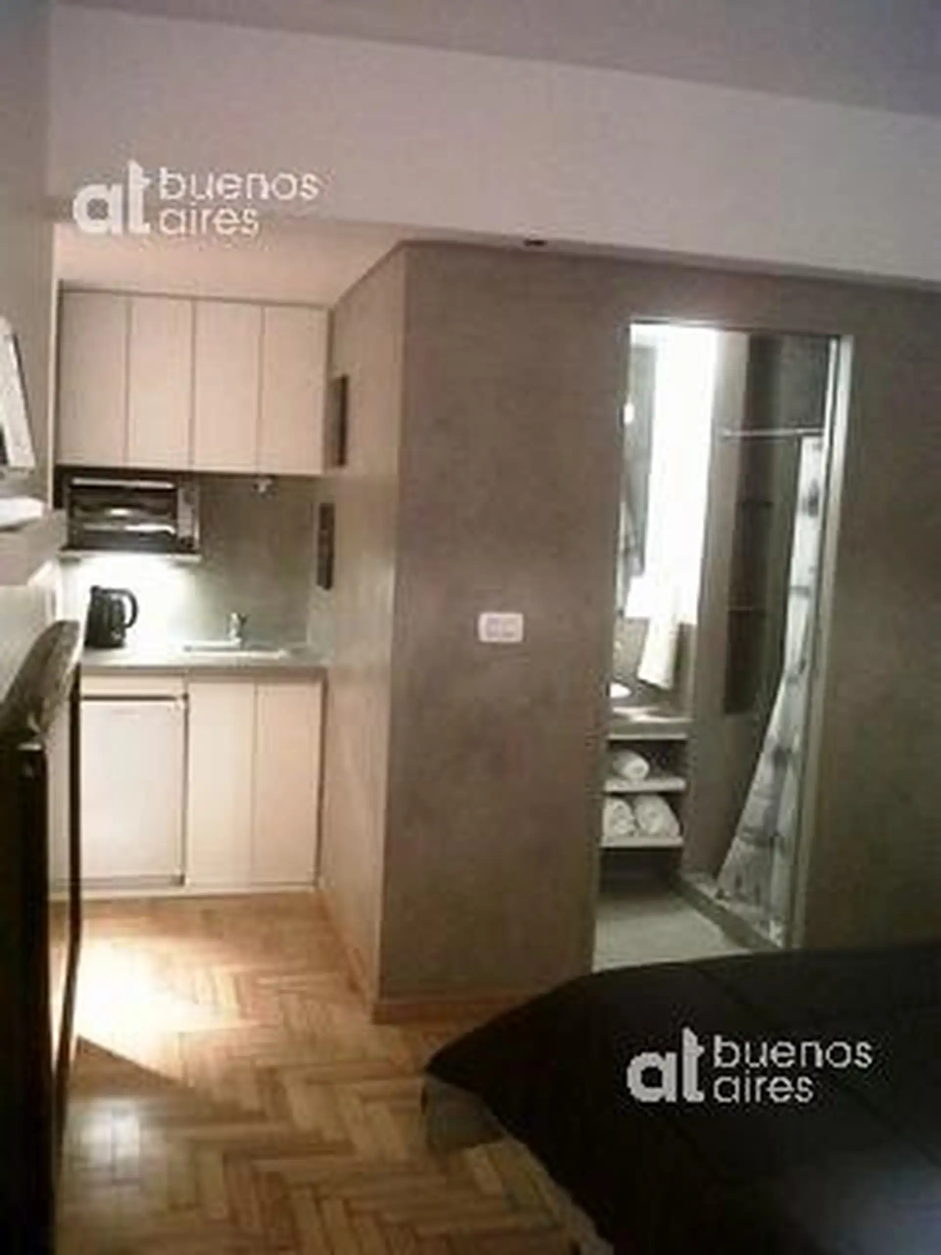 Квартира-студия площадью 28 m² в Recoleta, окна во двор (balcón a contrafrente) и с открытым балконом. После ремонта, с мебелью: раскладной диван (sommier 2 plazas), стол и стулья, панельные шторы. Кухонный уголок с электрической духовкой, электрической варочной панелью и холодильником, в комнате телевизор LCD 32 дюйма, музыкальный центр, телефон. Ванная с душем. В аренду входит значение, указанное как “valor publicado + servicios (luz, agua)”. Доступна с 02/05/2016.
