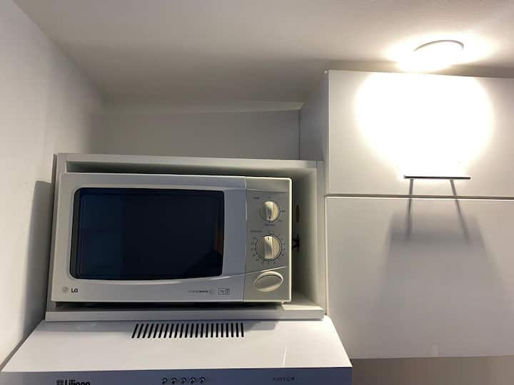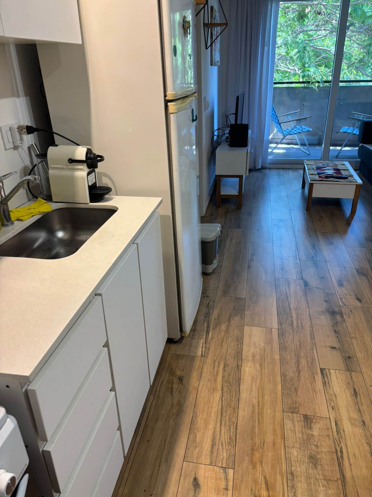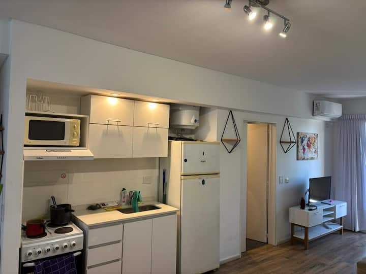 Квартира-студия в San Cristóbal, новая, с отдельной ванной комнатой с душем и биде. Есть кондиционер (горячий/холодный режим) и балкон. На территории здания: общая гостиная для жильцов (SUM) типа коворкинга, зона гриля, прачечная, терраса с солярием. В стоимость включены WiFi 300 mb и TV с 600 каналами.