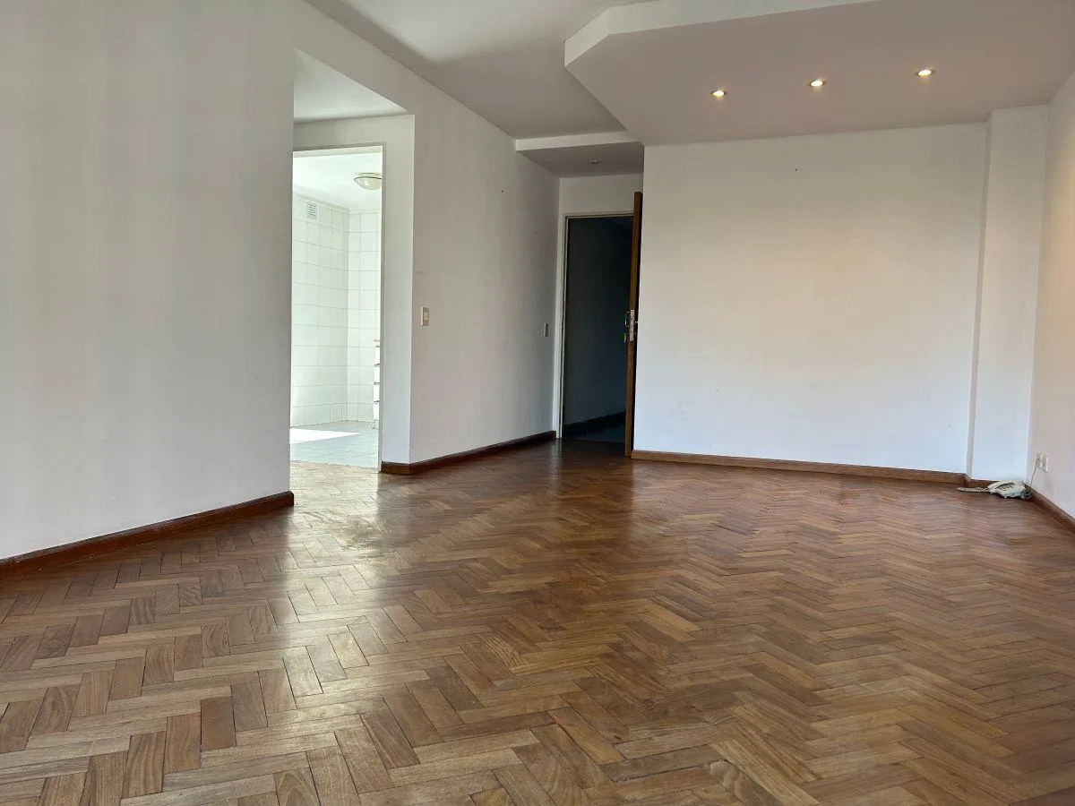 Квартира с 2 комнатами в San Isidro, окна на запад, на высоком этаже. Есть гостиная-столовая с деревянным полом и выходом на один балкон, а также кухня с большими навесными и нижними шкафами, выходом на второй балкон и зоной для прачечной с выводом под подключение стиральной машины. Кухня на газу, горячая вода и отопление от собственной котельной. Полная ванная с естественной вентиляцией, спальня с шкафом-купе. В доме 2 лифта для жильцов и отдельный лифт для обслуживания, круглосуточная охрана и