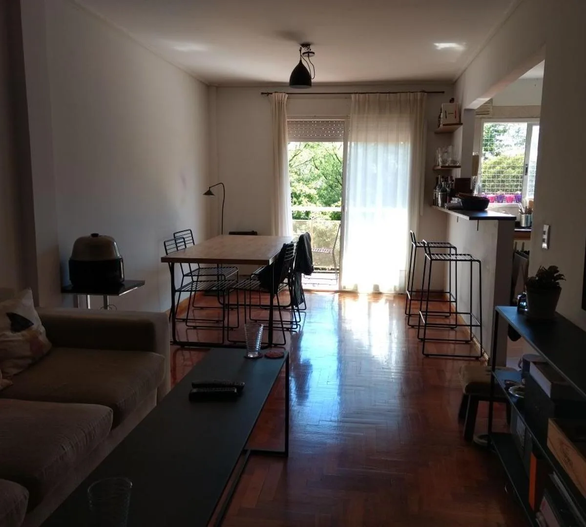 Квартира в San Isidro из 2 комнат с 1 спальней и кухней, объединённой с гостиной. Полная ванная, балкон с окнами во двор (contrafrente) и кладовая (baulera). Парковочное место под крышей включено в предложение. В здании установлены камеры безопасности. Коммунальные платежи в тексте не указаны; перечислены электричество, канализация (cloacas), газ и водоснабжение (agua corriente). Требования по аренде: арендный платёж за 1 месяц, депозиты за 1 месяц; комиссия 5% по гарантии/страховке. Договор на