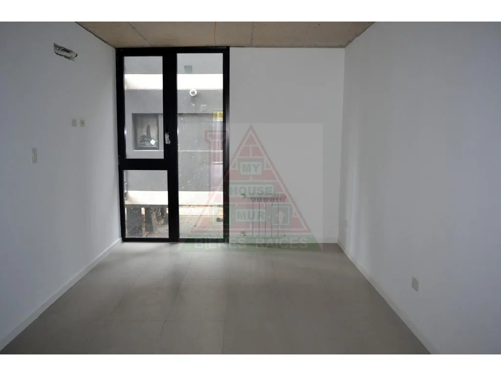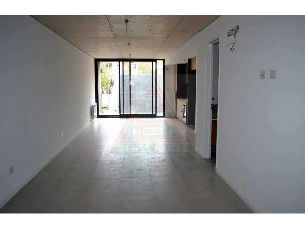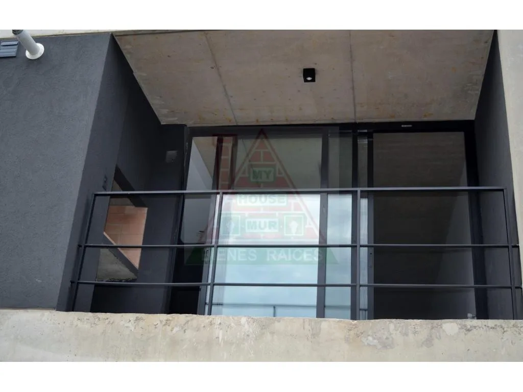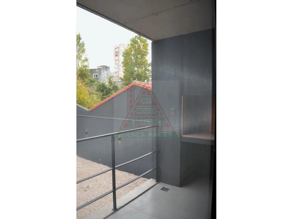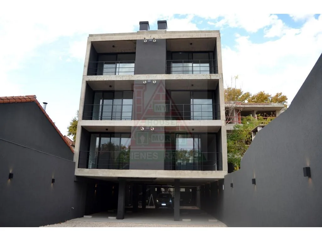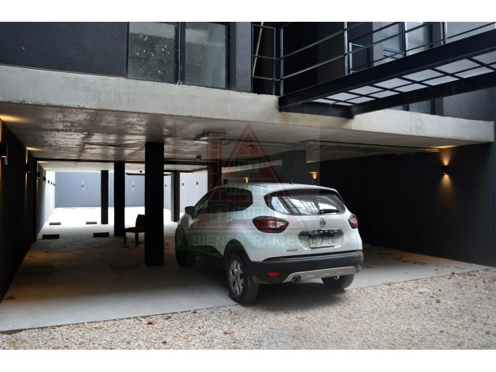 Квартира из двух комнат в Barrio Las Carreras de San Isidro. Окна выходят на улицу: на плане указана типология «в frente» с тремя комнатами и типология «в contrafrente» с двумя комнатами. Расстояние до Av. Centenario — несколько метров, до Márquez — 100 m, до Estación de Tren San Isidro (Línea Mitre) — 200 m. Здание высотой 3 этажа, 9 квартир и 13 (закреплённых) парковочных мест, предусмотрены балконы; отделка включает бетон, дерево и чёрное железо.