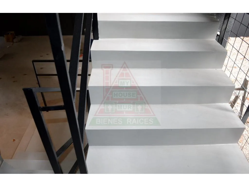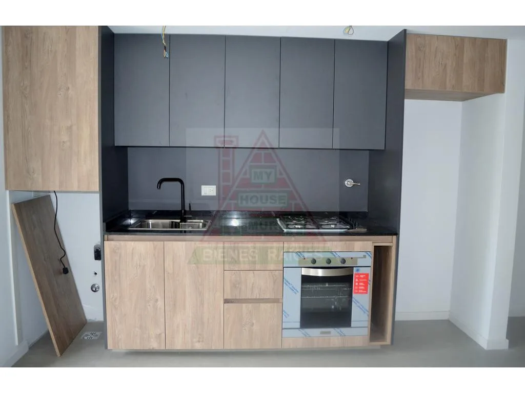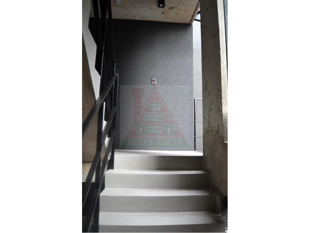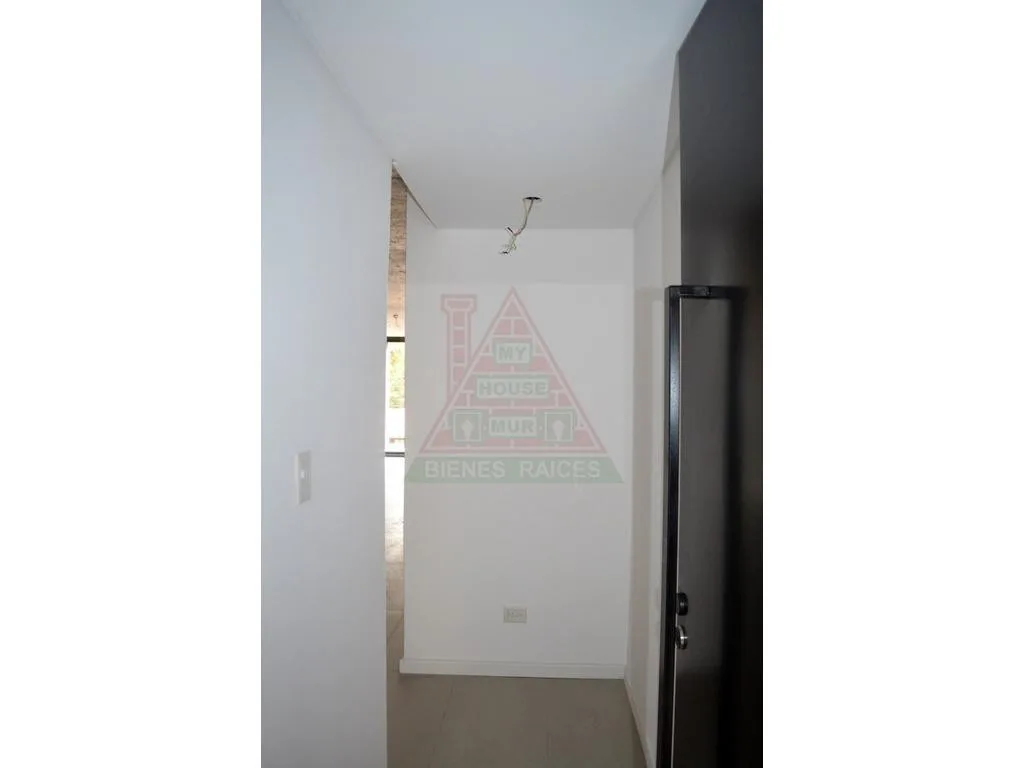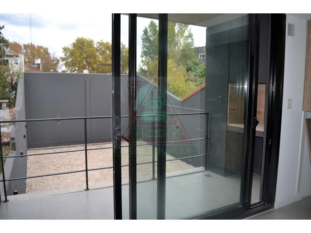 Квартира из двух комнат в Barrio Las Carreras de San Isidro. Окна выходят на улицу: на плане указана типология «в frente» с тремя комнатами и типология «в contrafrente» с двумя комнатами. Расстояние до Av. Centenario — несколько метров, до Márquez — 100 m, до Estación de Tren San Isidro (Línea Mitre) — 200 m. Здание высотой 3 этажа, 9 квартир и 13 (закреплённых) парковочных мест, предусмотрены балконы; отделка включает бетон, дерево и чёрное железо.