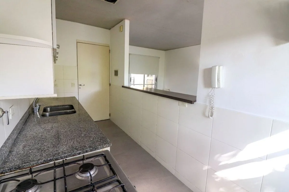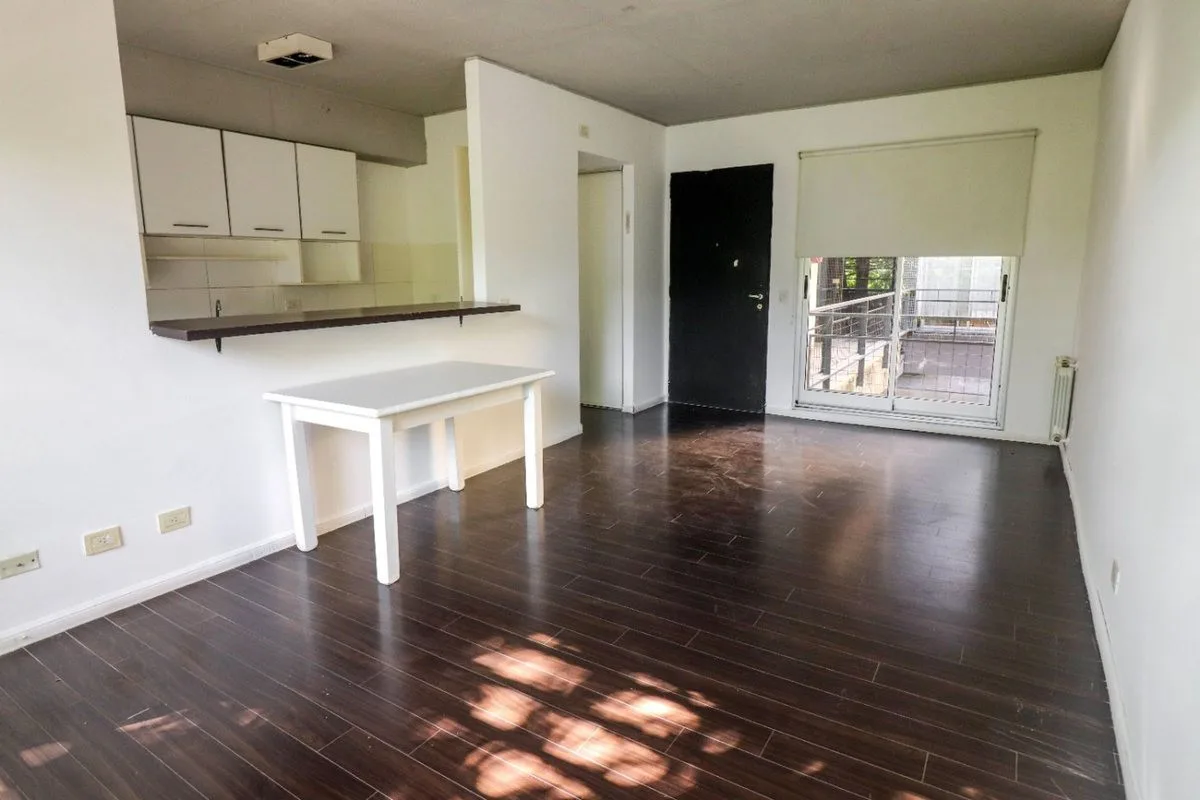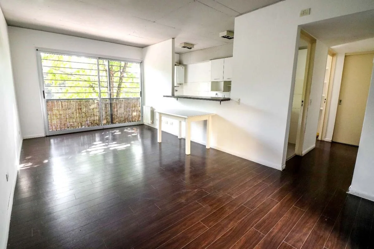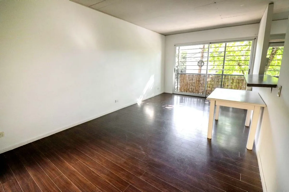 Квартира в San Isidro площадью 57 m² (53 m² крытых), 1-й этаж, окна во двор не указаны. Западная ориентация, 2010 года постройки. Окна выходят на улицу; в гостиной-столовой двухсторонняя вентиляция. Кухня полуинтегрирована с барной стойкой, есть место для стиральной машины. Спальня с встроенным шкафом от пола до потолка, с выходом на балкон; в спальне установлен сплит-кондиционер. Полный санузел с ванной, отопление радиаторами от индивидуального котла. Закреплённое (закрытое) парковочное место с