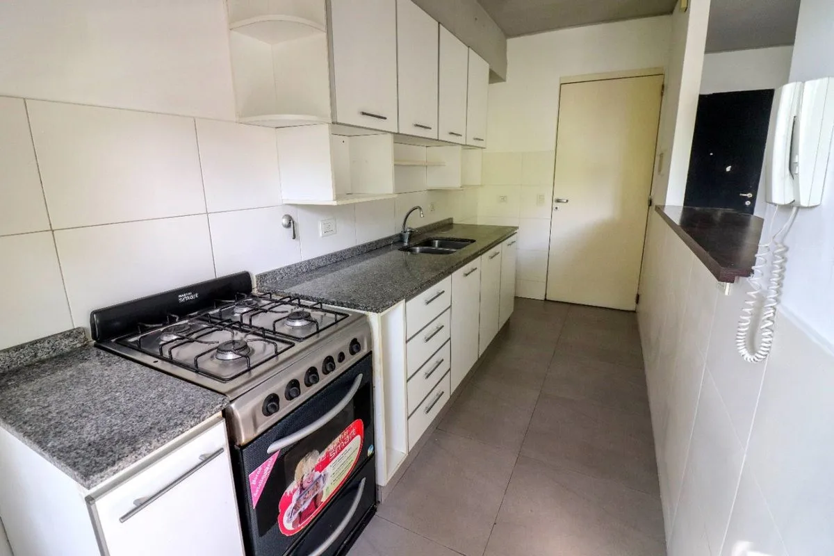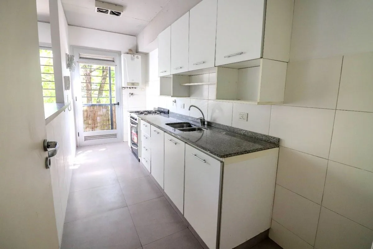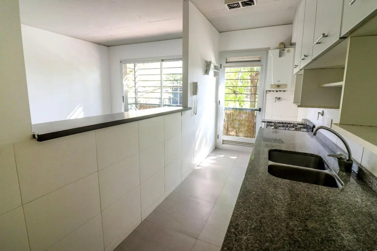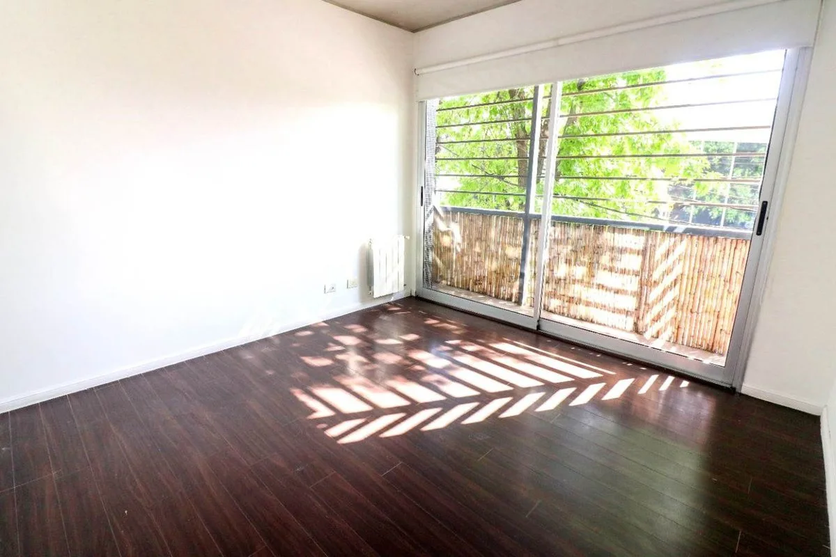 Квартира в San Isidro площадью 57 m² (53 m² крытых), 1-й этаж, окна во двор не указаны. Западная ориентация, 2010 года постройки. Окна выходят на улицу; в гостиной-столовой двухсторонняя вентиляция. Кухня полуинтегрирована с барной стойкой, есть место для стиральной машины. Спальня с встроенным шкафом от пола до потолка, с выходом на балкон; в спальне установлен сплит-кондиционер. Полный санузел с ванной, отопление радиаторами от индивидуального котла. Закреплённое (закрытое) парковочное место с