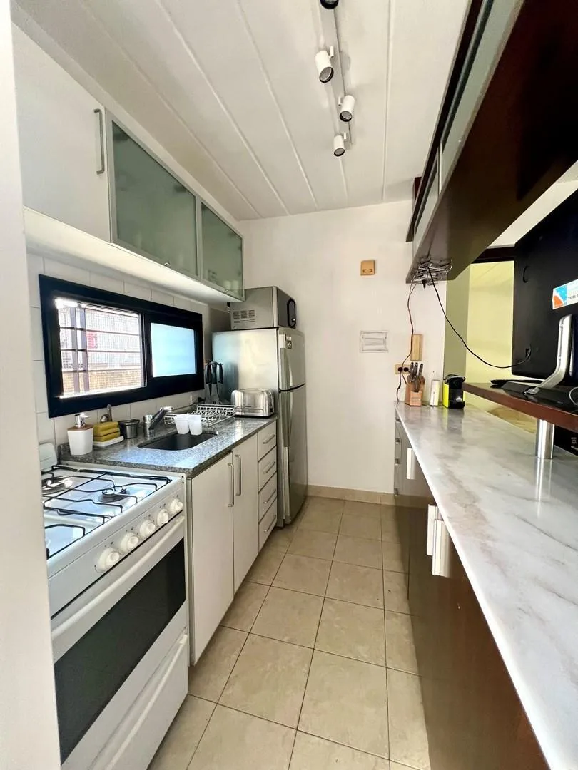 Квартира в районе La Calabria в San Isidro. В планировке 1 спальня с гардеробом, окнами и кондиционером. В стоимость аренды не указаны коммунальные платежи; expensas составляют около 100.000 ARS. Есть кухня с барной стойкой и окном, совмещённая гостиная-столовая с естественным светом, отдельная небольшая ниша с дверью для котла и подключения для стиральной машины, полноценная ванная с ванной и душевой перегородкой. Имеется независимая терраса и (закреплённое) парковочное место, также указаны кон