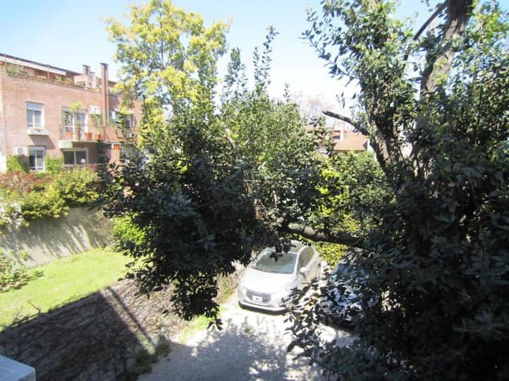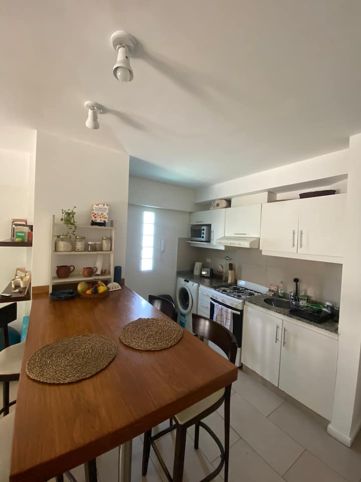 Квартира из 2 комнат площадью, с мебелью, с 1 спальней в центре San Isidro. Окна во двор, вид на зелёные пространства. В гостиной-столовой установлен кондиционер, есть диван-кровать. В спальне встроенный шкаф, кухня оборудована, есть стиральная машина; установлены телевизор и Wi‑Fi. В стоимость входит (закреплённое) парковочное место, в здании есть SUM с зоной гриля и место для сушки белья на открытом воздухе. Минимальный срок аренды 1 месяц, доступность для января и февраля, даты согласуются.