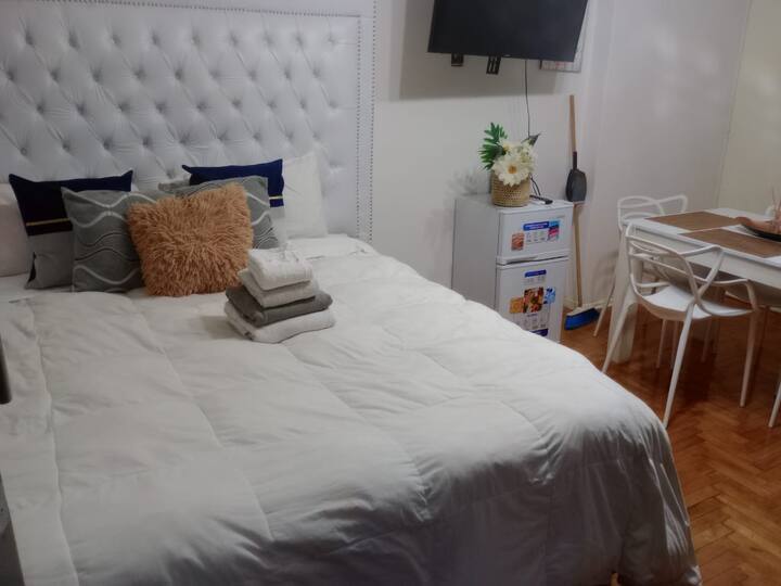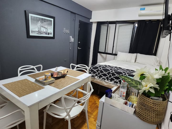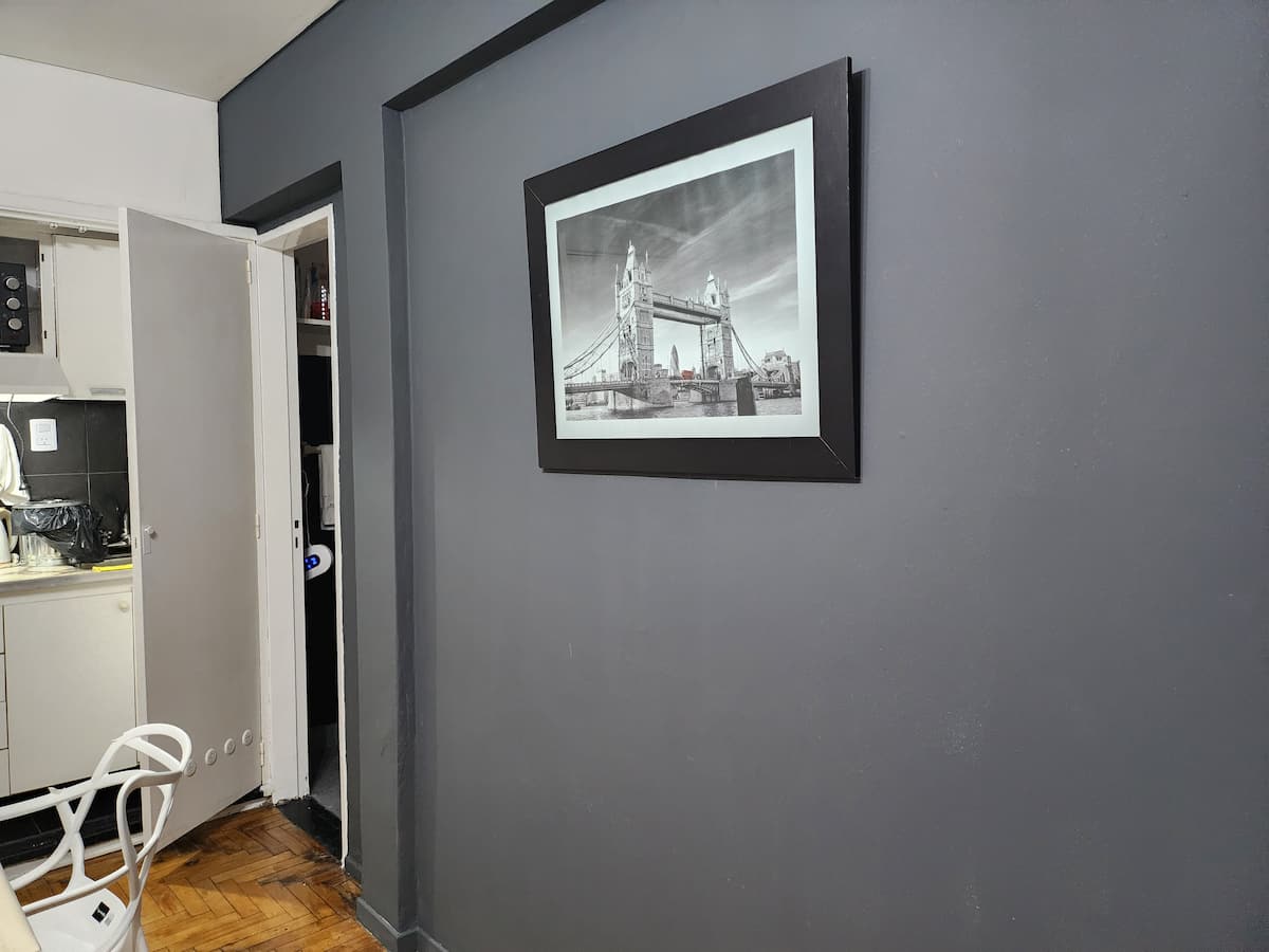 Квартира-студия The Gray Wall Studio находится в центре Buenos Aires, в полублоке от Av. Callao. Здания с окнами на площадь не указаны. Апартаменты оборудованы двуспальной кроватью (queen-size sommier), холодильником и кухней с необходимой техникой. Точка отсчёта: Obelisk в 700 метрах, Teatro Colón в 600 метрах. Estación Callao (линии D и B) — в 200 метрах.