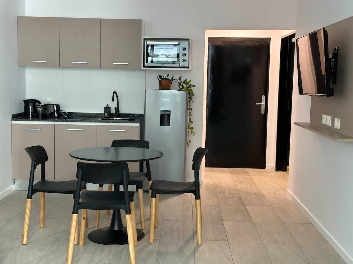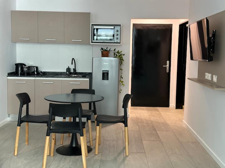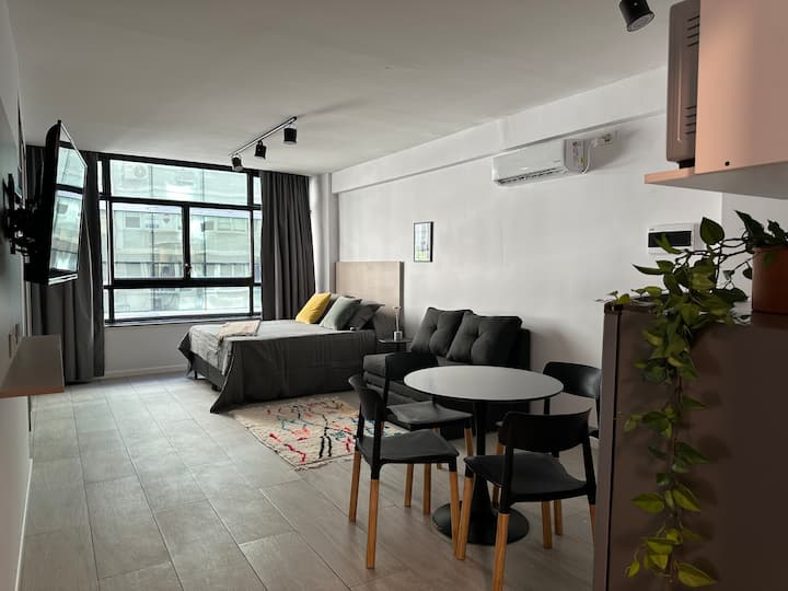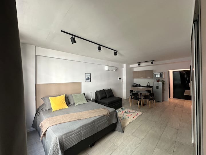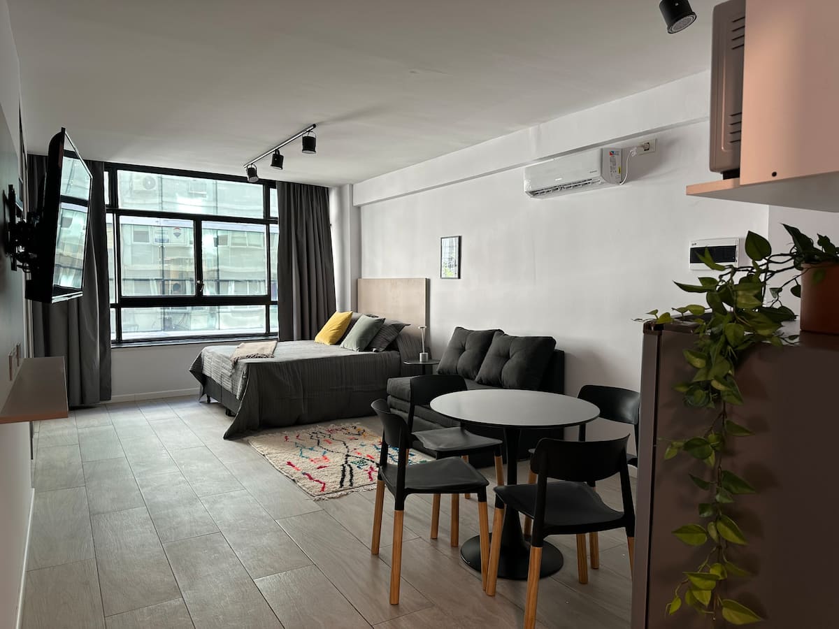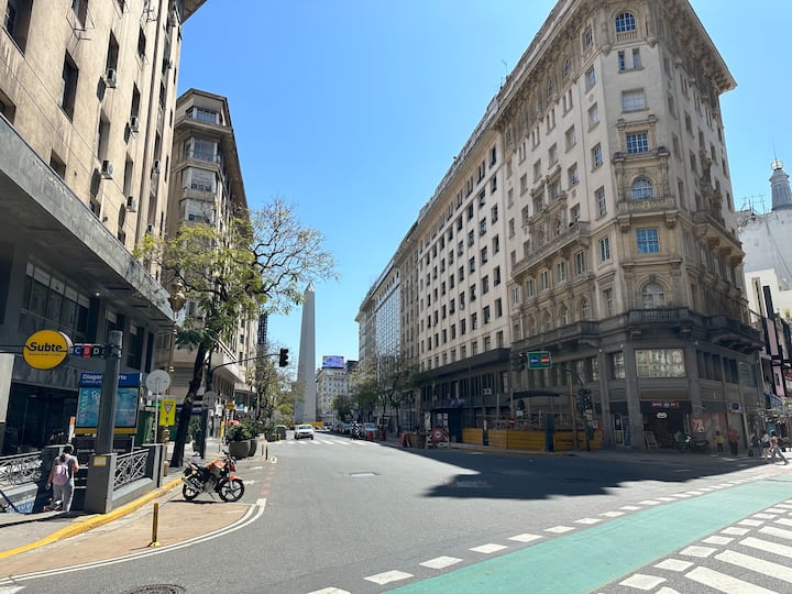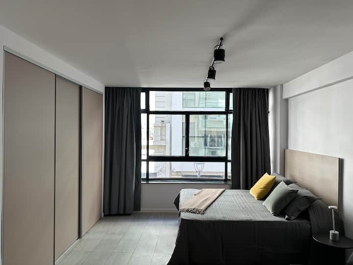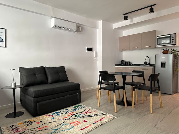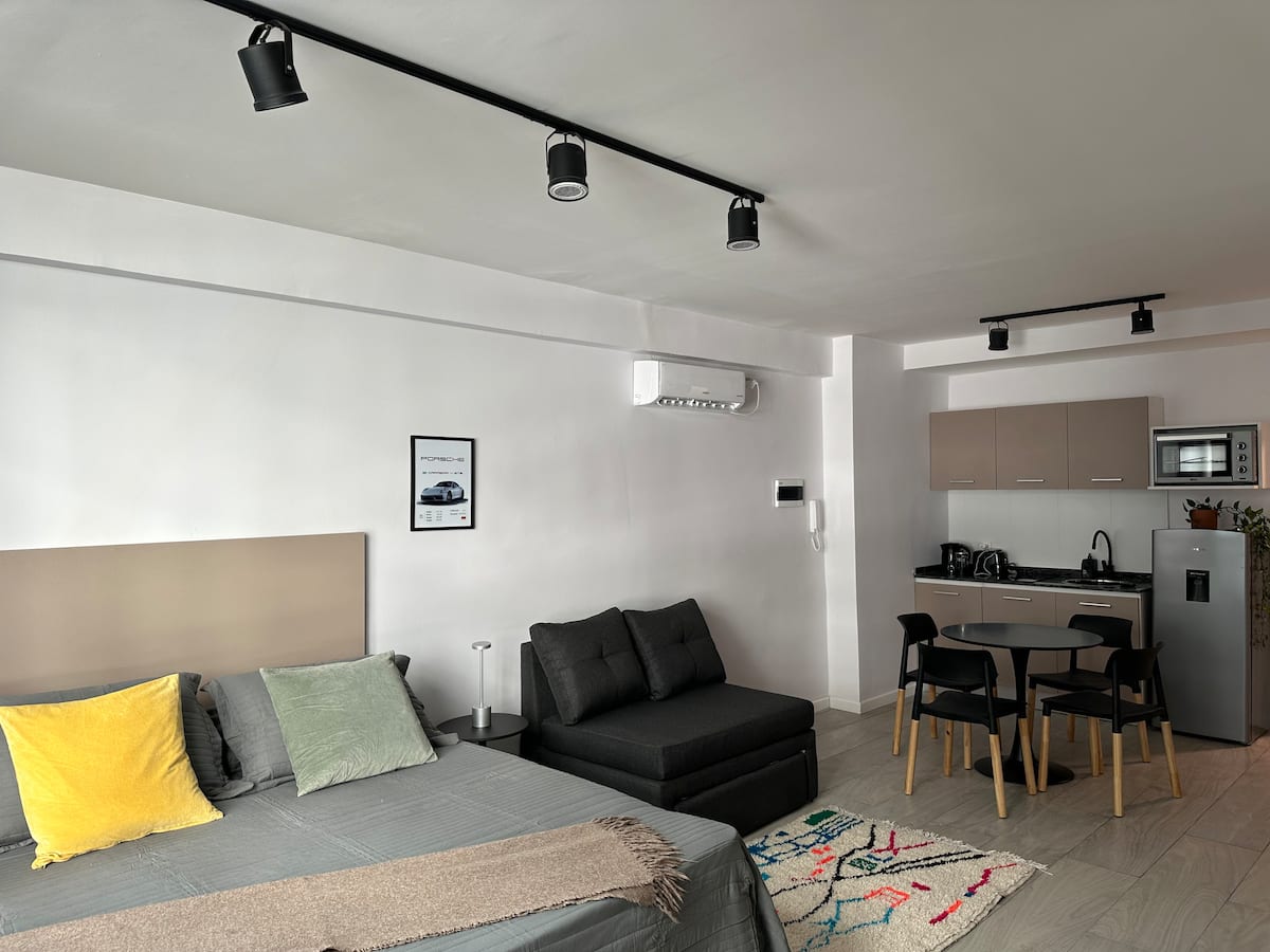 Новая квартира с мебелью и 1 спальней в San Nicolás. В квартире установлены кондиционер, Smart TV, Wi‑Fi. Предусмотрены двуспальная кровать и диван-кровать. Расположение заявлено в центре: 2 минуты от Obelisco и близко к Plaza de Mayo, San Telmo и Puerto Madero. Доступ к квартире описан как полностью автономный.