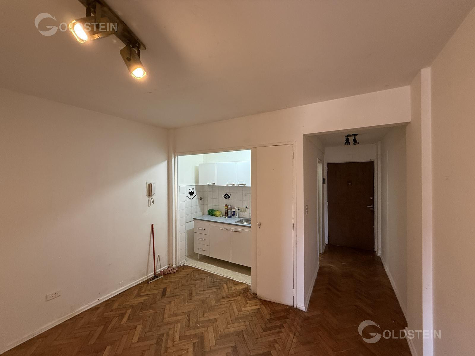 Квартира в San Nicolás с разделением пространства спереди, окна на улицу. Указана высокая освещённость. В квартире нет газа. Расположение: Avda. Corrientes 1600, между Montevideo y Paraná, рядом с линией Subte B и остановками colectivos, а также с торговыми точками в районе Obelisco.