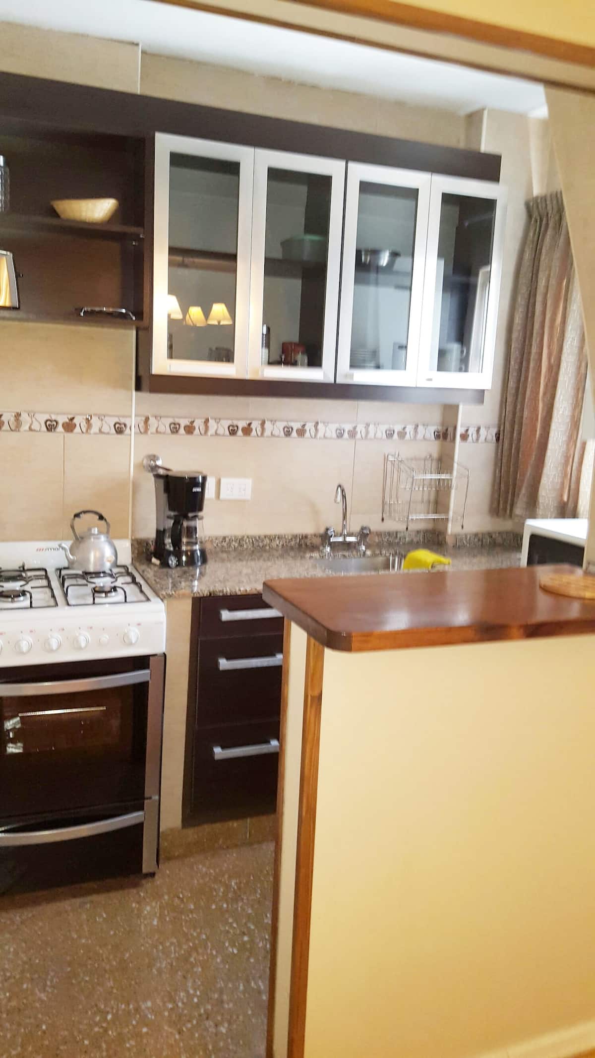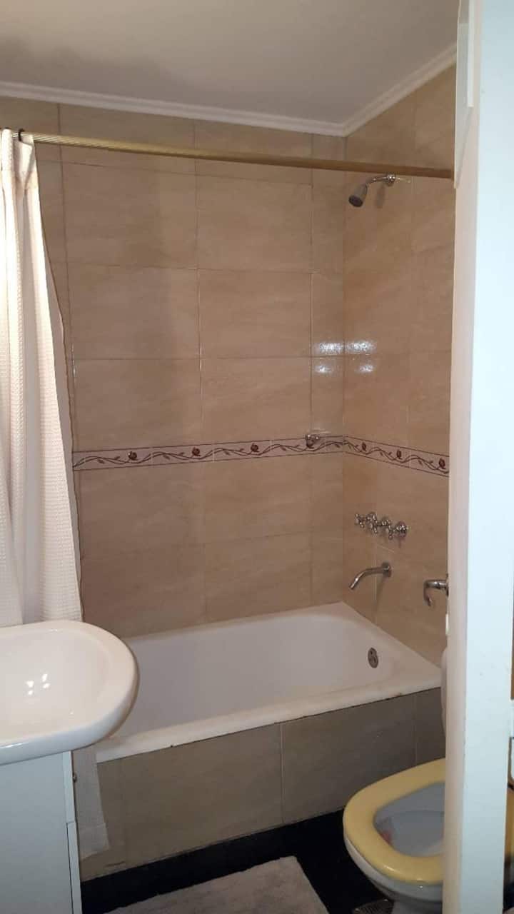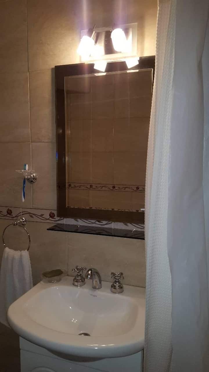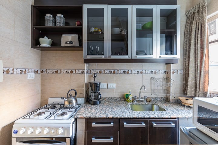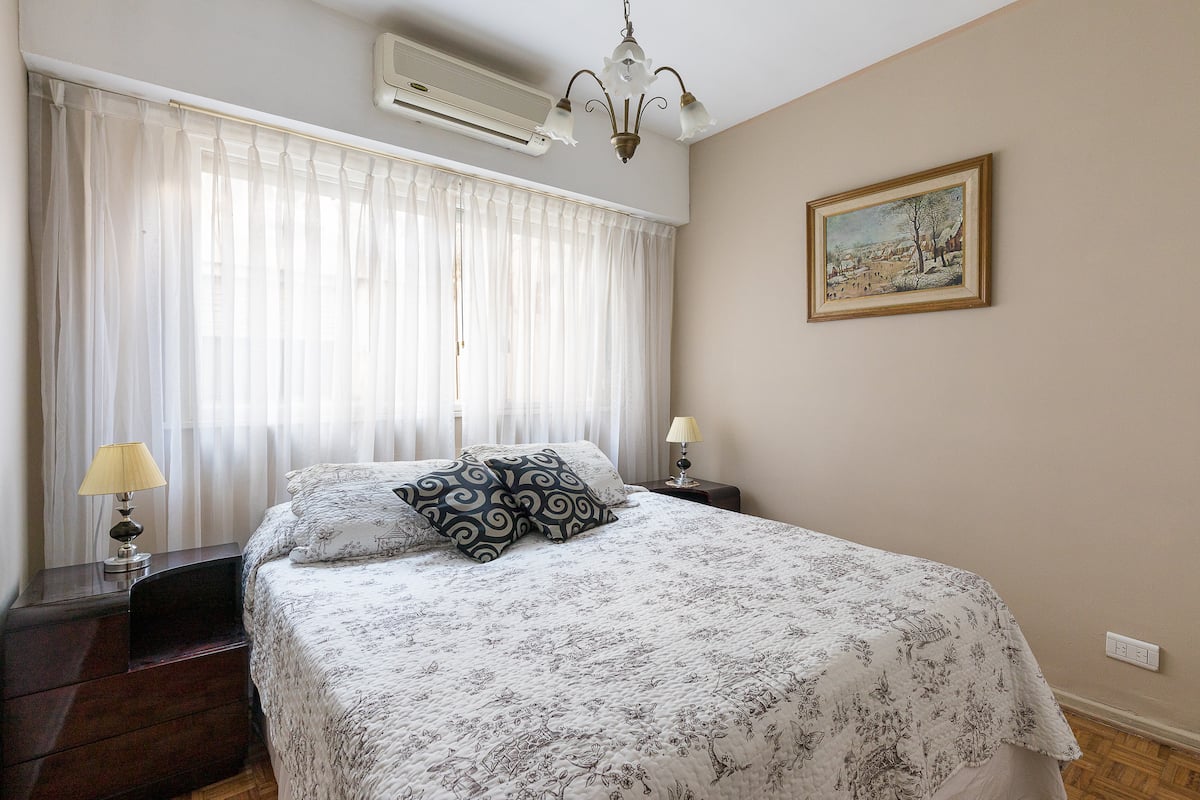 Квартира в San Nicolás с 1 спальней, гостиной-столовой и отдельной кухней-ванной. Планировка рассчитана на 4 спальных места: двуспальная кровать в спальне, раскладная детская/дополнительная кровать (с возможностью раздельной установки на 2 места) и двуспальный диван 1,50 m в гостиной. Есть кондиционирование холод/тепло в двух помещениях, кабельное телевидение и Wi‑Fi. В кухне-ванной предусмотрена бытовая техника и посуда. В здании 2 лифта; камер видеонаблюдения внутри квартиры нет.