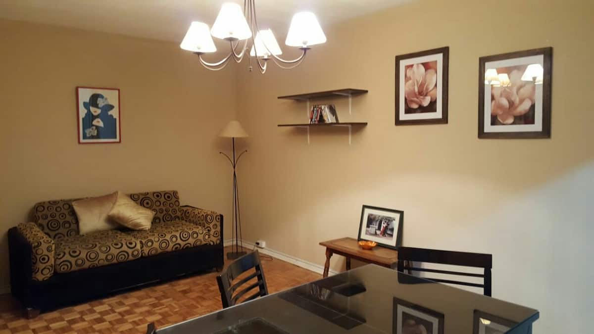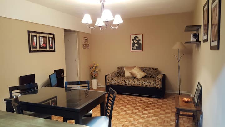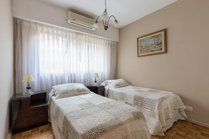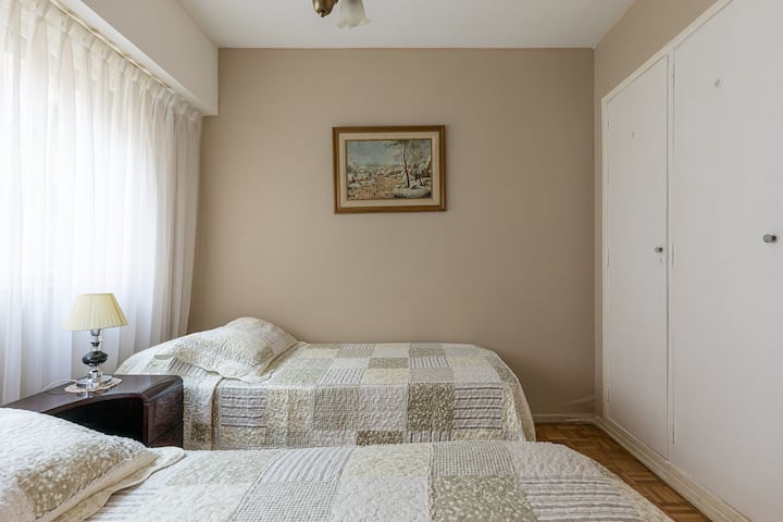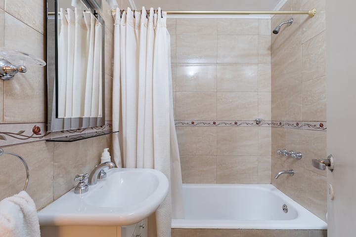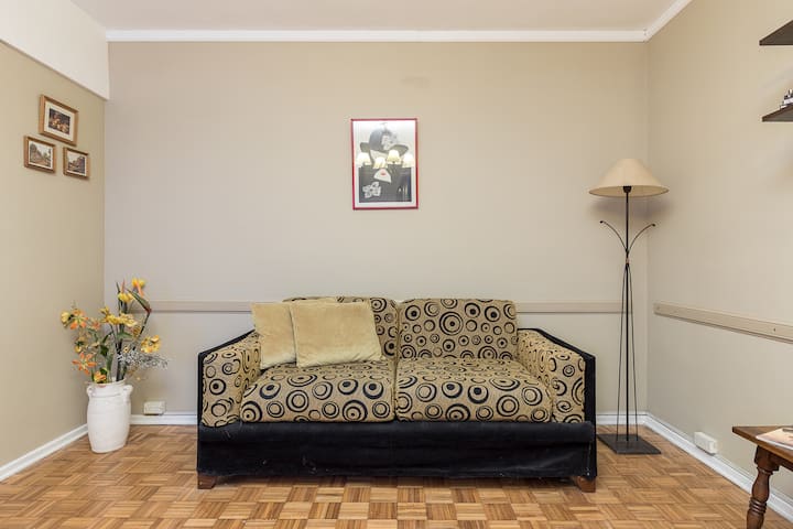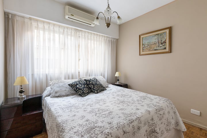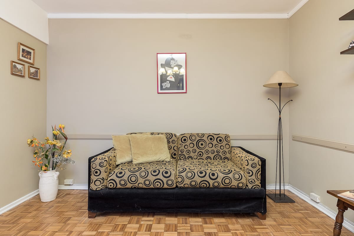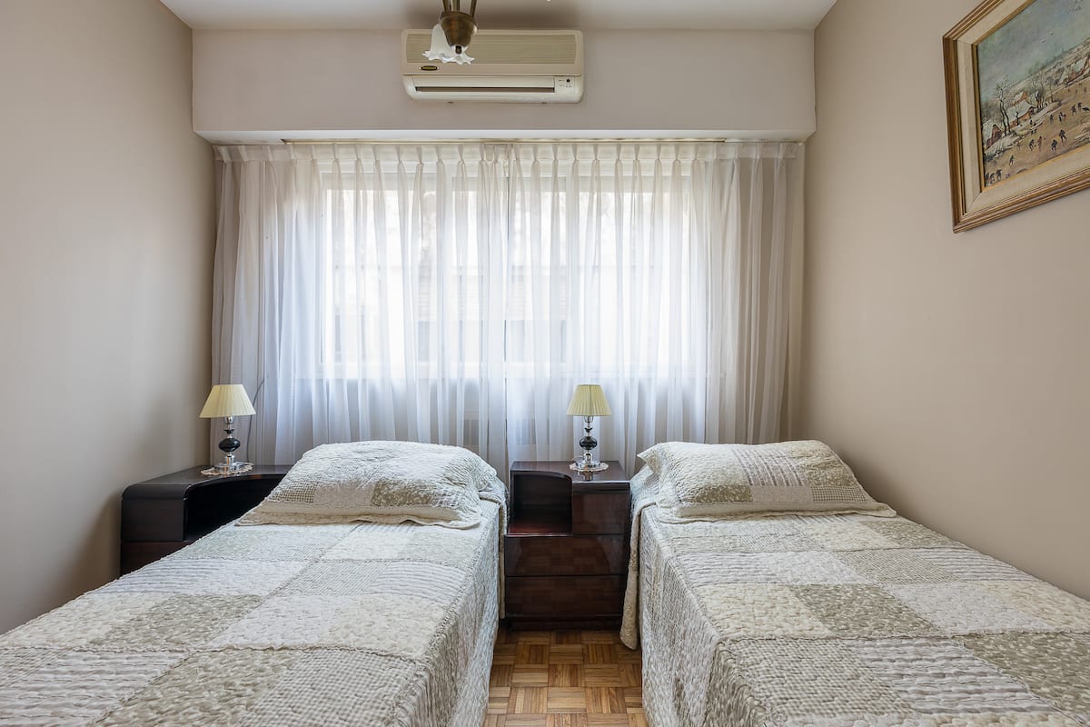 Квартира в San Nicolás с 1 спальней, гостиной-столовой и отдельной кухней-ванной. Планировка рассчитана на 4 спальных места: двуспальная кровать в спальне, раскладная детская/дополнительная кровать (с возможностью раздельной установки на 2 места) и двуспальный диван 1,50 m в гостиной. Есть кондиционирование холод/тепло в двух помещениях, кабельное телевидение и Wi‑Fi. В кухне-ванной предусмотрена бытовая техника и посуда. В здании 2 лифта; камер видеонаблюдения внутри квартиры нет.