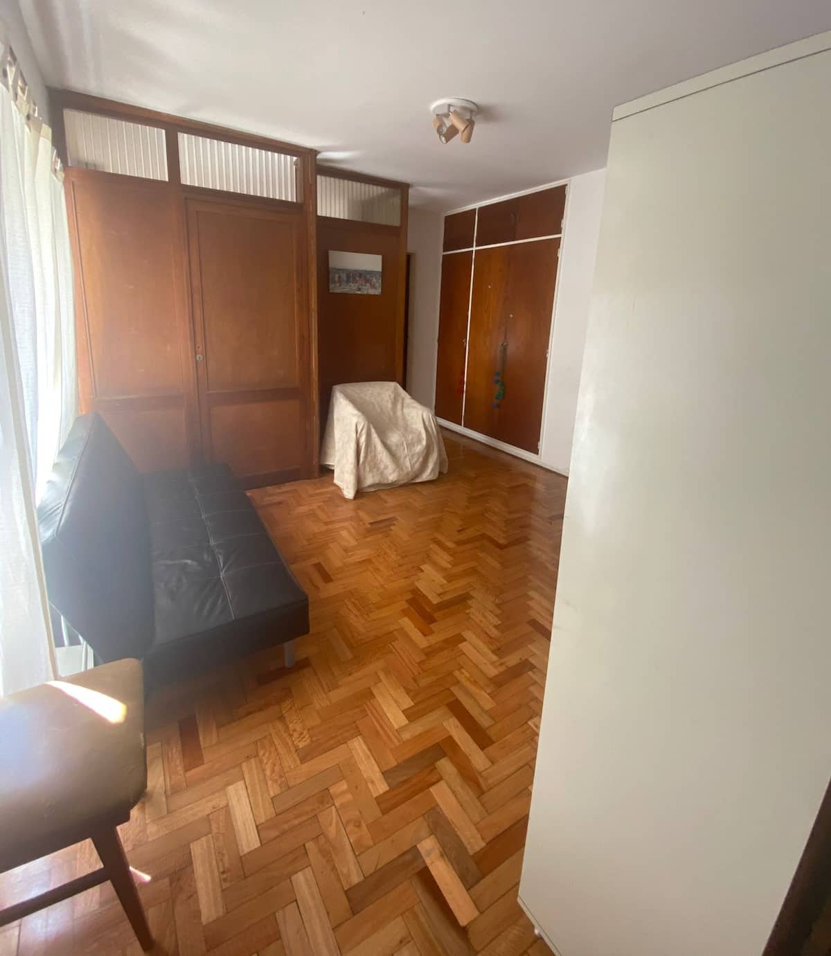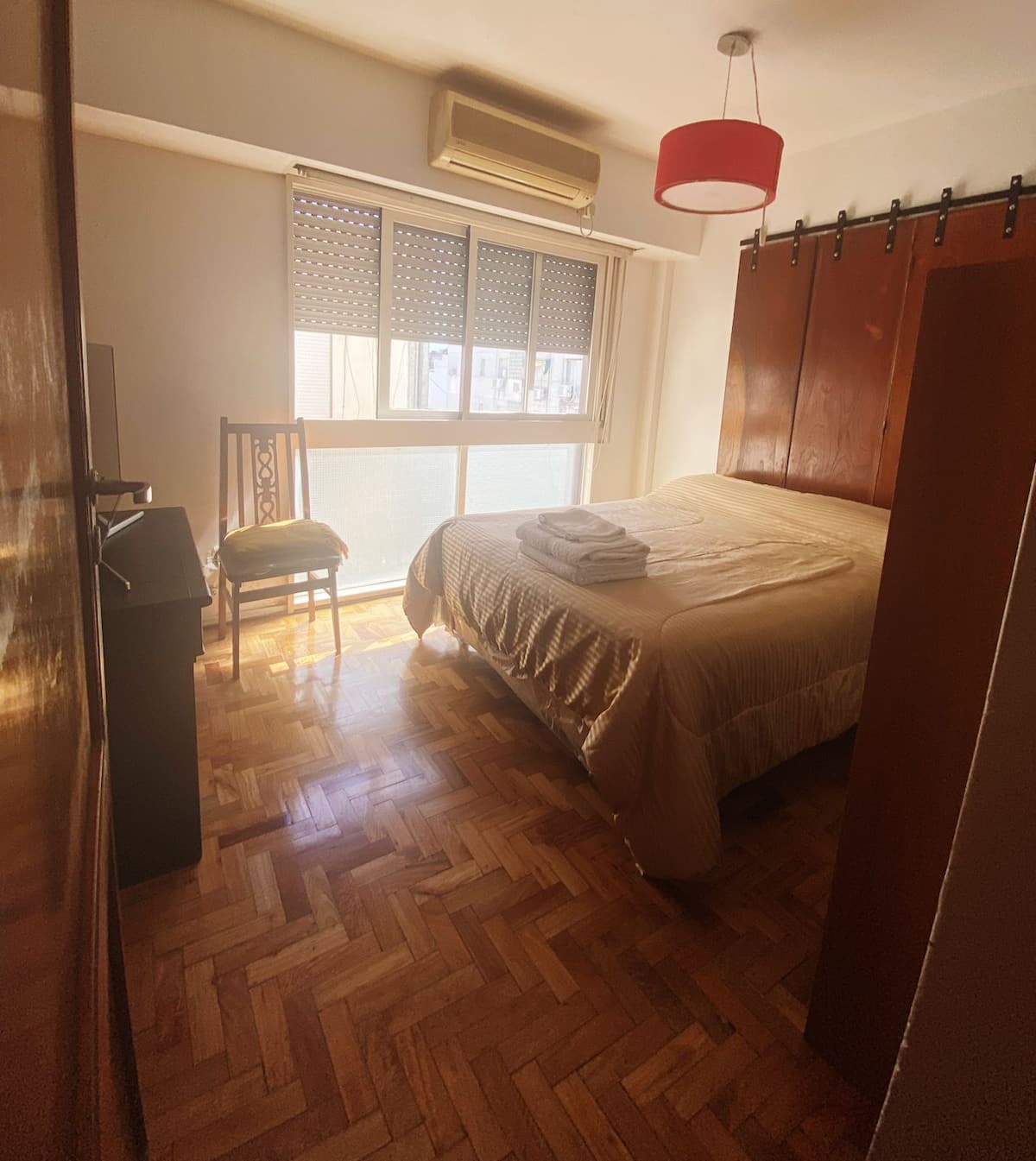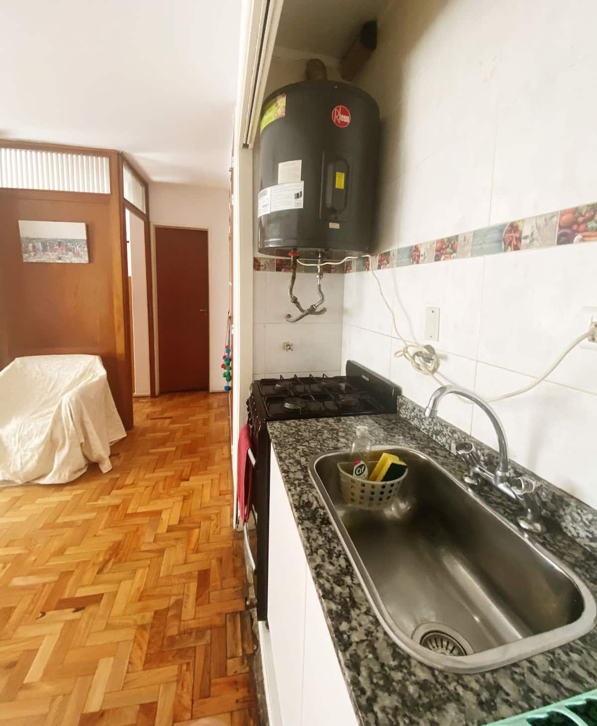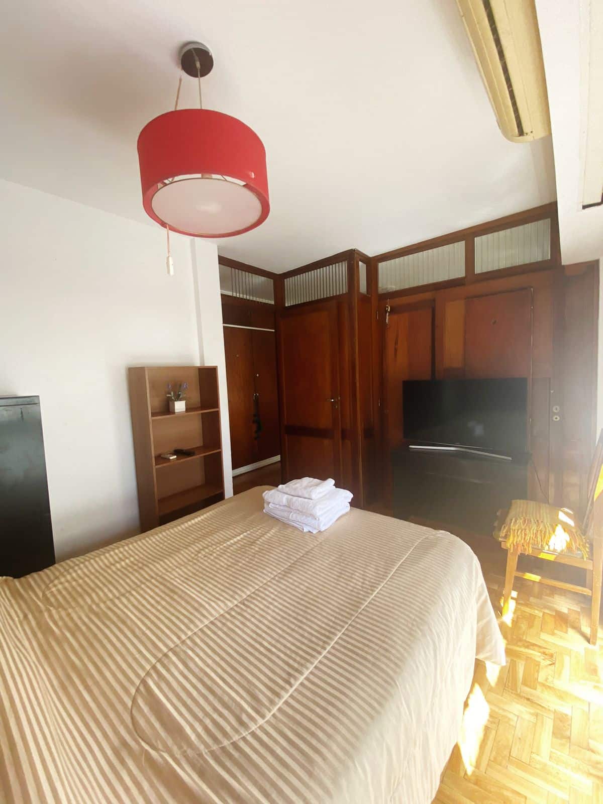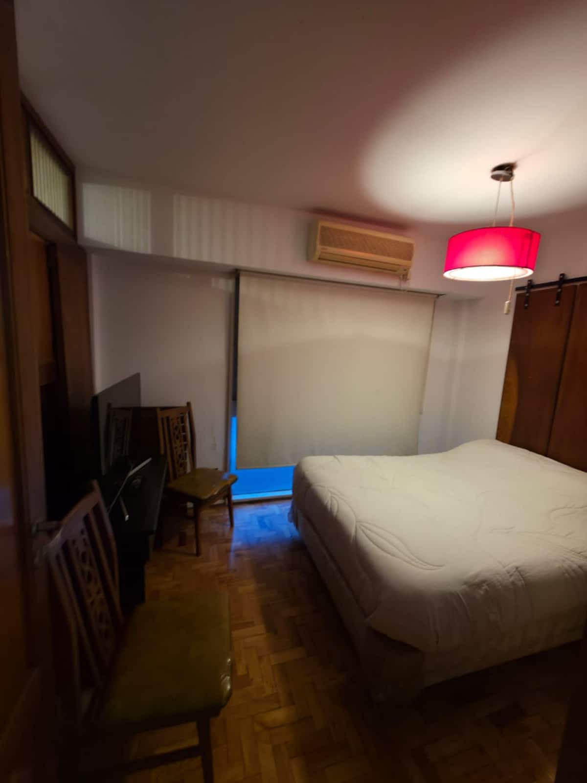 Квартира-студия с 1 спальней и кухней-«китченет» площадью 1,5 комнаты в San Nicolás, 3 квартала от Obelisco и театра Teatro Colón. Расположена на Av. Corrientes, рядом с входом станции метро Uruguay (линия B). В кухне-«китченет» есть микроволновая печь, холодильник и чайник. В ванной с ванной установлена двуспальная кровать и раскладной диван-кровать (трёхсекционный).