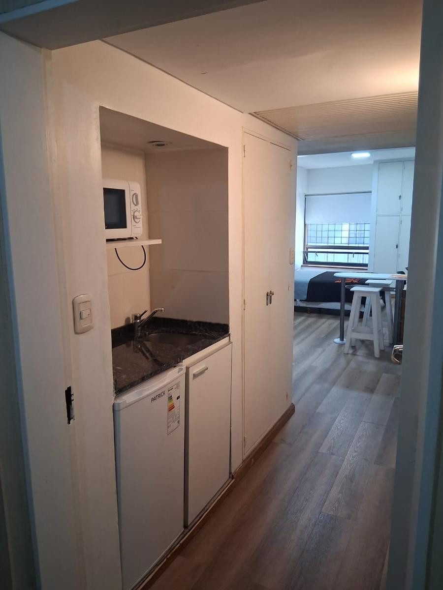 Квартира-студия площадью 22 m² в Hotel Las Naciones в San Nicolás. Меблирована, окна выходят на Av. Corrientes и Esmeralda, с ванной и кухонным уголком. В зоне спальни размещены двуспальная кровать, кровать шириной 1 место, письменный стол и телевизор. Работает охрана 24 часа.