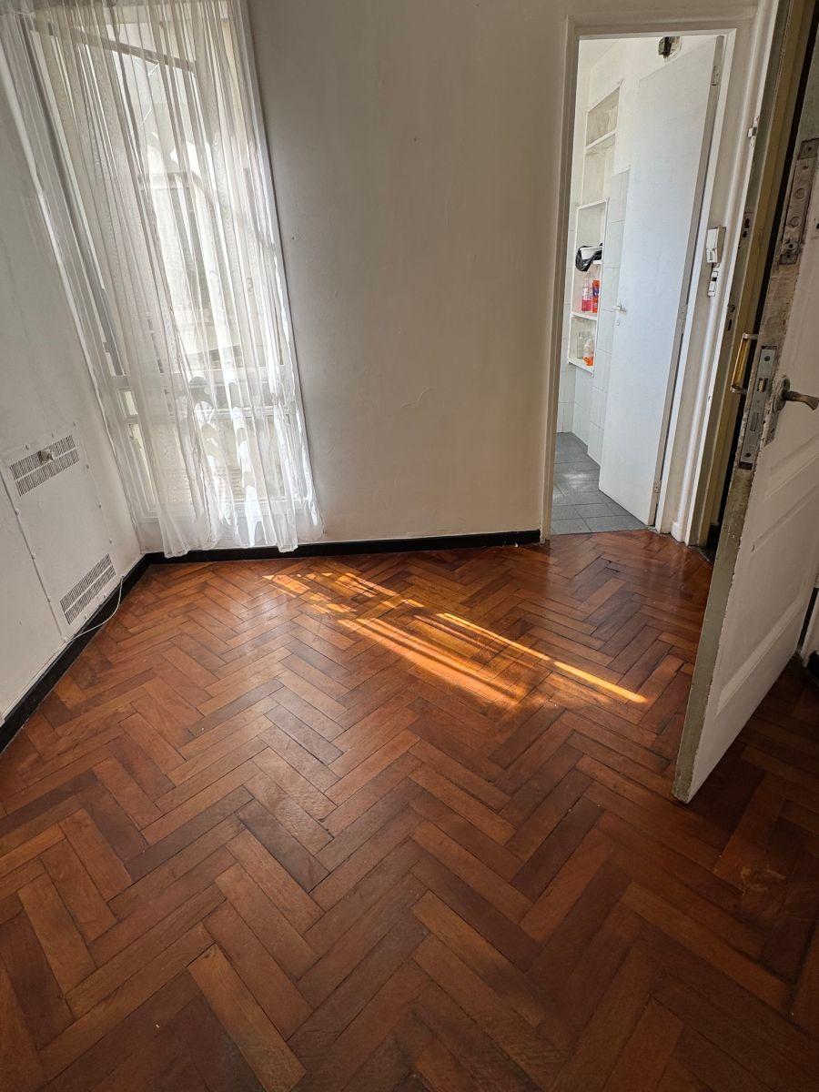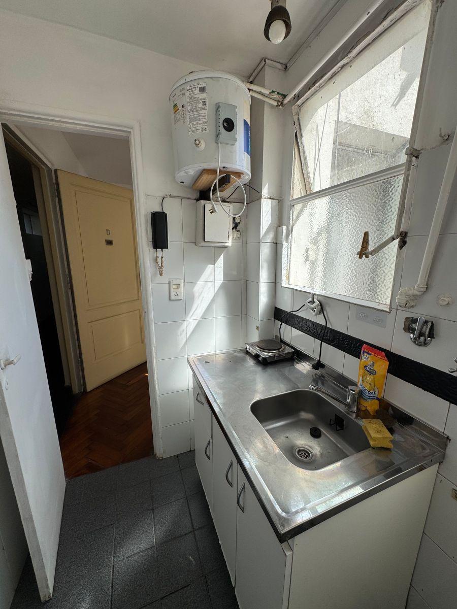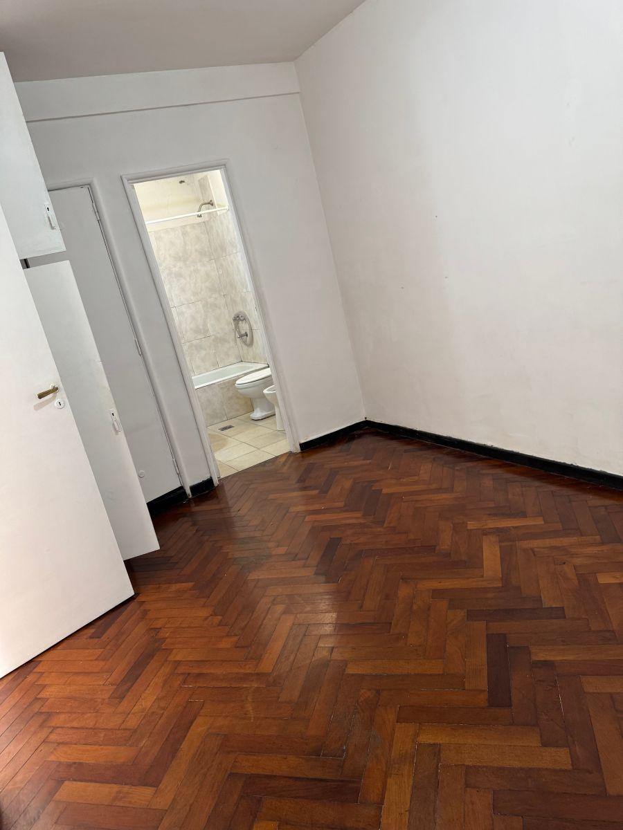 Квартира в San Nicolás в формате 2 ambientes, 1 спальня. 7-й этаж, окна во двор (contrafrente). В квартире гостиная-столовая, спальня со встроенным шкафом, ванная комната. Кухня и бытовые услуги полностью электрические. В здании есть лифт. Квартплата: $500.000 + коммунальные платежи здания (около $80.000). Квартира передаётся после побелки в белый цвет; на фото показан общий характер оформления.