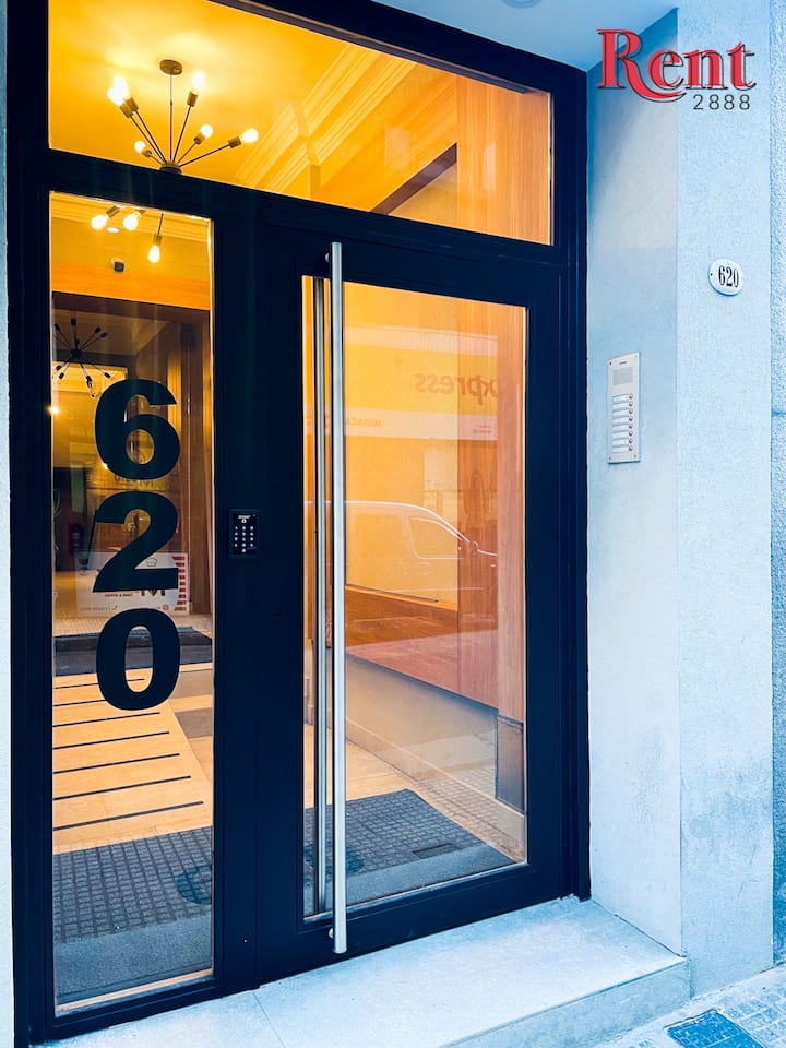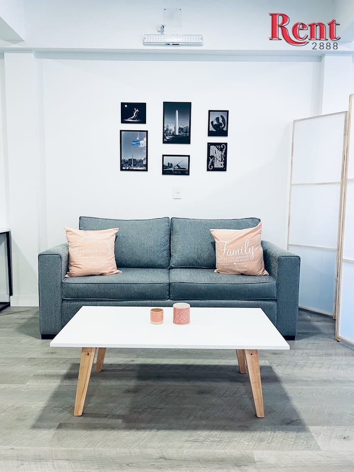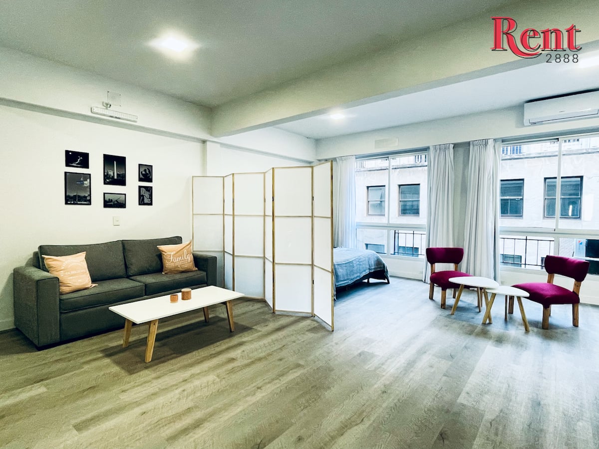 Квартира-студия в районе San Nicolás. В помещении установлены двуспальная кровать и диван-кровать, предусмотрен обеденный стол со стульями. Имеется кондиционер (тепло/холод), smart TV. Кухня с электрической плитой и духовкой, микроволновой печью, электрическим чайником и тостером. В ванной душ и биде. В пешей доступности Plaza de Mayo, Galerías Pacífico и Calle Florida.