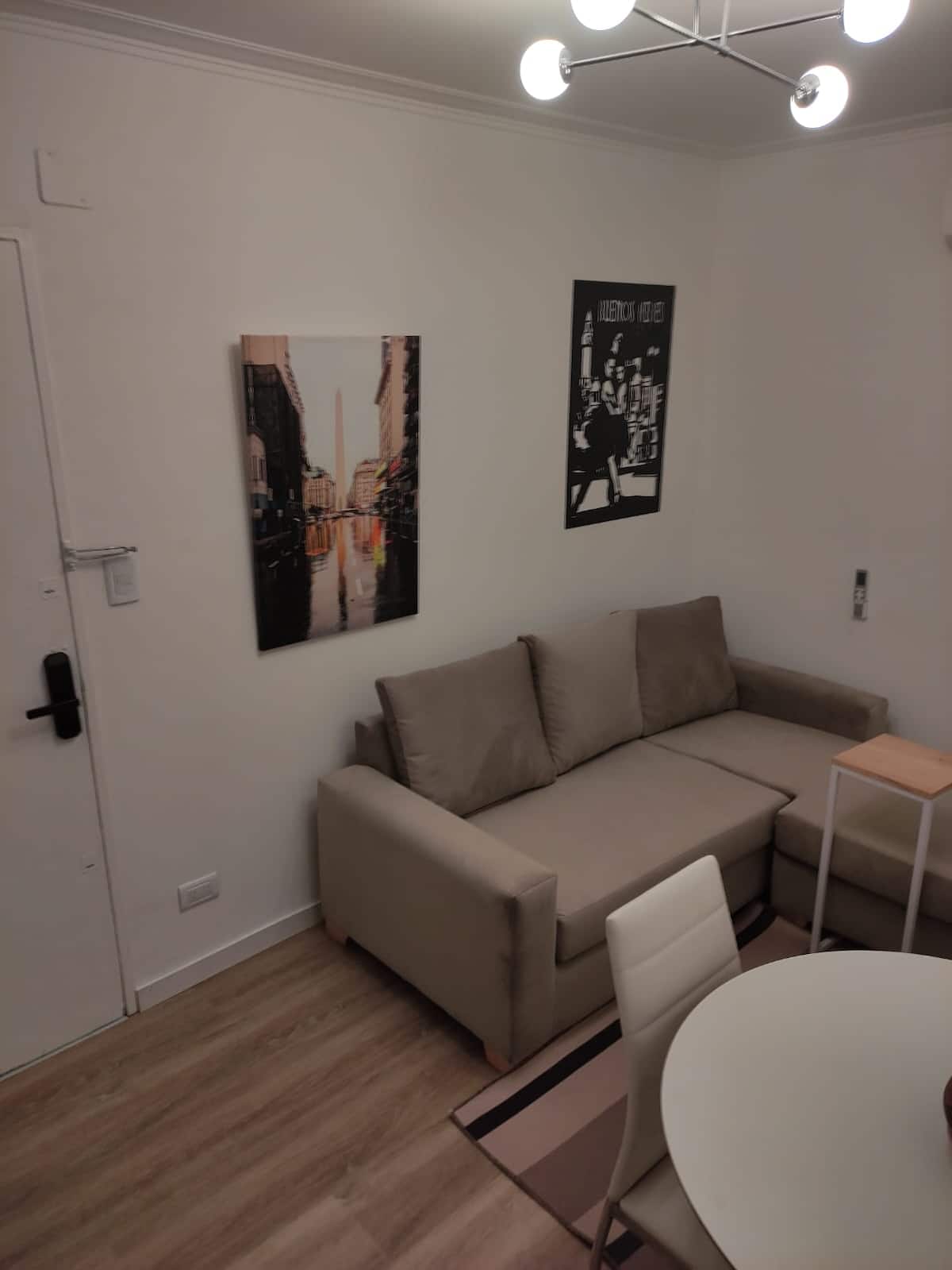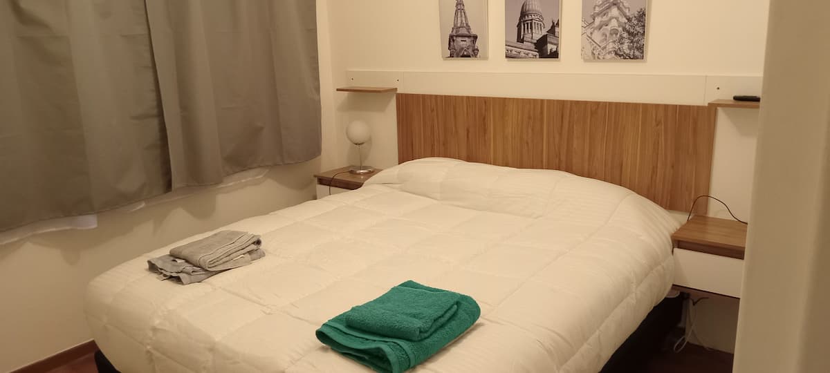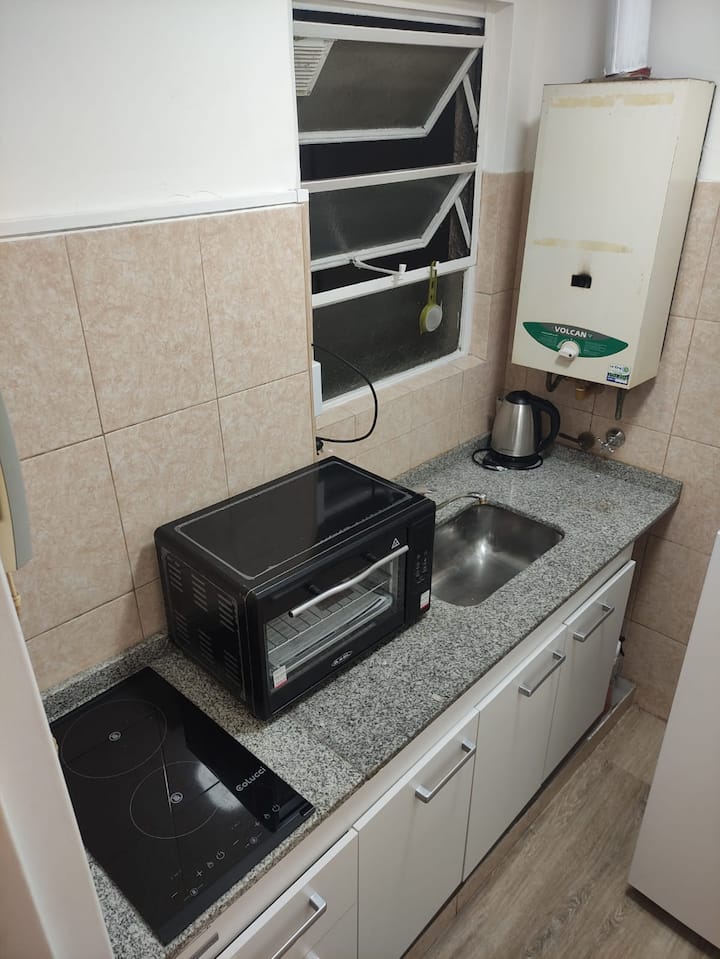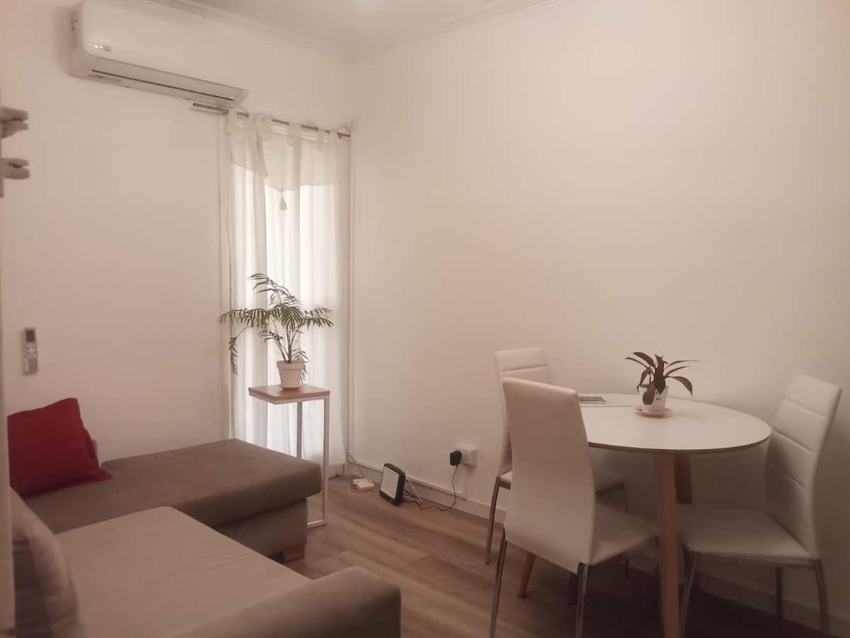 Квартира в San Nicolás с 2 комнатами и 1 спальней, предоставляется с мебелью. В спальне двуспальная кровать (queen size), Smart TV, дополнительный обогреватель, шторы blackout и настольные лампы. На кухне холодильник с морозильной камерой, электрическая духовка, керамическая плита, кофеварка, электрочайник, тостер и полный набор посуды. В ванной есть ванна и поручень безопасности; в гостиной L-образный диван, стол для еды или работы, стулья, шкаф для хранения и Wi‑Fi. Есть детская кроватка по за