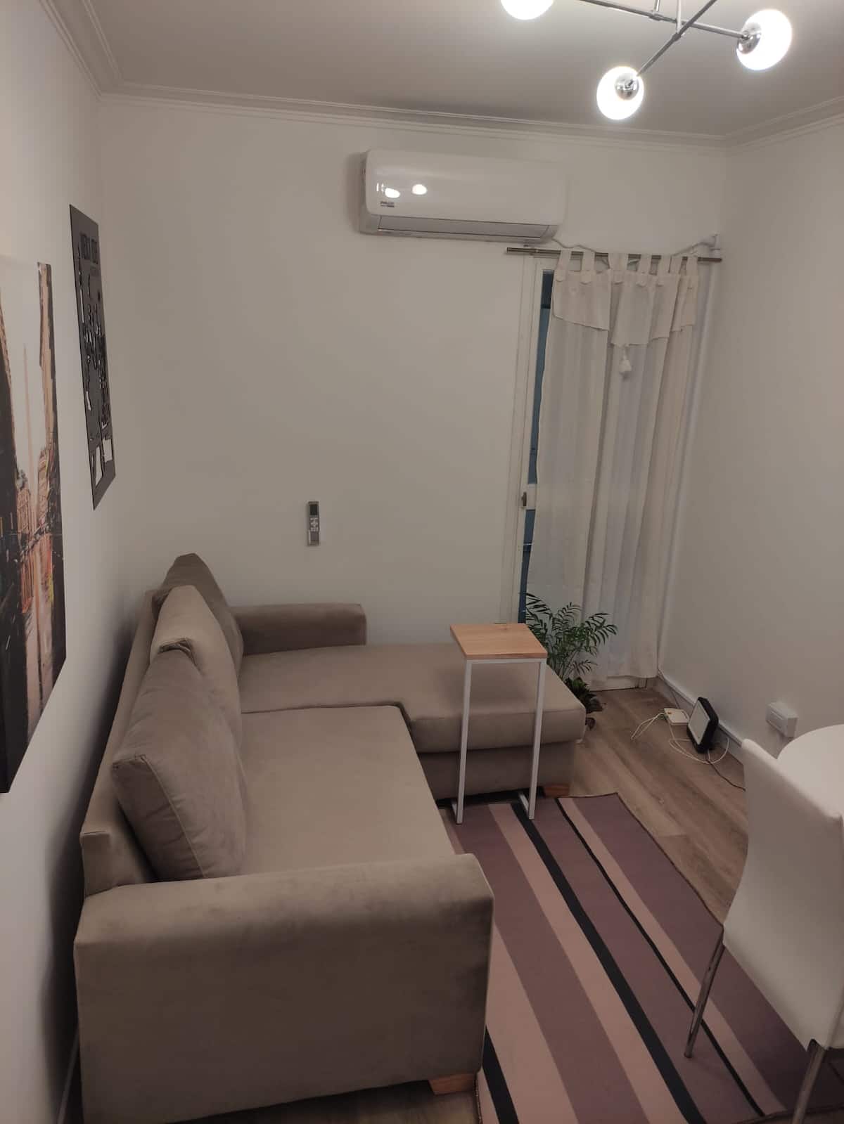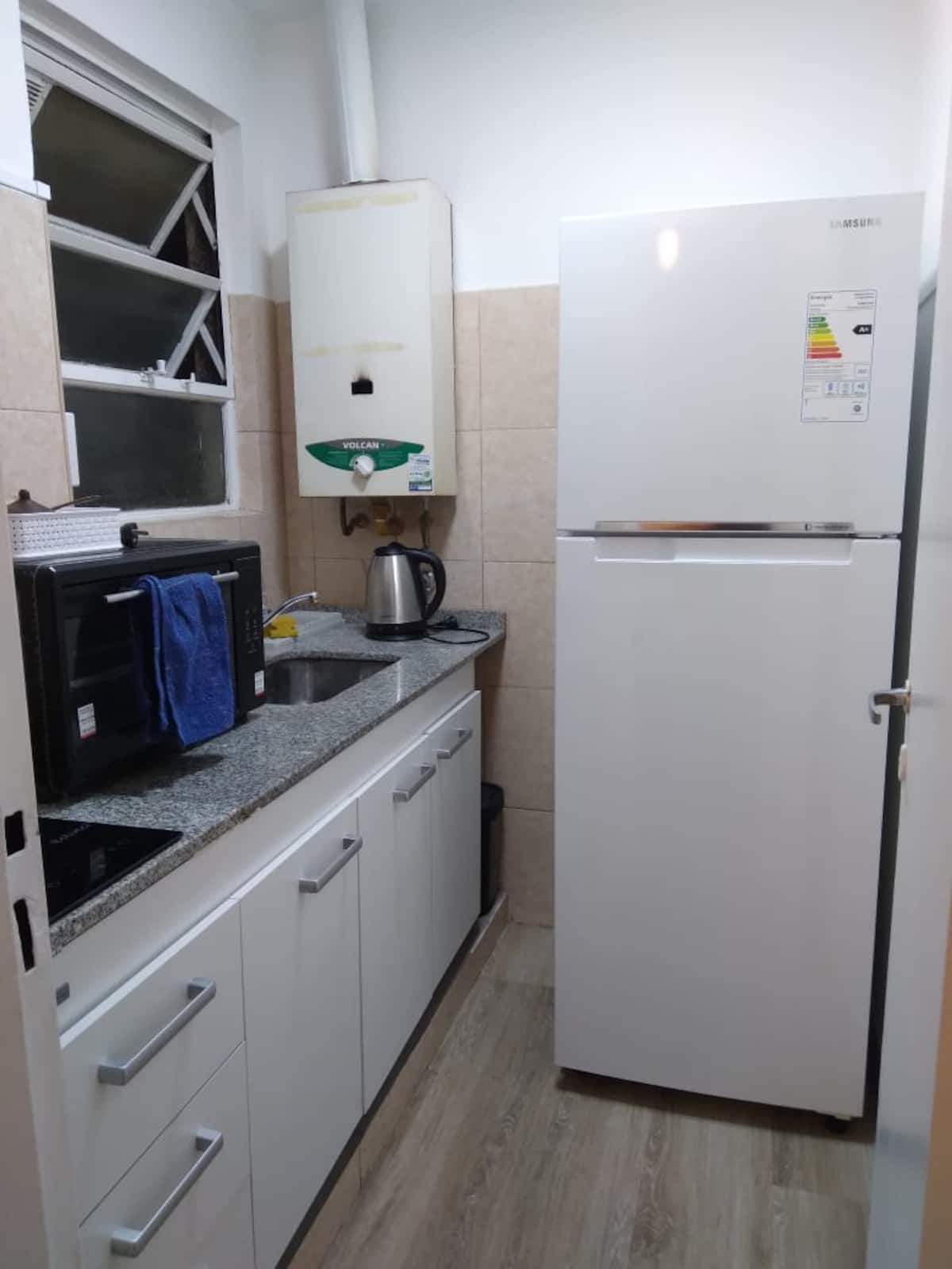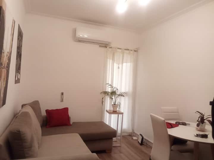 Квартира в San Nicolás с 2 комнатами и 1 спальней, предоставляется с мебелью. В спальне двуспальная кровать (queen size), Smart TV, дополнительный обогреватель, шторы blackout и настольные лампы. На кухне холодильник с морозильной камерой, электрическая духовка, керамическая плита, кофеварка, электрочайник, тостер и полный набор посуды. В ванной есть ванна и поручень безопасности; в гостиной L-образный диван, стол для еды или работы, стулья, шкаф для хранения и Wi‑Fi. Есть детская кроватка по за