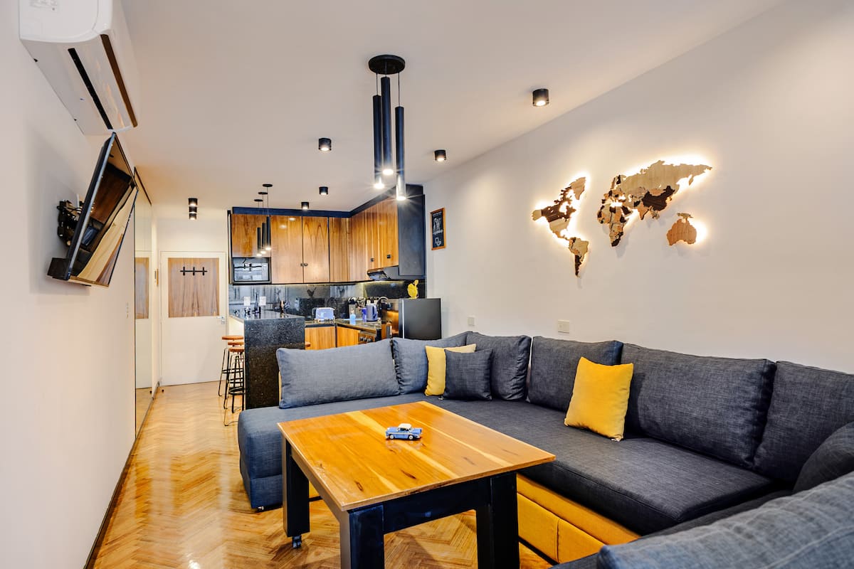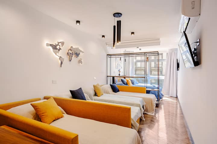 Квартира расположена в San Nicolás, в центре района. В одном здании предусмотрен комплекс из 4 одинаковых квартир, которые можно комбинировать в зависимости от доступности. Расстояния: 50 метров до пешеходной улицы Florida, 100 метров до Lavalle, 200 метров до Av. Corrientes, 500 метров до Obelisk и 200 метров до Galerías Pacífico.