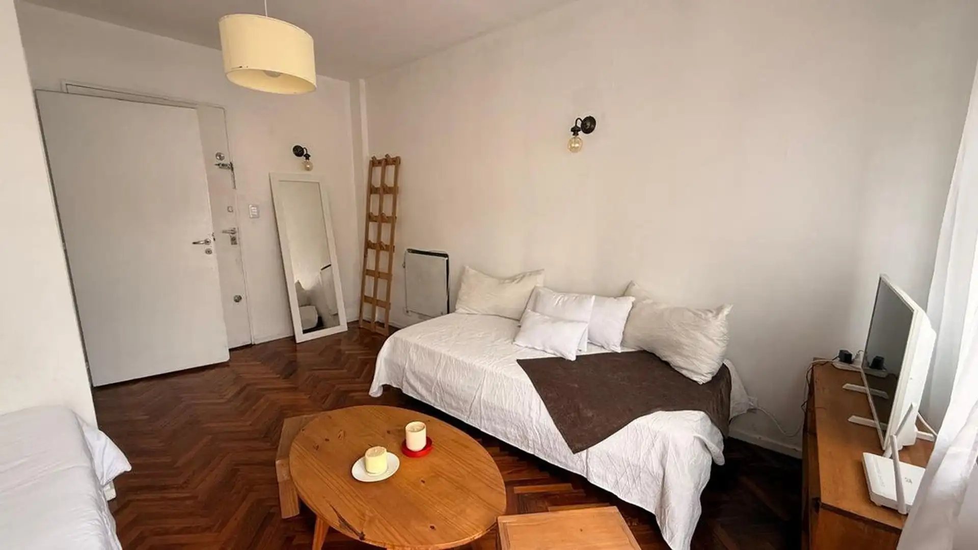 Квартира 2 ambientes с 1/2 комнатой в Balvanera, окна на улицу по адресу Viamonte. Полностью или частично с мебелью по выбору арендатора. В квартире установлен полный санузел, паркетные полы, балкон на фасадном направлении на высоком этаже.