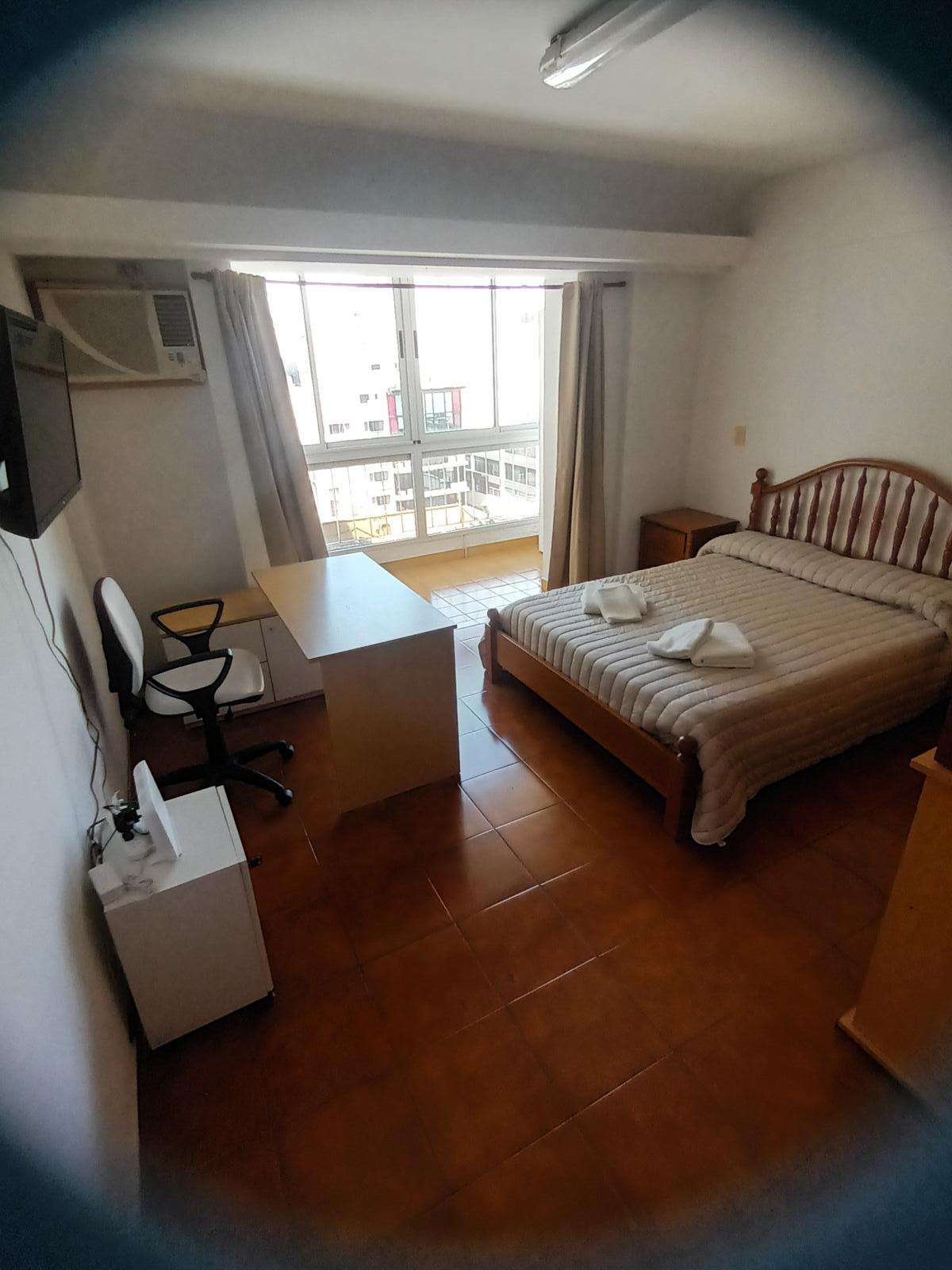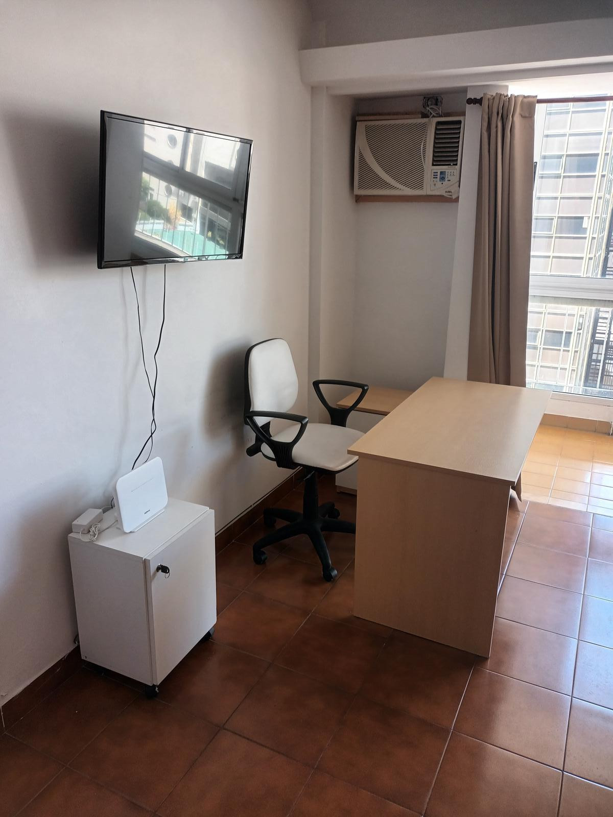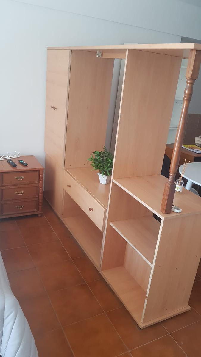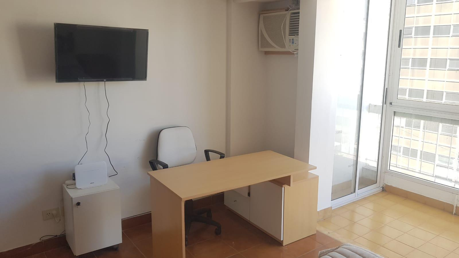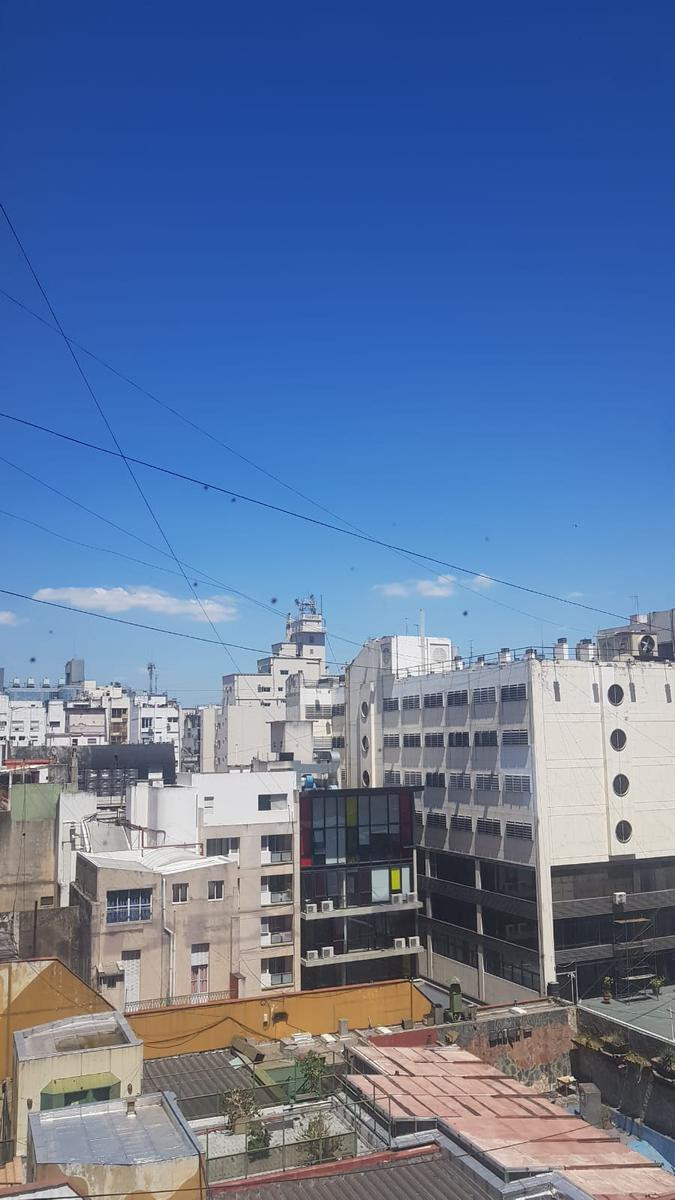 Квартира-студия площадью 34 m² в San Nicolás, после ремонта (a estrenar), с застеклённым балконом. Квартира меблирована, с керамическими полами, кондиционером и видом через большое окно. В комнате есть телевизор 32", модульная книжная полка, стол и система хранения, обеденный стол и 2 стула. Кухня оснащена нижними шкафами и холодильником. Спальня с двуспальной кроватью и тумбой. В ванной комнате установлена душевая кабина. Коммунальные платежи здания, ABL, AYSA и Wi-Fi оплачиваются собственником