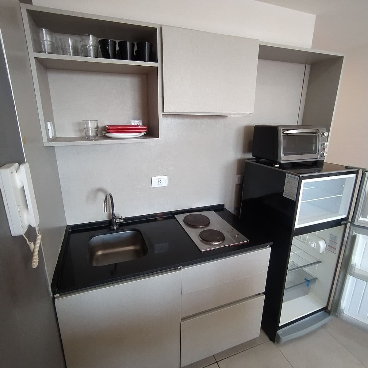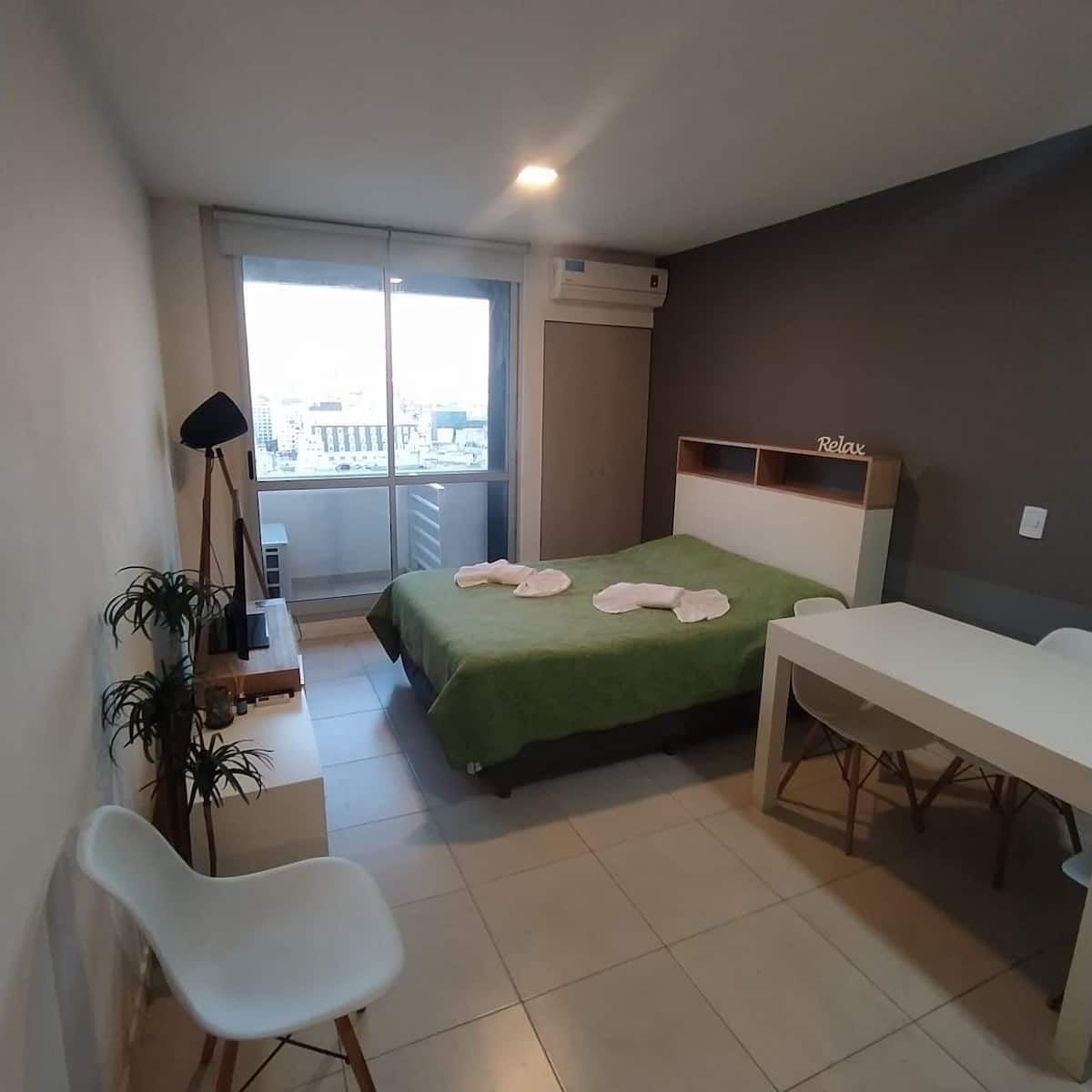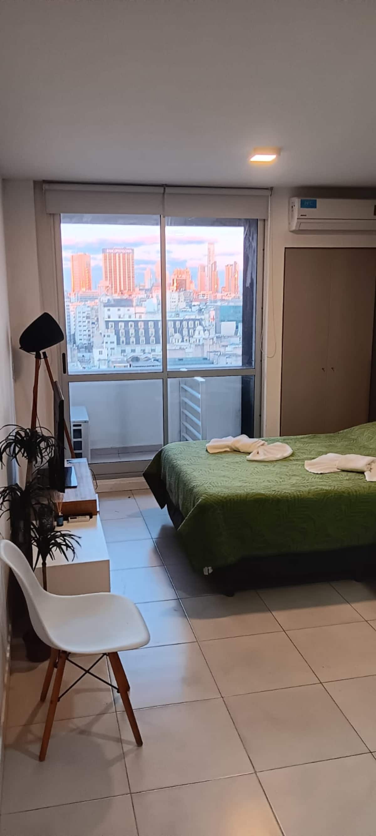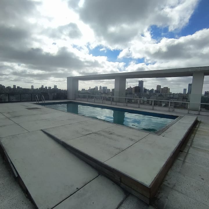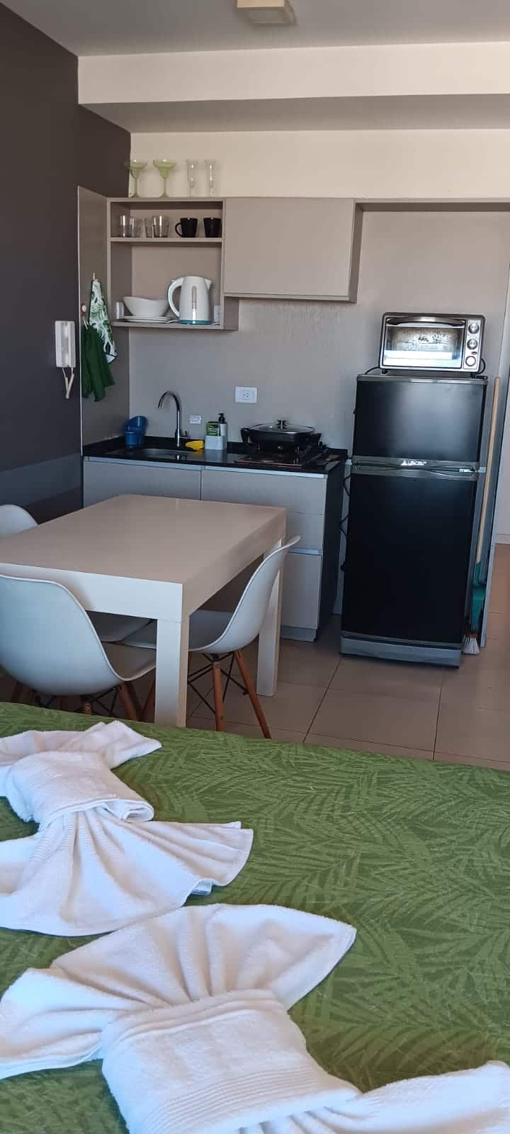 Квартира в современном здании в San Nicolás. В планировке 1 спальня, двуспальная кровать, телевизор с кабельными каналами, модем Wi‑Fi, шкаф и обеденный стол с стульями. Кухня с бойлером, холодильником, базовой посудой, чайником, сковородой и электрической духовкой; под столешницей электрическая плита не работает, вместо неё предусмотрена электрическая сковорода для готовки. Ванная комната в личном пользовании с ванной, полотенцами, феном, шампунем, кондиционером и туалетным мылом; биде не работ