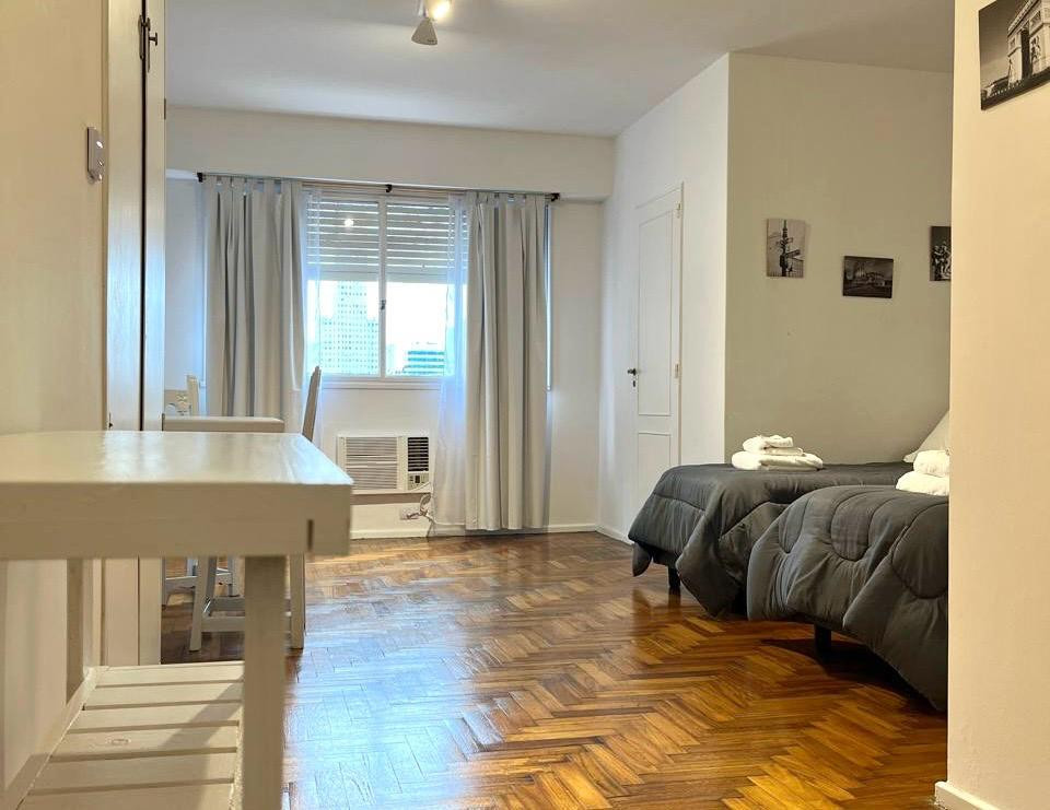 Квартира с 1 спальней в San Nicolás, доступна с 1 января: USD 600 в месяц плюс коммунальные и прочие услуги, оплачиваемые арендаторами отдельно. Квартира после ремонта, полностью оборудована для временного проживания: 2 кровати, постельное бельё и кухонная утварь. Есть микроволновая печь, электрочайник, кофеварка, тостер, холодильник, плита и кондиционер. В здании 24-часовая охрана, 3 лифта. Указана возможность аренды парковки на расстоянии 50 метров (услуга не включена в стоимость).