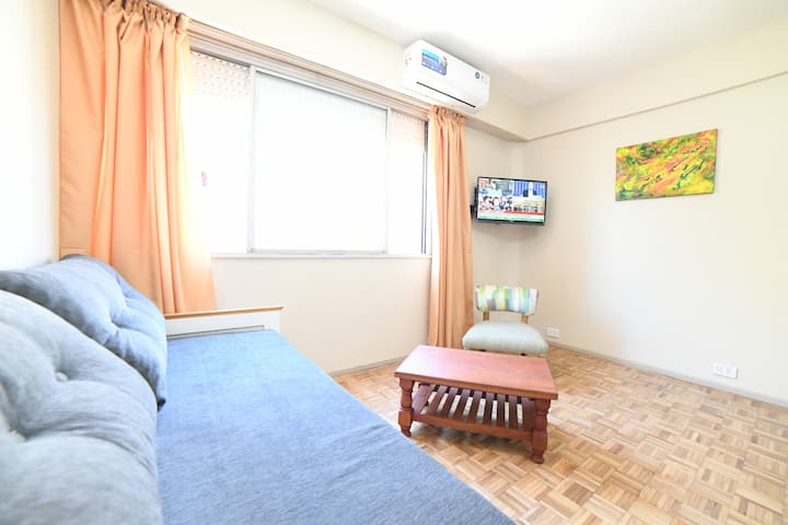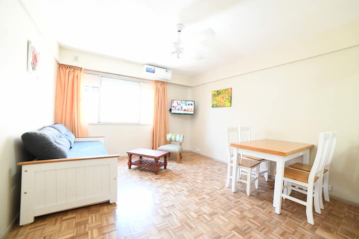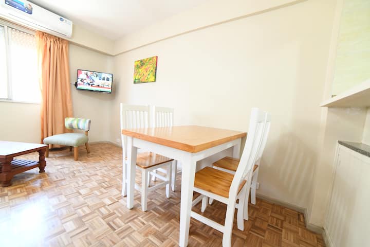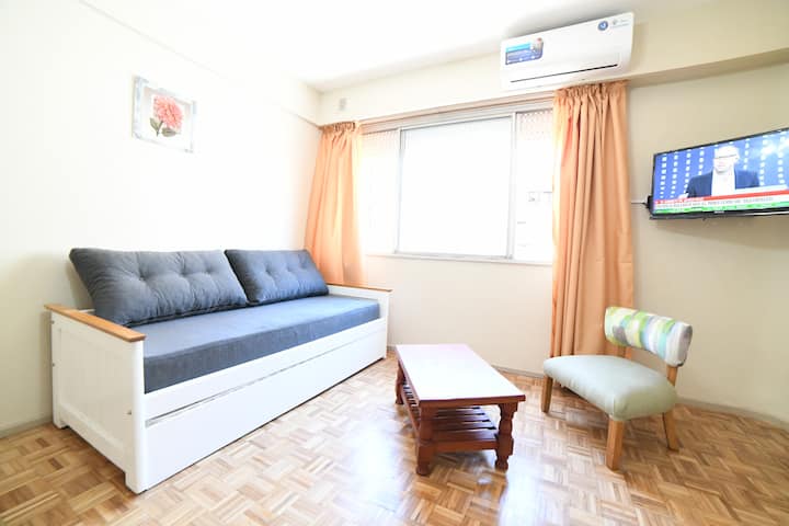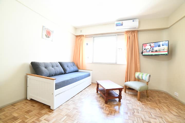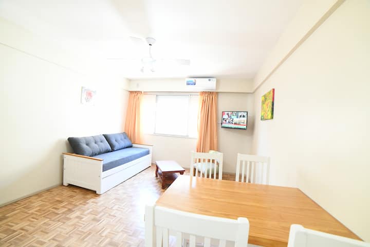 Квартира в San Nicolás, рассчитанная на 4 гостей. Сдаётся как отдельная единица без совместного использования помещений: в ней никто не проживает в течение всего года, она подготовлена для краткосрочного проживания. Включены коммунальные услуги и сервисы, включая электричество, интернет и кабельное телевидение, а также предоставляются базовые расходные материалы на первые дни и текстиль. Доступ обеспечивается с обслуживанием 24 часа в сутки.