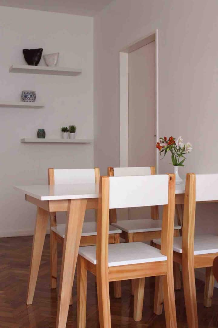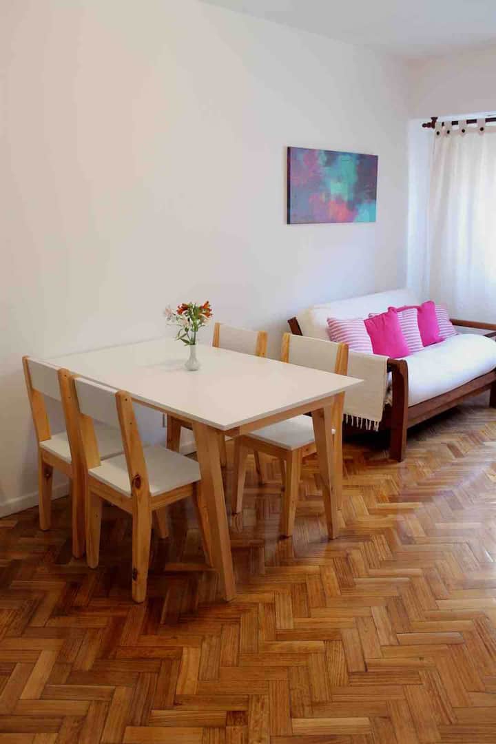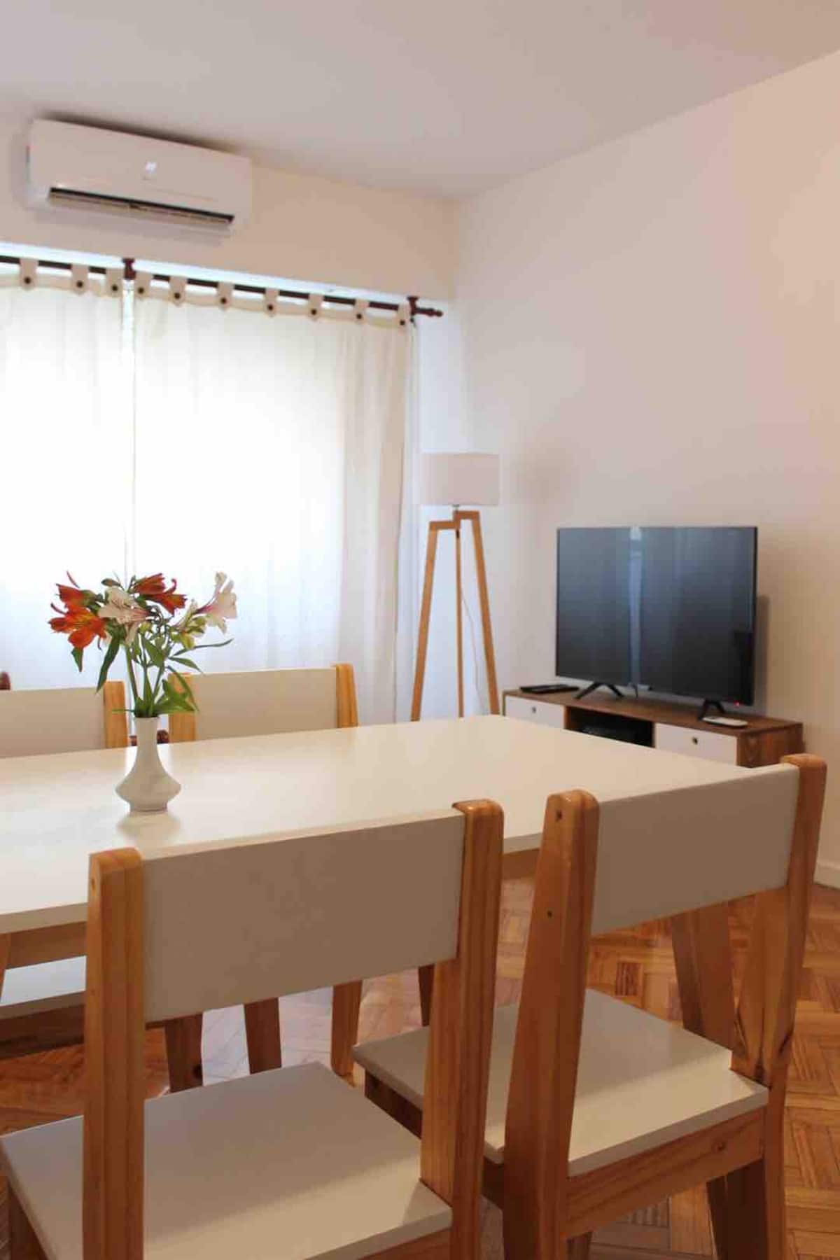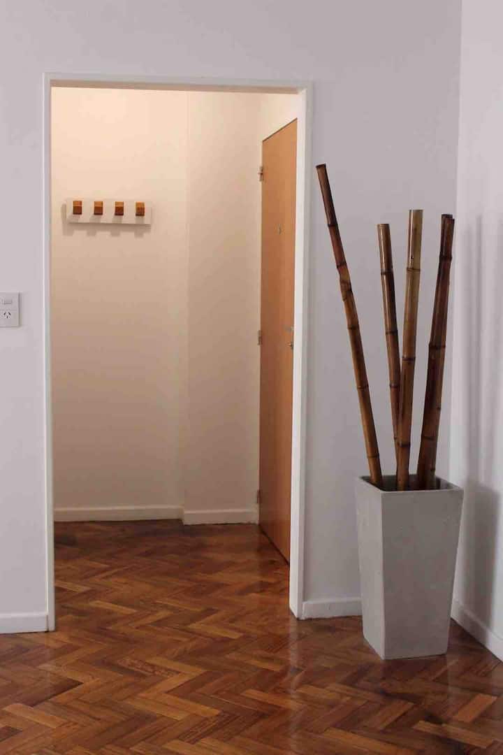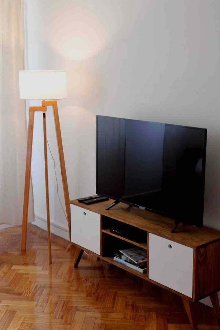 Квартира в San Telmo, в историческом центре Buenos Aires. В помещении установлены 2 телевизора с плоским экраном, WiFi и Flow Cablevision. После ремонта, полностью оборудована: кондиционеры во всех комнатах, кухня с техникой (кофеварка, холодильник, микроволновая печь с грилем, тостер, электрический чайник) и сейф. В ванной есть ванна с душем и биде. В здании работает консьерж, предусмотрена центральная подача горячей воды.